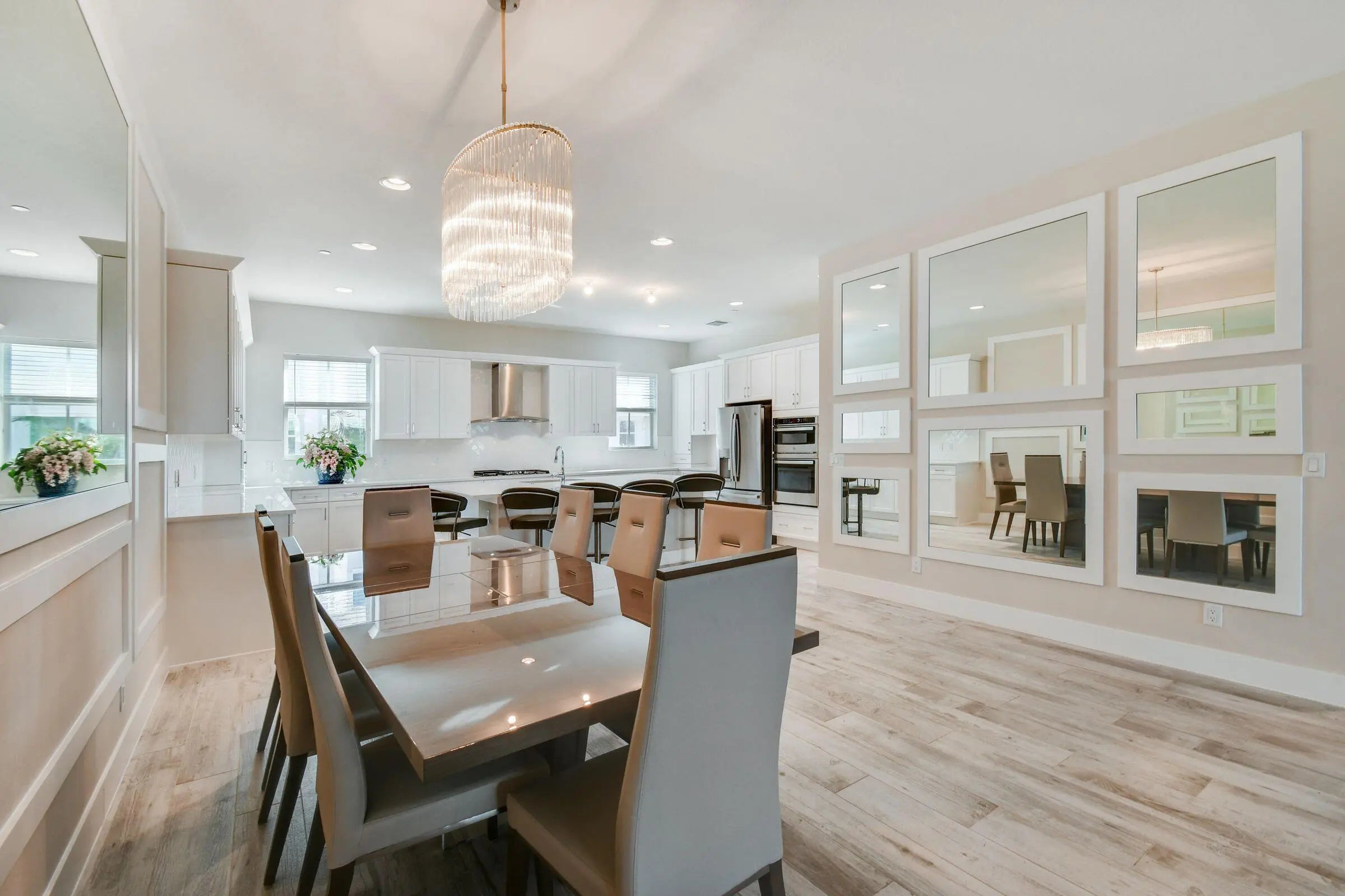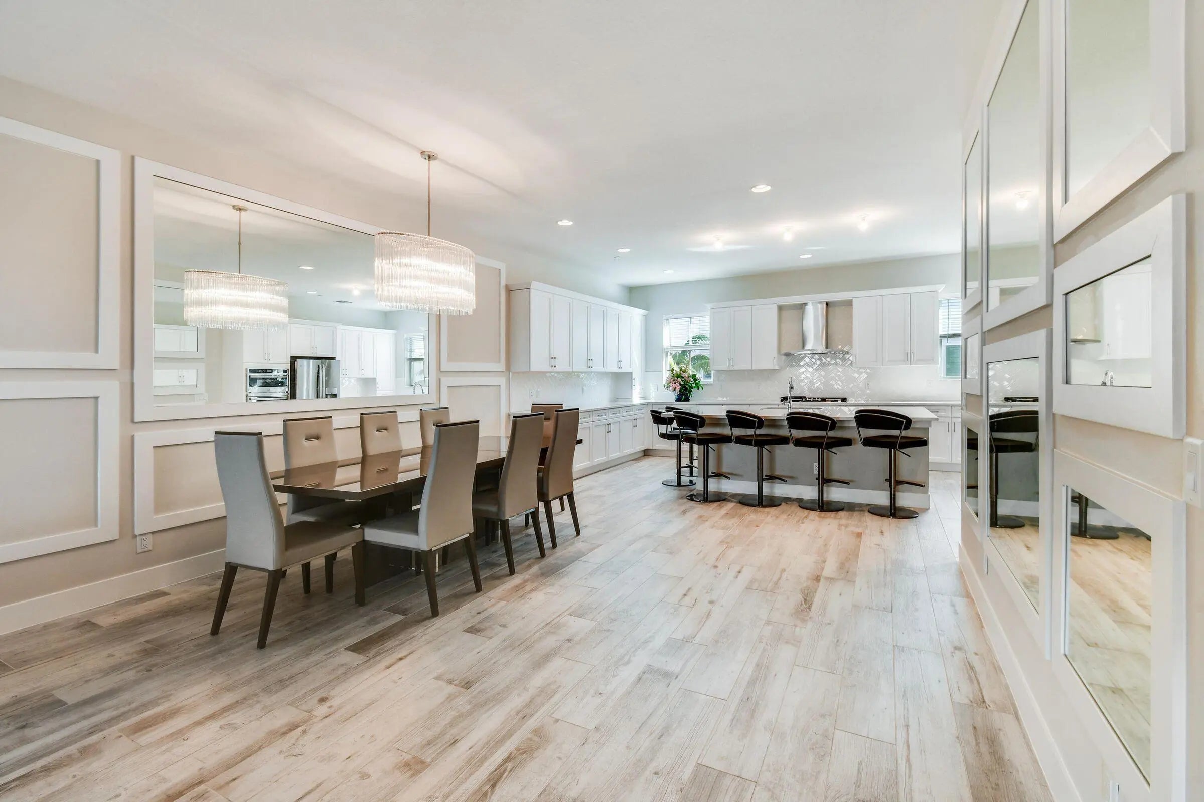 Rarely available largest townhome floorplan in Alton offering 2,750 square feet of living space featuring 4 bedrooms, 3 full bathrooms, a 1/2 bathroom, and a 2-car garage. Step inside to beautiful wood-look tile floors and a spacious ground-level den/office or additional living area with large sliding doors for natural light, a full bathroom, and ample storage space. The main living level features an open and bright floor plan with a walkout balcony offering beautiful sunrise and sunset views, perfect for relaxing or entertaining family and friends. The kitchen features white wood shaker cabinetry, an oversized quartz island, stylish backsplash, modern stainless steel appliances, and extended cabinetry for additional storage. The home also includes impact windows and doors throughout. All bedrooms are conveniently located on the third floor including the spacious primary suite featuring a large walk-in closet and ensuite bathroom with dual sinks and a generous shower. The third floor also includes a conveniently located laundry room and split bedroom floor plan. This home is conveniently located near Alton Town Center, offering top-notch restaurants, cafés, boutiques, and shopping. Residents enjoy exceptional community amenities a state-of-the-art fitness center, resort-style pools, dog park, multiple playgrounds, open green spaces, tennis courts, and more.