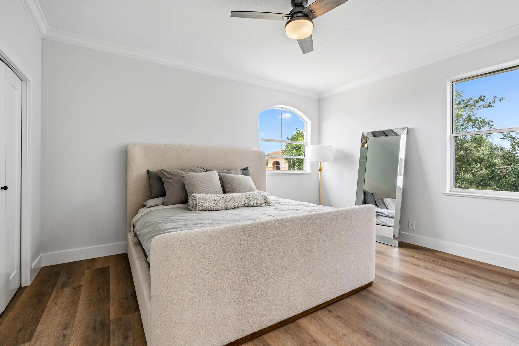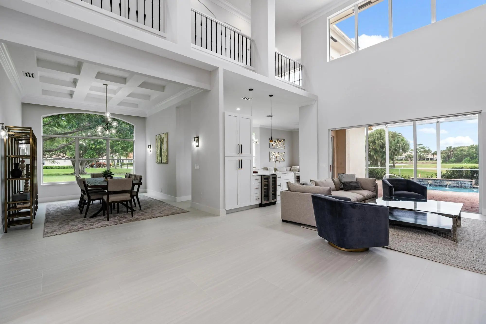 This stunning, renovated estate home is ideally situated within the prestigious, gated enclave of Grand Cay at PGA National Resort & Spa. Thoughtfully updated throughout, the residence features impact glass, a new roof perfectly capturing the essence of refined Florida living. Privately positioned at the end of a quiet cul-de-sac on an expansive 0.345-acre pie-shaped lot, the property enjoys sweeping, unobstructed views of the canal, lake, and the renowned Champion Course—just moments from the iconic Bear Trap. Spanning nearly 4,000 square feet, the home offers a light-filled open floor plan with soaring volume ceilings and oversized 24x48 porcelain tile throughout the main living areas. The designer kitchen is both elegant and functional, featuring new Bosch appliances, quartz countertops, custom shaker cabinetry, and a stylish wet bar ideal for entertaining. Additional highlights include a spacious loft, second-floor balcony, covered patio, and five generously sized ensuite bedrooms, each with beautifully renovated bathrooms—offering comfort, privacy, and a true sense of luxury throughout.