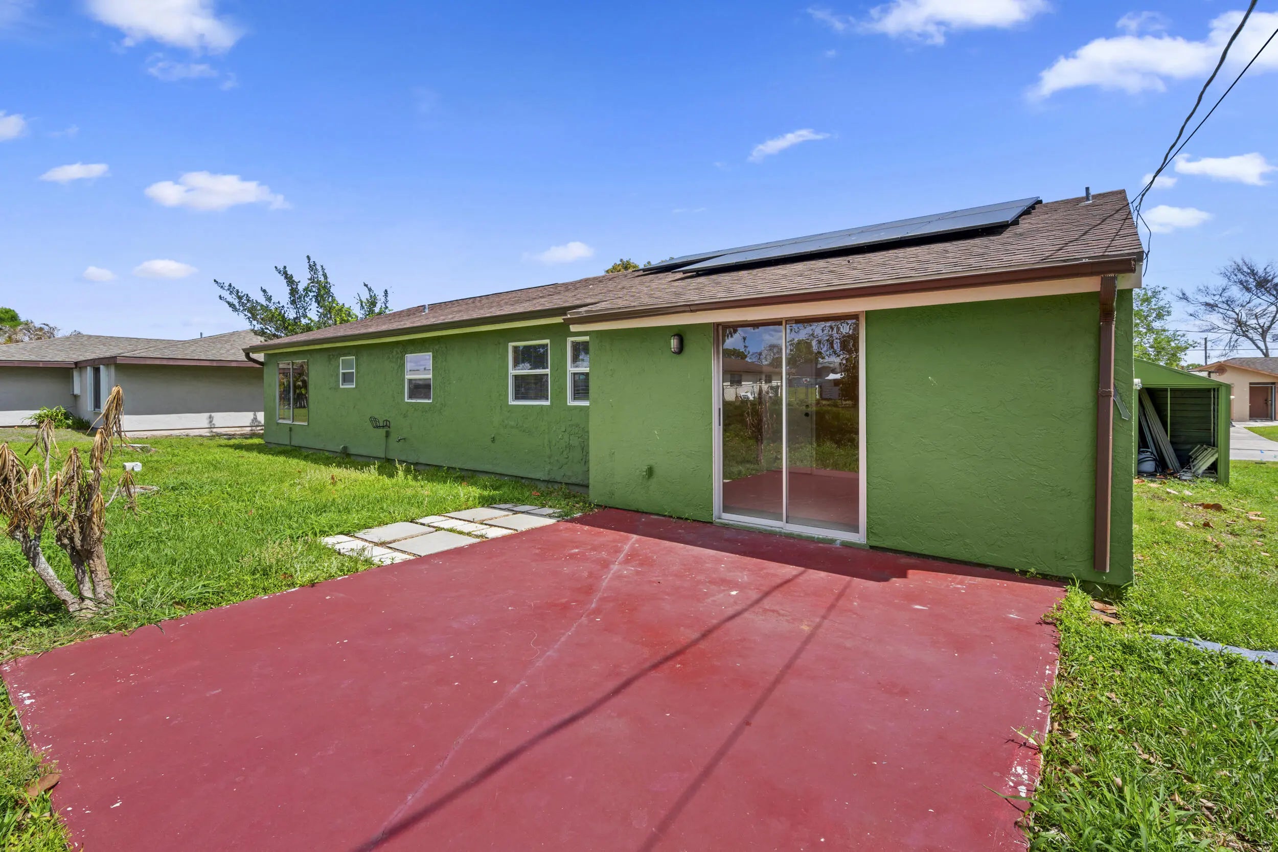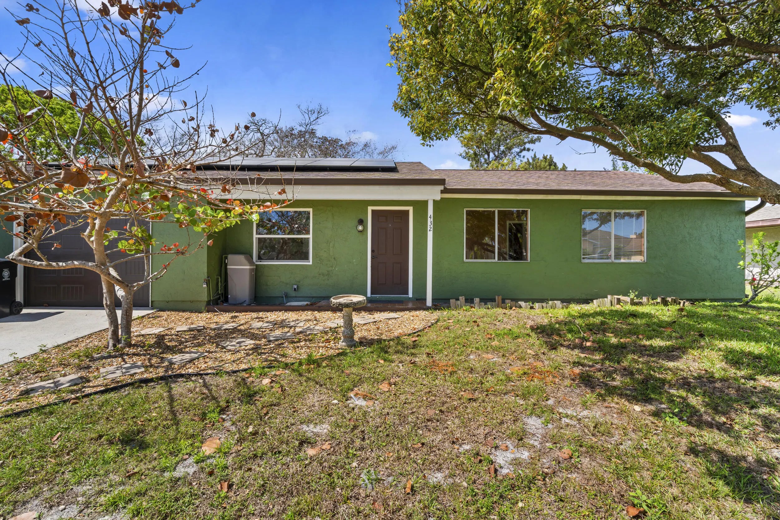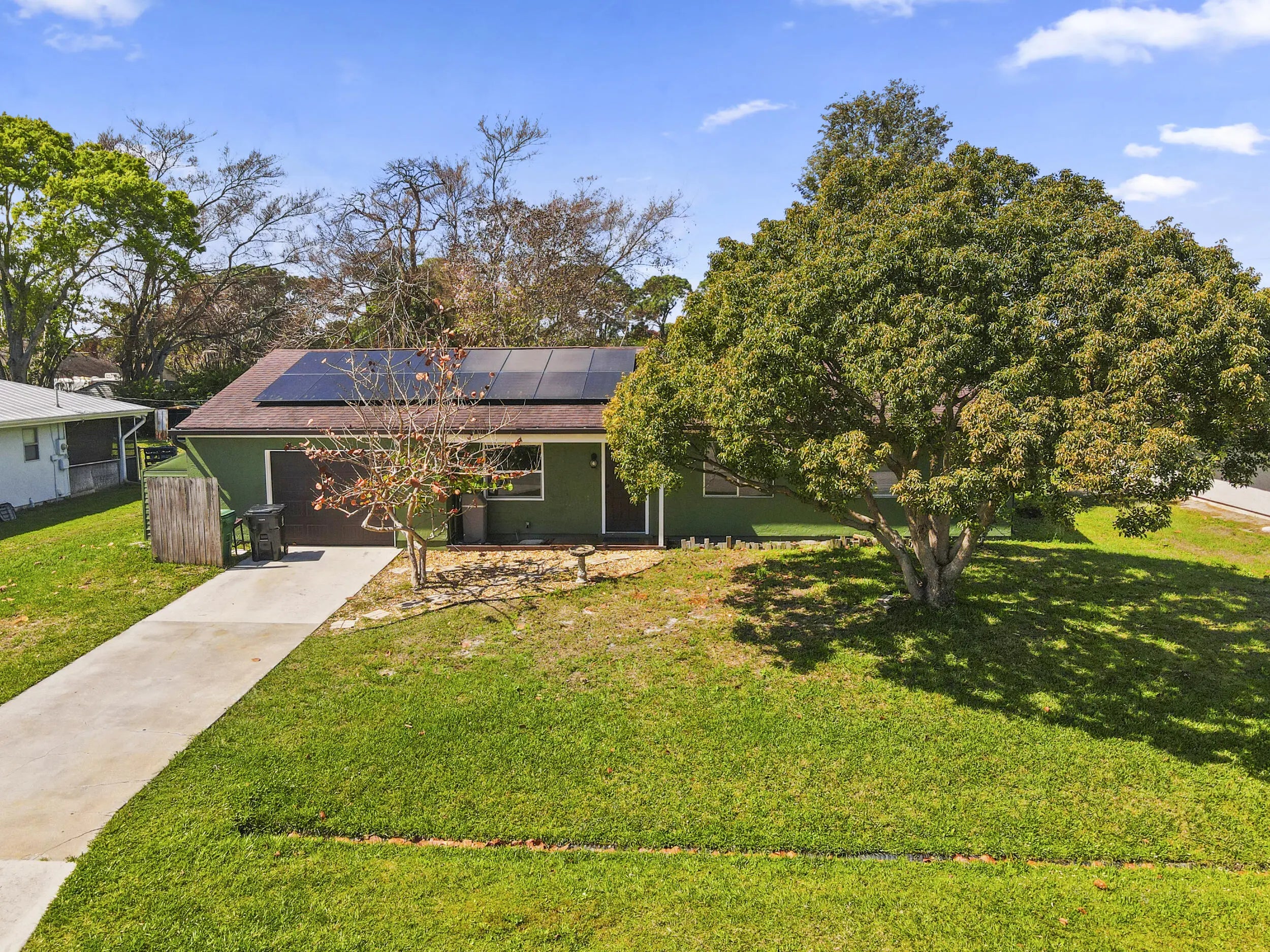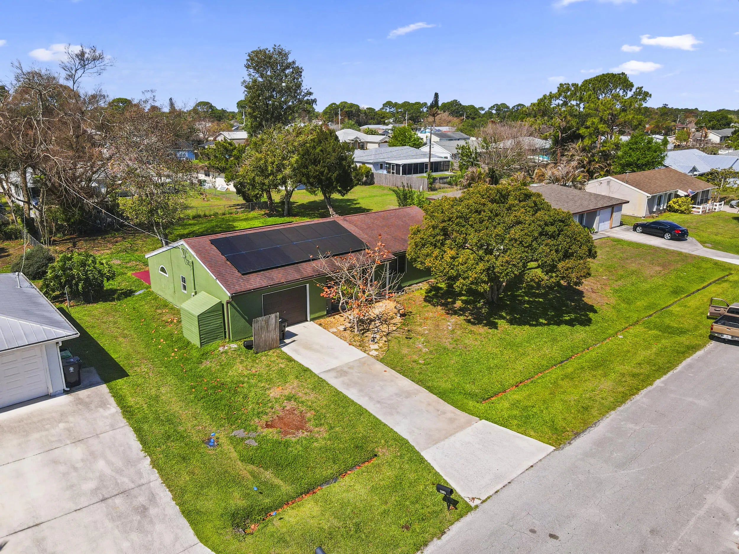Welcome to this well-maintained 2-bedroom, 2-bath home situated on an .23-acre lot in a highly sought-after area of Port St. Lucie. Offering 1,356 sq. ft. of living space and nearly 2,000 total sq. ft., this property provides comfort, functionality, and plenty of potential. The home features an updated kitchen with modern touches, complemented by newer appliances and a newer A/C system—key improvements that add everyday convenience and peace of mind. The roof was replaced in 2016, further enhancing the home's overall value. A 1+ car garage provides additional storage or workspace flexibility. A major plus is the solar panel system, which will be fully paid off by the seller at closing and conveyed to the buyer—allowing you to enjoy energy efficiency and savings from day one.