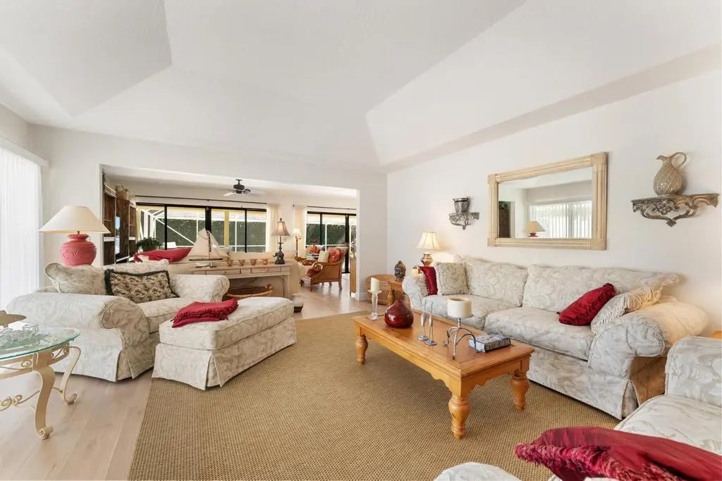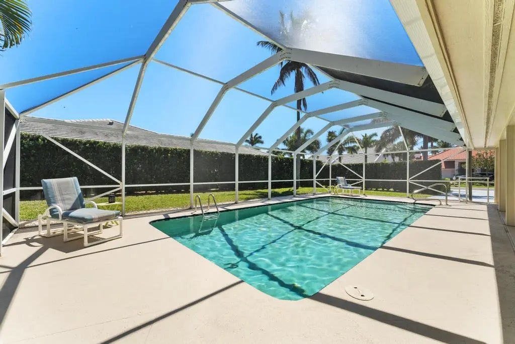 Welcome to Olympus, one of Jupiter's most sought-after seaside communities! This single story, 3 bedroom home sits on a desirable corner lot and offers an incredible opportunity to enjoy the ultimate walk-to-the-beach lifestyle. Short walk to private beach access. Inside a spacious open floor plan with sliders from the primary bedroom, living room and dining area leading out to a large lanai and pool - perfect for indoor-outdoor living & entertaining. The oversized primary suite offers generous space and natural light, while two additional bedrooms share a full bath. The kitchen is well-appointed with granite countertops, tile back splash, stainless steel appliances and an island, opening to a dining area, family room and large living room. New flooring, paint, AC. Outdoors, enjoy a fenced backyard and side yard with mature landscaping, plus a circular driveway in front and a rear-entry driveway to the garage for added convenience. Olympus residents enjoy tennis courts and private deeded beach access, all while being centrally located near Jupiter's best shopping, dining and entertainment.