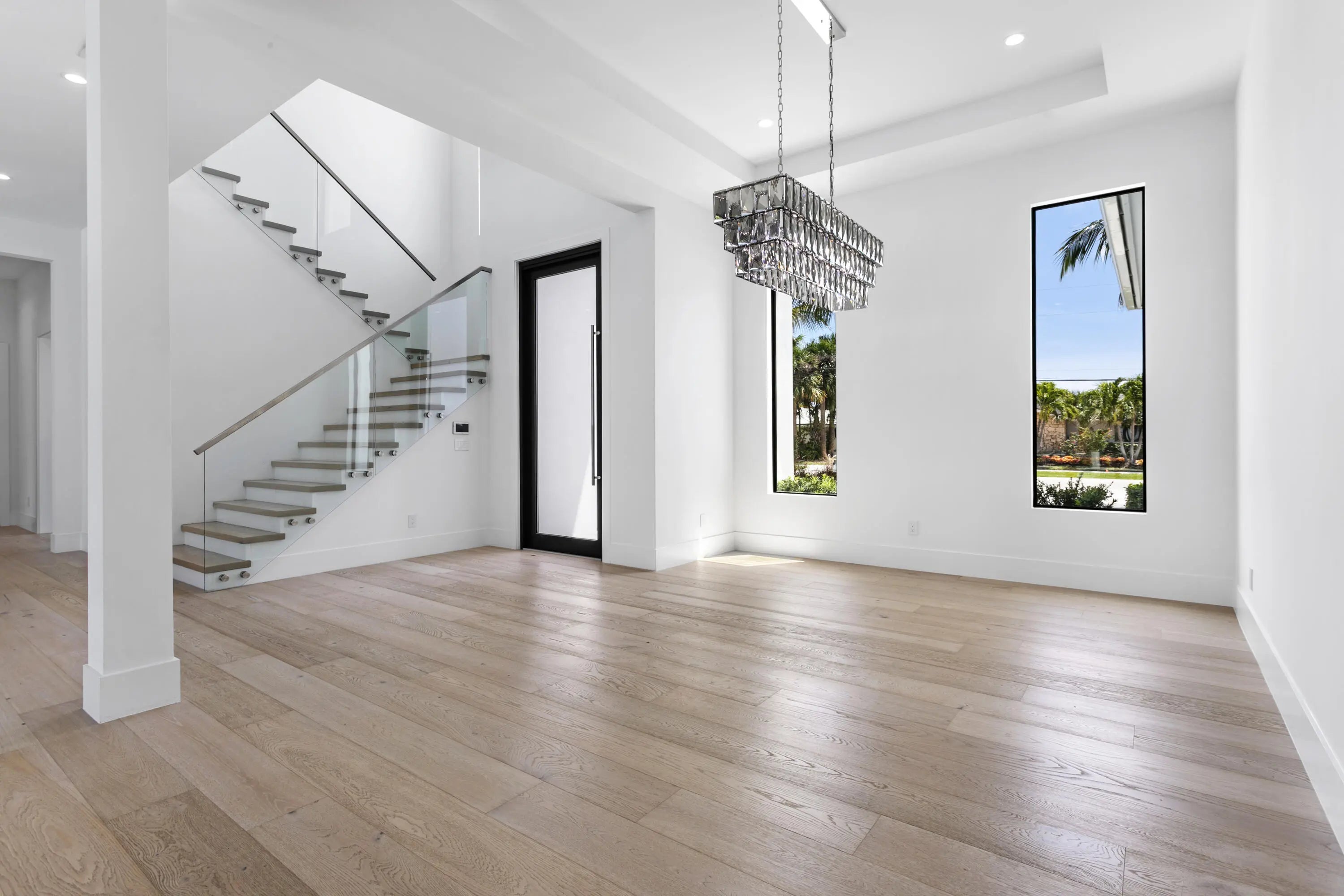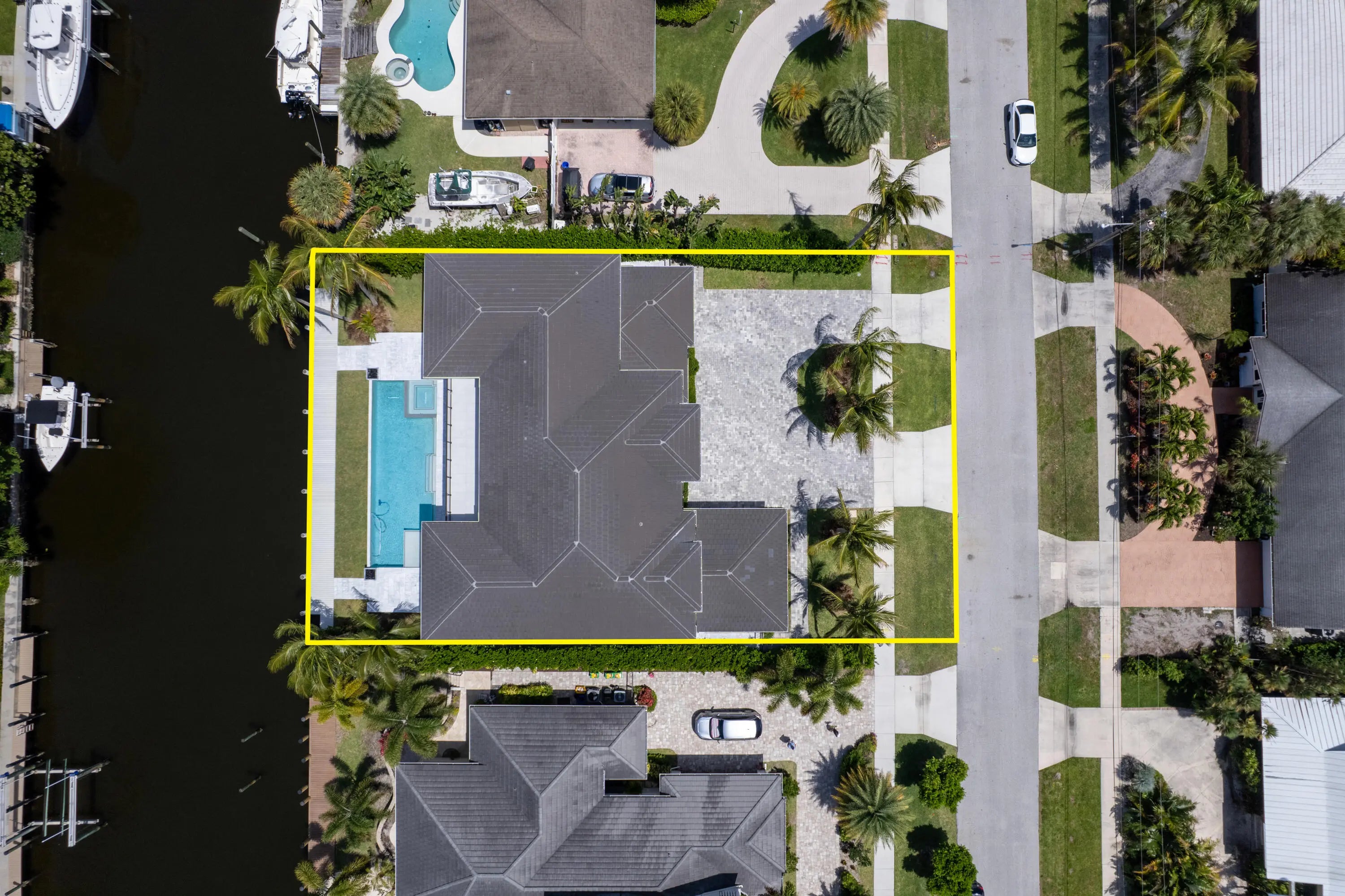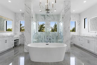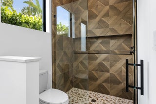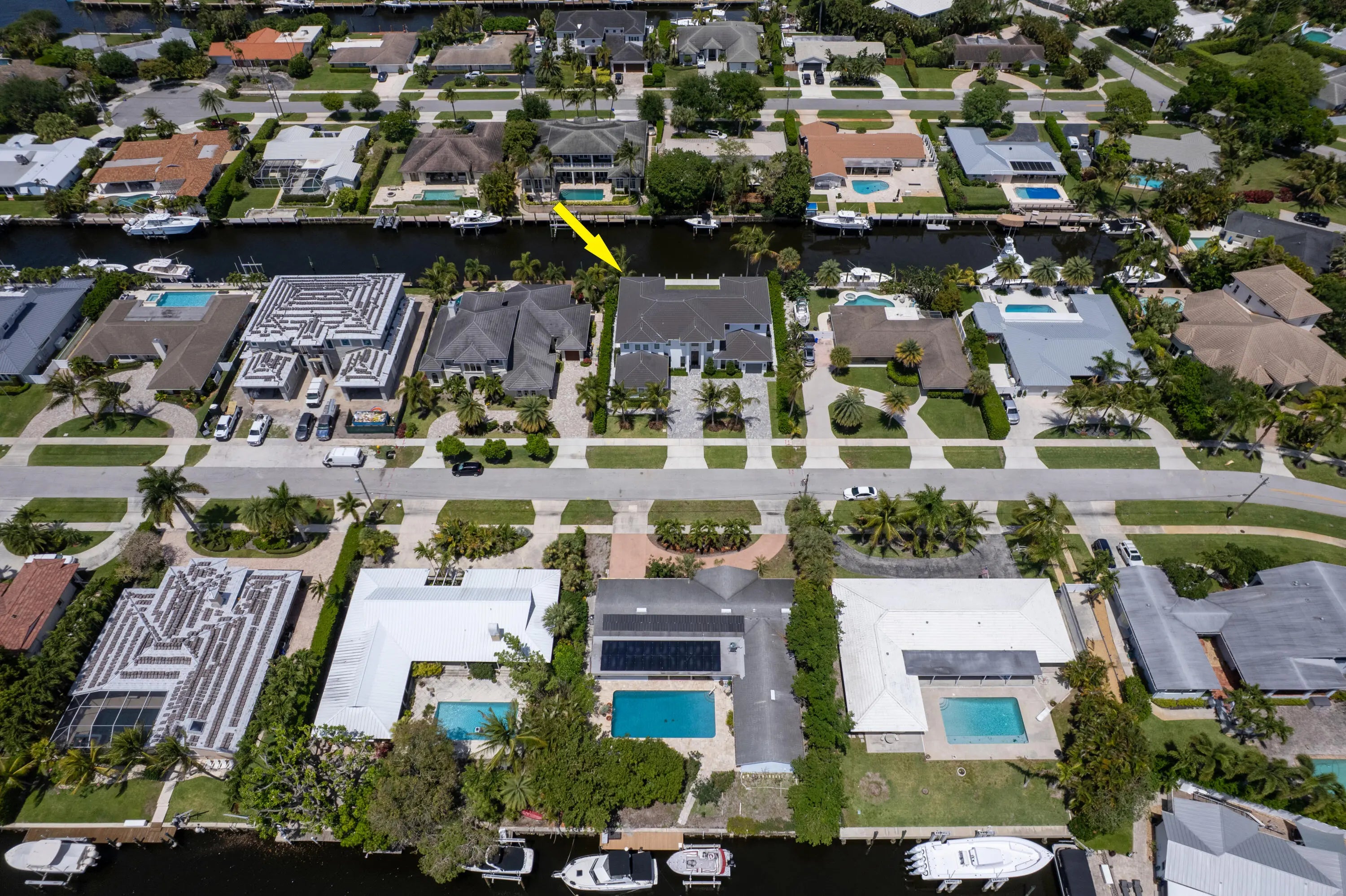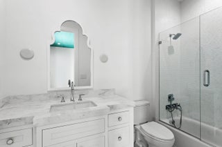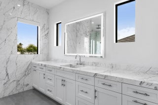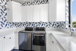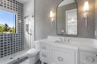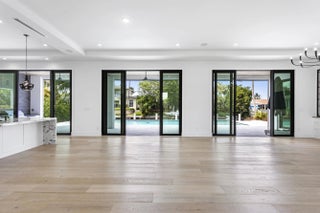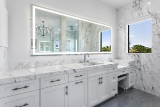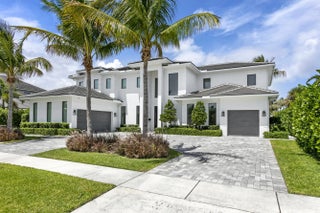 2022 Palm Beach waterfront residence, where timeless design meets modern luxury. Crafted to blend indoor and outdoor living, this home features soaring ceilings, expansive impact windows and doors, and stunning white oak hardwood flooring complemented by custom-built cabinetry throughout—creating a bright, open, and sophisticated atmosphere. The chef's kitchen is a true centerpiece, complete with dual islands, marble countertops, premium Wolf appliances, a Sub-Zero refrigerator, and a spacious walk-in butler's pantry. Designed for both comfort and convenience, the home offers upstairs and downstairs laundry rooms, a private guest suite with cabana bath, a dedicated home gym, and a sleek custom glass staircase. With 5 bedrooms and 5.1 bathrooms, the layout is both functional and flexible. The upstairs primary suite is a private retreat featuring dual vanities, a spa-like bath, an expansive custom walk-in closet with center island, and a separate shoe and accessory closet. Additional highlights include en-suite bathrooms in all secondary bedrooms, premium TOTO fixtures throughout, and a pre-installed elevator shaft for future convenience. Outdoors, enjoy 90 feet of seawall with dock space, perfect for boating enthusiasts. The resort-style backyard is designed for entertaining, featuring a pool with spa and fire pits, a covered patio with electric screens, outdoor kitchen with gas grill, and a covered balcony for elevated views. Additional features include a 3-car garage with acrylic flooring, full-home security system with cameras, electric shades, surround sound, and designer textured wallpaper accents.