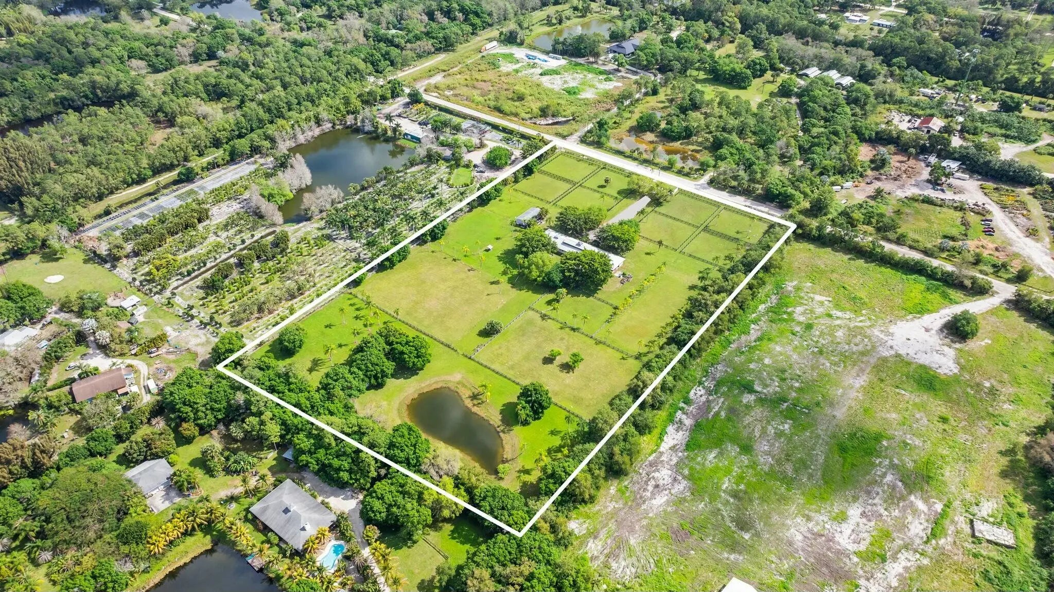 This stunning 10.3 Acre property, situated in the coveted community of Jupiter Farms, is perfect for you to build your dream residence. Bring your horses and live in the 3 bedroom modular while building your perfect home. This property is prime for construction w/ cleared land, pre-existing electric, plumbing, and irrigation. The possibilities are endless for this property, including agricultural and equestrian, with income producing capabilities. Well built barn with 16 stalls, full bathroom, laundry room, grooms quarters, 2 tack rooms, 4 exterior wash racks. Front 8 pastures newly redone and new electric front gate. Storage utility shed, pond, and 2 large paddocks in the back of the property. Incredible location with quick & convenient access to Indiantown Road, 5 min to Publix, Riverbend Park, I-95 & Turnpike, Shopping and the stunning Jupiter Beach.