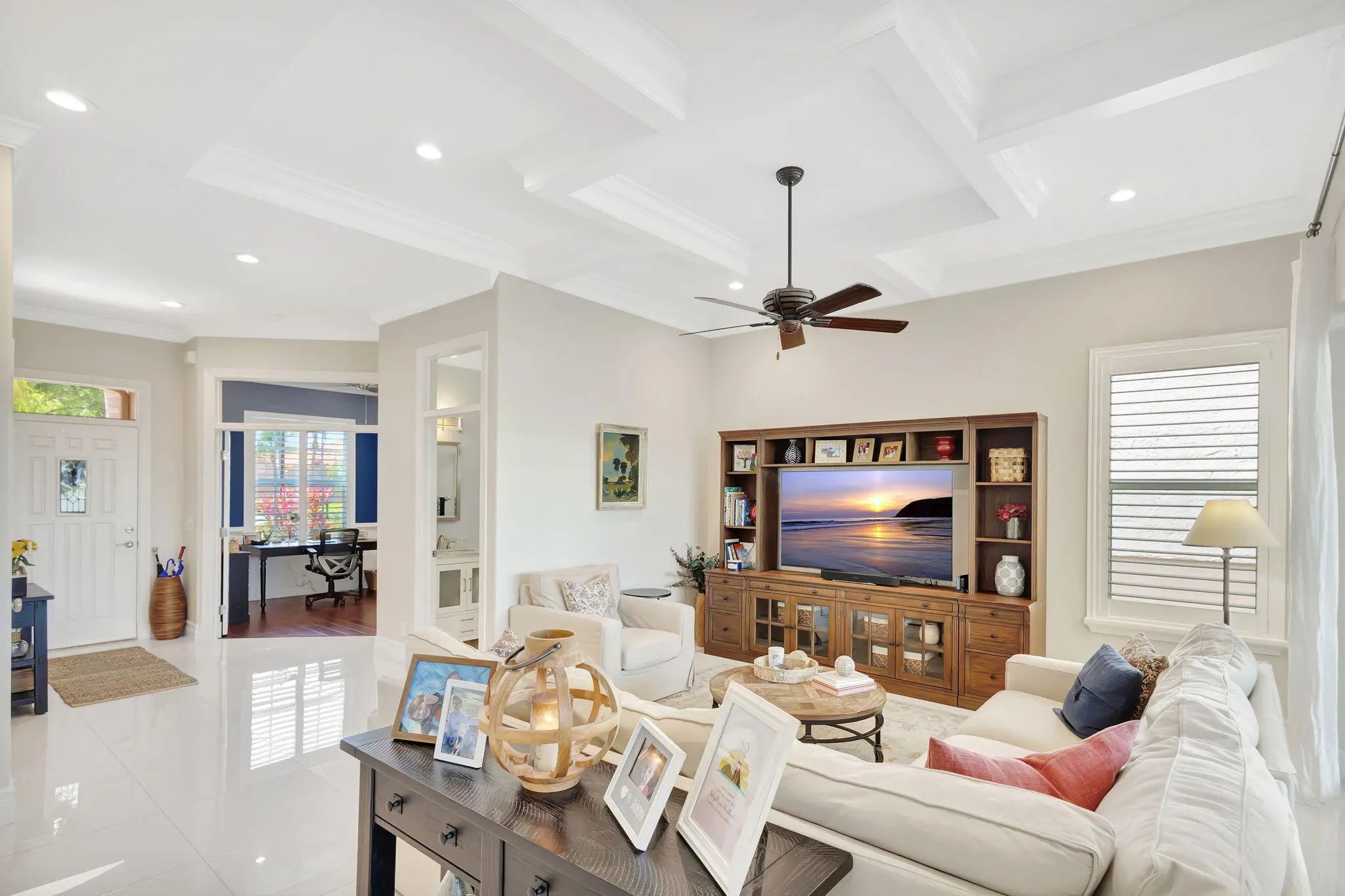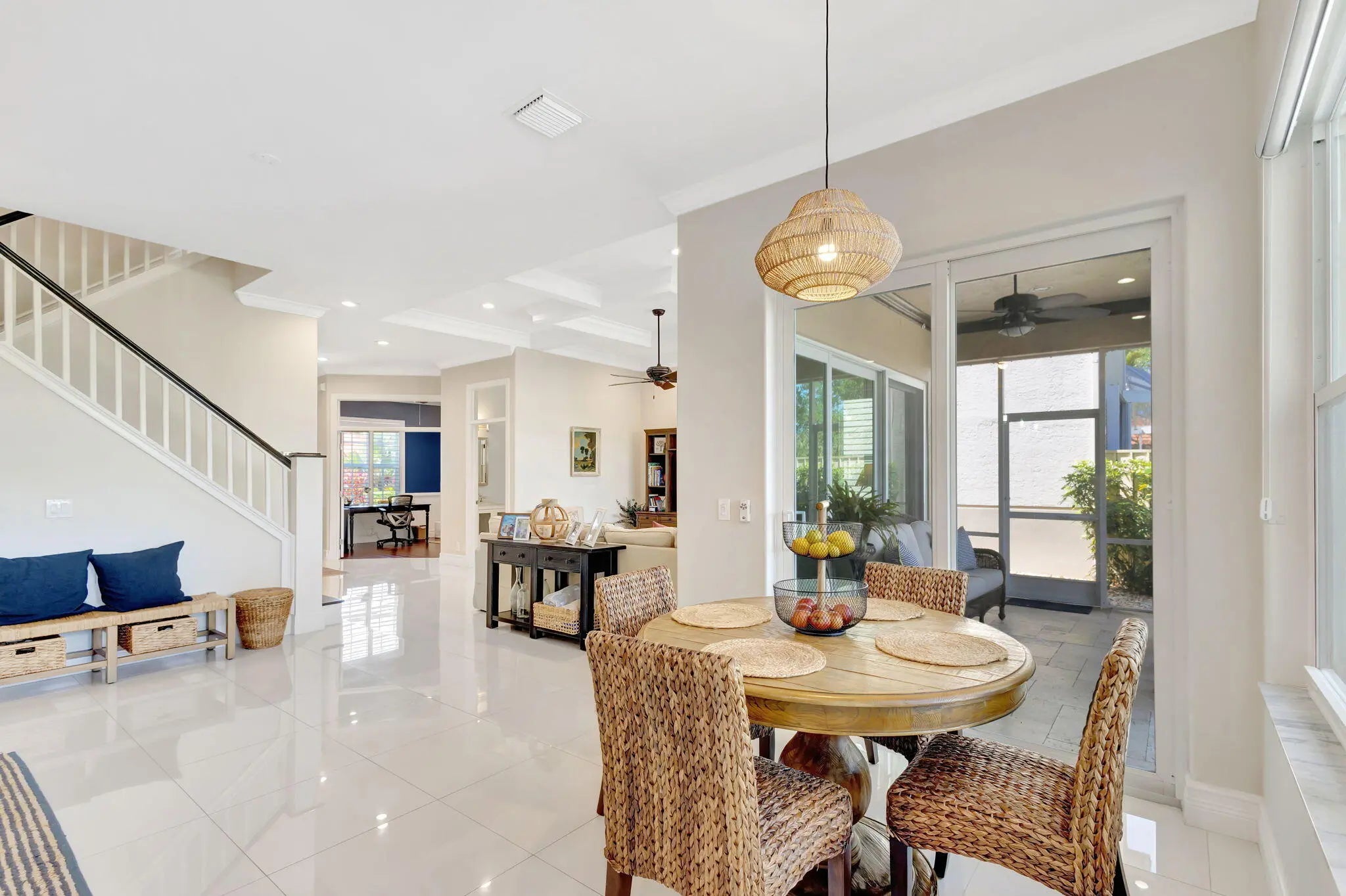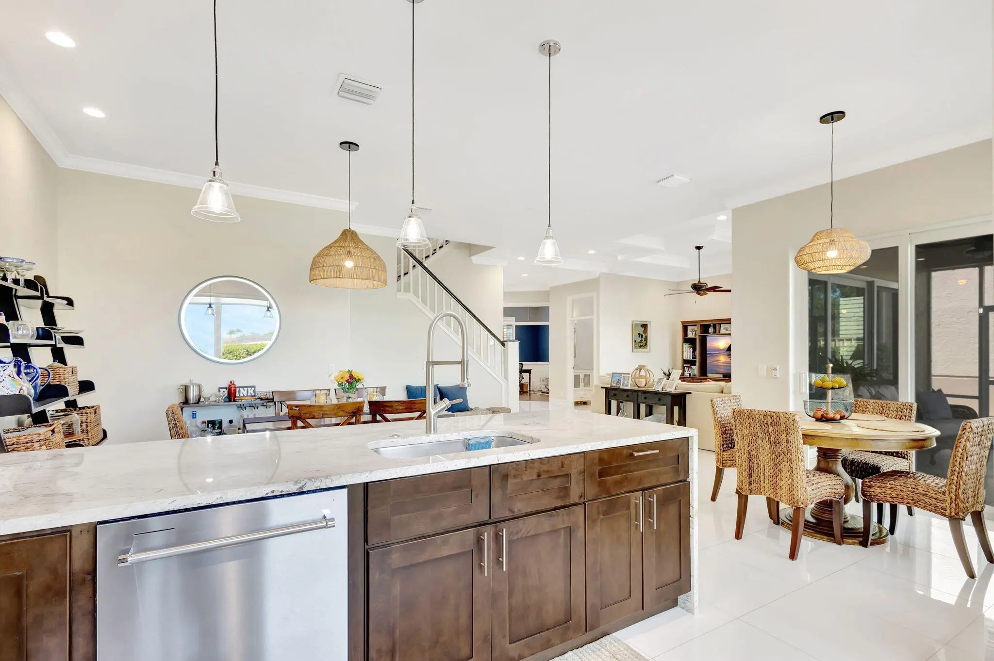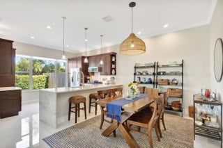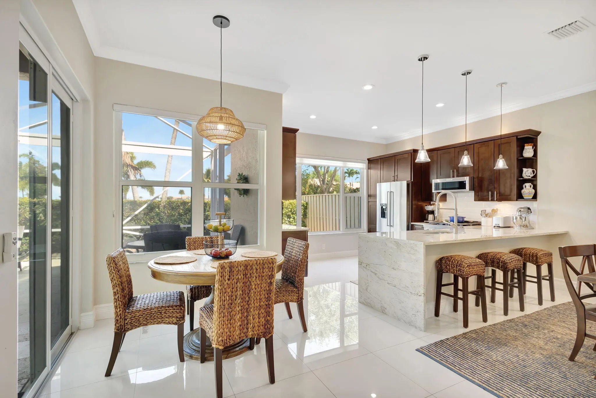 Breathtaking Golf/Lake/Resort views from this beautifully remodeled 4BR/3BA + loft home in the highly desirable community of Monterey Pointe in PGA National. Exquisitely designed with abundant use of marble, granite, wood, porcelain and recently professionally painted. The flow of the floorplan, along with the panoramic views from all the rooms, plus the high ceilings, create a wonderful open & bright home to enjoy. Recently updated with impact windows, top-of-the-line materials, new KitchenAid appliances, restaurant grade gas range, gas hot water heater, washer/gas dryer, redesigned laundry room, and custom closets make this move-in-ready. The entire home has 5'' designer baseboards and stunning 24'' rectified porcelain tile in the living areas. The great room is detailed w/ magnificent coffered ceiling accented with stunning crown moldings and features large sliders leading onto the expansive screened-in patio. The kitchen has been beautifully remodeled to the highest standard with soft-close wood cabinets, a subway tile backsplash, new top-of-the-line stainless-steel KitchenAid appliances and waterfall granite countertops. The incredible primary suite has been beautifully designed with detailed wall and crown moldings, and hardwood plank floors. There are also two walk-in closets with new custom closets! The master bathroom has an extra-large walk-in shower, granite countertops, wood cabinetry, stunning glass backsplash, plus a skylight that brings in natural light and brightens the room. The views from the versatile loft/family room area are priceless and enjoyed through an entire wall of glass. The second floor of this home offers the perfect space for guests. With two spacious guest bedrooms, both with hardwood plank floors, plantations shutters, a magnificently updated bathroom, and a separate loft area offering plenty of privacy. The 4th bedroom is located on the 1st floor and is beautifully detailed with gorgeous hardwood plank floors, stunning ceiling detail, double-door entry, and a built-in closet. Outside of the 4th bedroom is a full bathroom with a Saturnia stone marble shower and Carrara marble countertop. The stairs are covered in a magnificent wood plank with wood railing. There is also a huge under-the-stairs storage closet and new custom cabinets in the garage to provide ample storage. The incredible outdoor living area offers both sun and shade. The covered and screened-in patio is accented with French-set travertine tile and an oversized lanai. It's a must see!