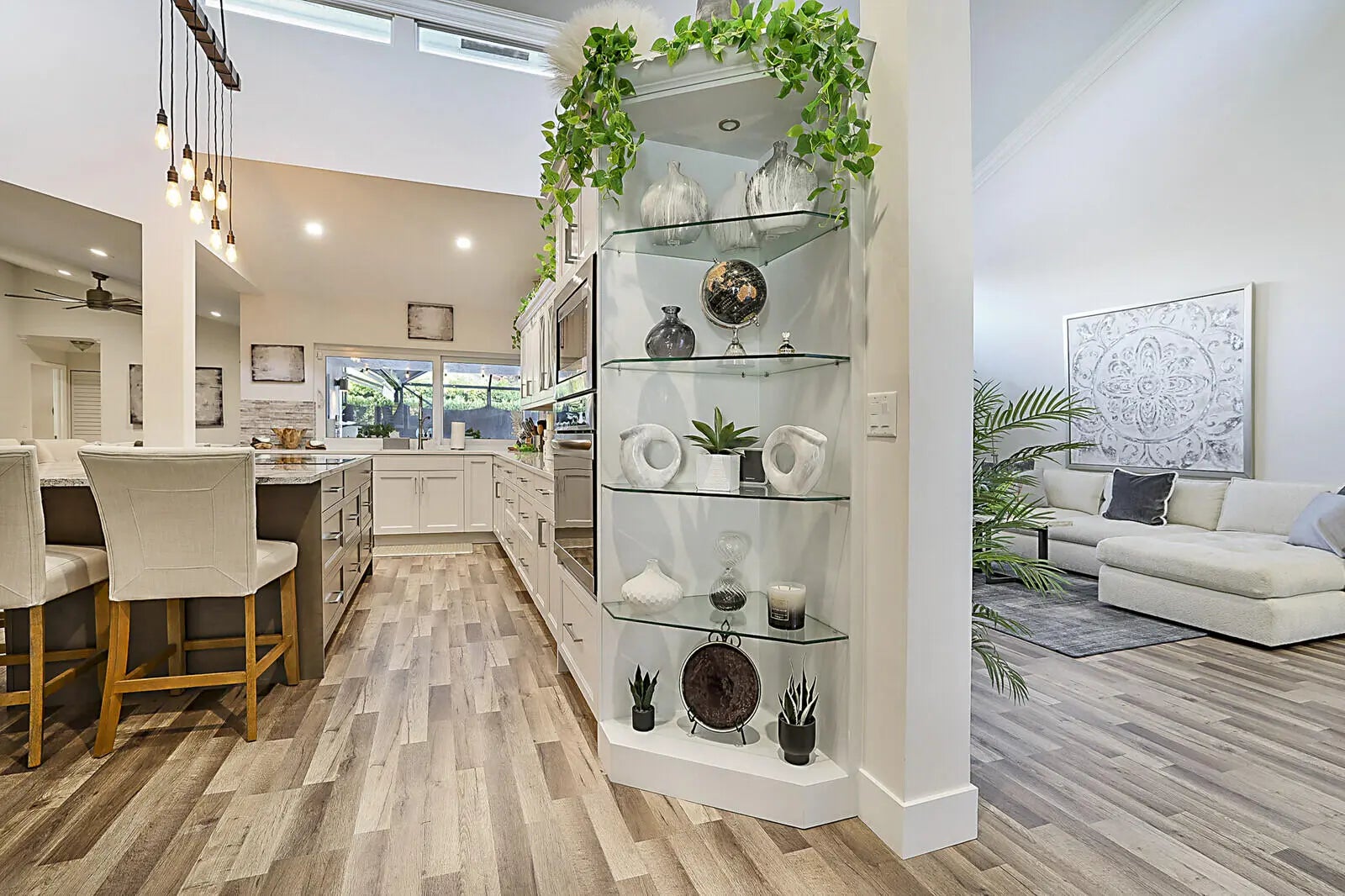 This Exquisite Estate in Delray Beach's Prestigious Rabbit Hollowe is a true tropical sanctuary in the heart of Delray Beach. Tucked away in the boutique luxury community of Rabbit Hollowe, this beautiful 4-bedroom, 3-bath estate sits on a meticulously landscaped third of an acre corner lot, offering both privacy and prestige. From the moment you step through the grand entrance, you'll be greeted by soaring 14-foot ceilings, streams of natural light, and an open-concept floor plan that flows seamlessly from one elegant space to the next. The heart of the home is the stunning chef's kitchen, designed with both beauty and function in mind. Outfitted with induction cooking, premium appliances, and custom cabinetry, it's the perfect stage for preparing everything from casual family meals to dinner parties that impress. Luxury laminate wood flooring runs throughout the home, setting the tone for the modern updates and thoughtful finishes found in every room. Step outside and discover a private oasis that feels like your own resort. An expansive screened-in patio opens to a sparkling pool and spa surrounded by lush tropical landscaping. Entertaining is effortless with a built-in grill, oversized bar, and multiple lounging areas that make this the ultimate space for gathering with friends and family. With two cabana baths, a gazebo, and a beautifully designed outdoor entertainment area, this backyard is made for both fun and relaxation. Inside, the home continues to delight with spacious bedrooms and fully renovated bathrooms. The master suite is a true retreat, offering a spa-like experience with a luxurious walk-in shower and a soaking tub that overlooks the serene landscaping. Every detail has been carefully curated, from hurricane impact windows and doors to an oversized two-car garage with ample storage, ensuring the home is as practical as it is beautiful. Located just minutes from Delray Beach's vibrant downtown, pristine beaches, and world-class dining and shopping, this home offers the perfect balance of tranquility and convenience. Rarely does a property of this caliber come to market in Rabbit Hollowe. With its blend of elegance, comfort, and resort-style living, this estate is truly a one-of-a-kind opportunity. Schedule your private showing today and see why letting this home slip away would be a mistake you'll never forget.