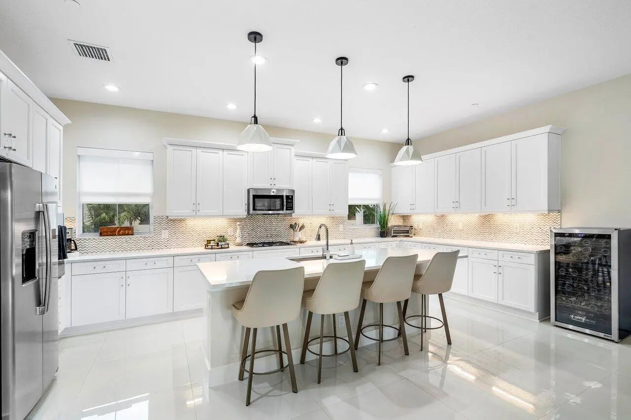 Exceptional 4 bedroom(4th bedroom currently furnished as a family room) , 3.5 bath Alton townhome with coveted preserve and lake/ fountain views. Covering over 2,250 sf of living space and built in 2020, this home features a fabulous open floorplan with many exquisite and custom upgrades. When entering this amazing townhome, walk into the first floor bedroom with outdoor space and a full bathroom allowing privacy for guests ( currently furnished as a family room). Can easily close off and make it a formal bedroom as it is plenty of space. On the second level, the kitchen boasts an oversized quartz island and 3 walls of cabinetry providing the perfect place to live and entertain. Kitchen opens to the great room living area and oversized balcony where you will enjoy breathtaking lake views. The 3rd floor Primary Bedroom impresses with a spacious bathroom with double vanity sinks, glass enclosed shower, large walk-in closet, plus bonus shoe closet. Two Guest Bedrooms are also on the 3rd floor. Some of the fabulous features include oversized 32" x 32" porcelain flooring on the 1st and 2nd floors, luxury vinyl on the 3rd floor, built in closets, premium lighting, remote shades, upgraded security and private entry gate. This newer home is in impeccable condition and you will feel secure with its newer roof, hot water heater, A/C, 2 car garage, 2 driveway spaces, and full impact glass throughout. The neutral and pleasing decor allows for you to simply add your own personal touch. Alton community is full of amenities including a resort style pool, fitness room, tennis courts, kids playground, dog park and more. Schedule your private showing today!