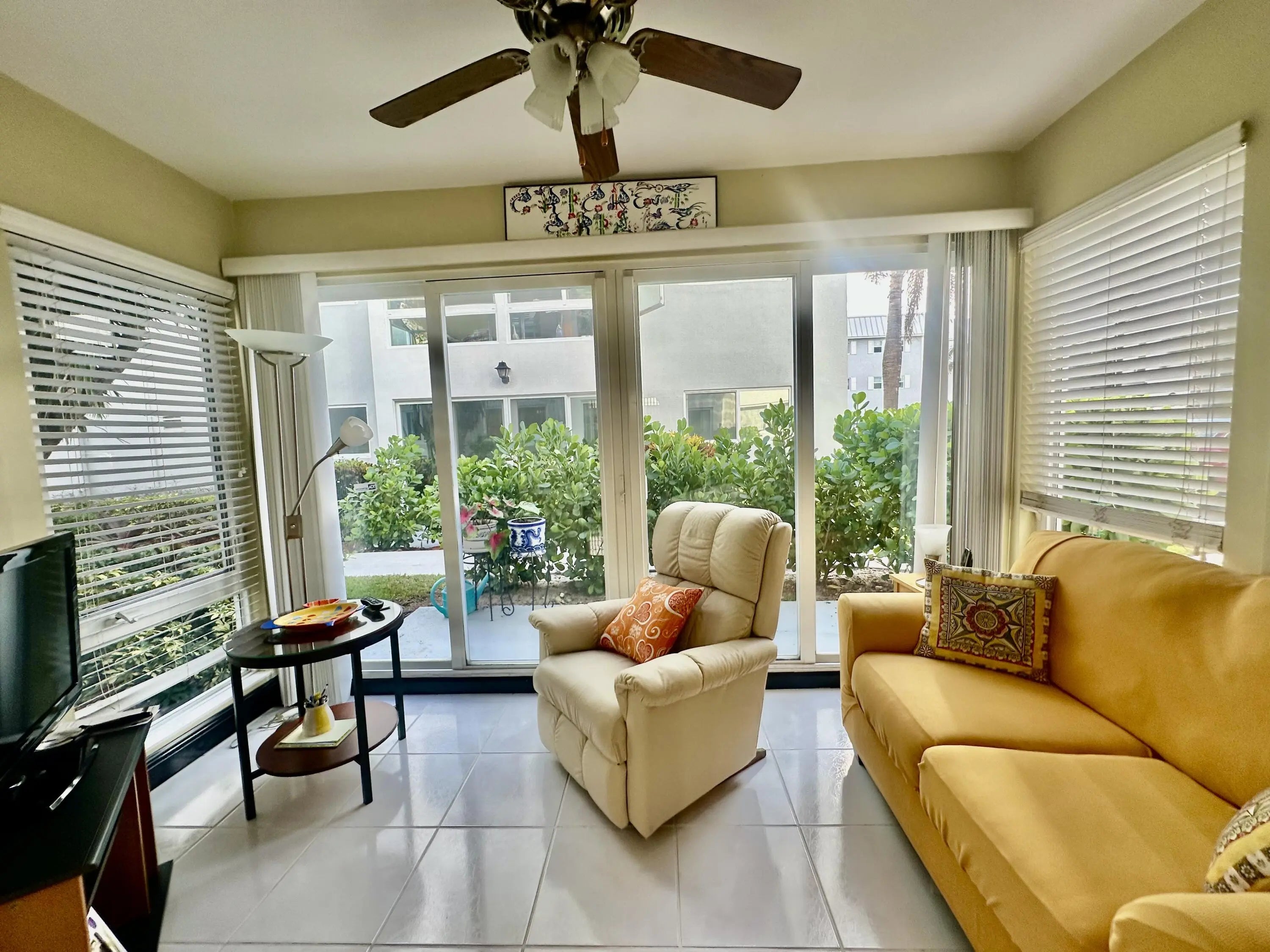 Experience refined coastal living in this beautifully updated 2-bedroom, 2-bath, furnished residence located in the highly sought-after Colonial Club, just steps from the scenic Intracoastal walkway. This inviting ground-floor wing condo offers exceptional privacy with no neighbors on either side, and features upgraded tile flooring, crown molding, and smooth ceilings throughout. The artistically designed kitchen is a true showpiece, adorned with custom Nino Parrucca hand-painted Sicilian ceramic tile, infusing Mediterranean charm and timeless elegance into the heart of the home. Additional highlights include upgraded electrical, a newer A/C compressor (2 years), and a newer hot-water heater (3 years) . Vent-less Washer & Dryer Allowed. Enjoy a resort-style lifestyle with a recently renovated Clubhouse and heated saltwater pool, complete with new pavers on the deck and a seawall and sidewalk beautifully redone in 2019 along the Intracoastal the perfect spot for relaxing or watching passing yachts. Colonial Club's three-story buildings have been fully recertified for safety under the Florida Condominium Act Bill 4-D, and a Certificate of Building Safety Recertification from the City of Boynton Beach ensures compliance with all current safety standards. Reserves are strong, with projections meeting the 2025 Structural Integrity Reserve Study (SIRS) requirements, offering buyers confidence in both safety and financial stability. Ideally located, this residence is just minutes from tropical beaches and the vibrant downtown Delray Beach, known for its premier shopping, dining, and entertainment. Whether you're seeking a peaceful coastal retreat or a year-round home in paradise, this property truly has it all.