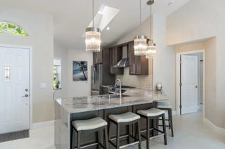 Come and walk through a STUNNING and COMPLETELY remodeled home in the charming Villa D' Este community at PGA National. LG refrigerator with 2 door water/ice maker, LG-Gas range with Stainless Steel hood/vented outside for a great cooking experience. Zephyr Wine Cooler/with-Dual Zone. Brand new A/C Unit (2025)-Rheem- 3 Ton/15.5 Sheer. Brand new Hot Water Heater-Rheem/Gas 40 Gallon. Brand new Washer: GE 4.5/ New Dryer: GE 7.2 gas (vented outside). New ceiling fans throughout the home. New floors throughout the home: Montclair Ivory Matt - 36 x 36 (origin Spain). Counters/Island/Island Waterfall/Bar Area: Macaubus Fantasy Select stone. New blinds in Living Room/Kitchen/Master bedroom (remote), Den/Guest room with New Closet. Exterior of the house recently painted. Roof 2017. A MUST SEE!