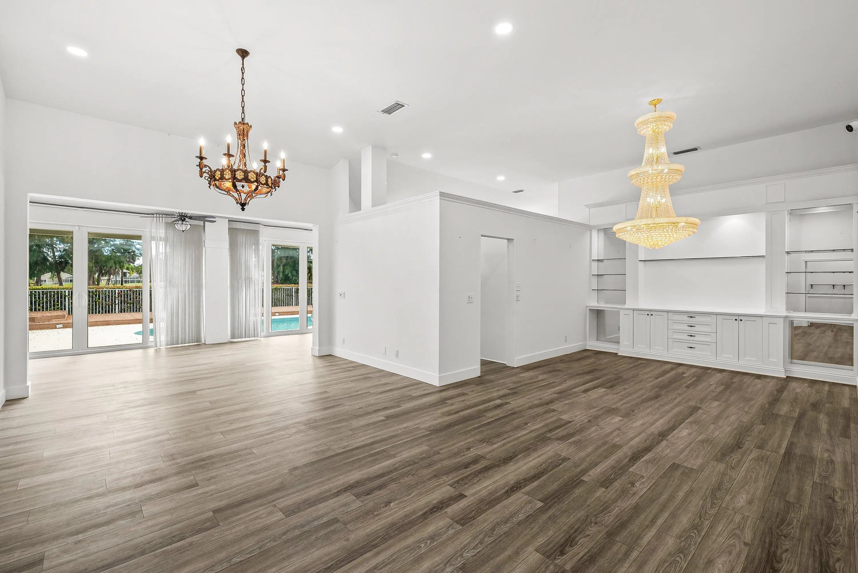 Elegantly and completely remodeled estate home with expansive views of lake and 15th hole of Palmer golf course. Custom kitchen cabinetry, gas cooktop, wine cooler and high end appliances. Beautiful upgraded bathrooms. Built-is in dining room, bedrooms, bathrooms and garage. Both A/C units replaced in 2023 & 2024. Newer roof, pool with separate spa and large extended Trex deck. Screened lanai has been glassed enclosed and has 2 sliding doors. Whole house generator for peace of mind. Available for quick closing.