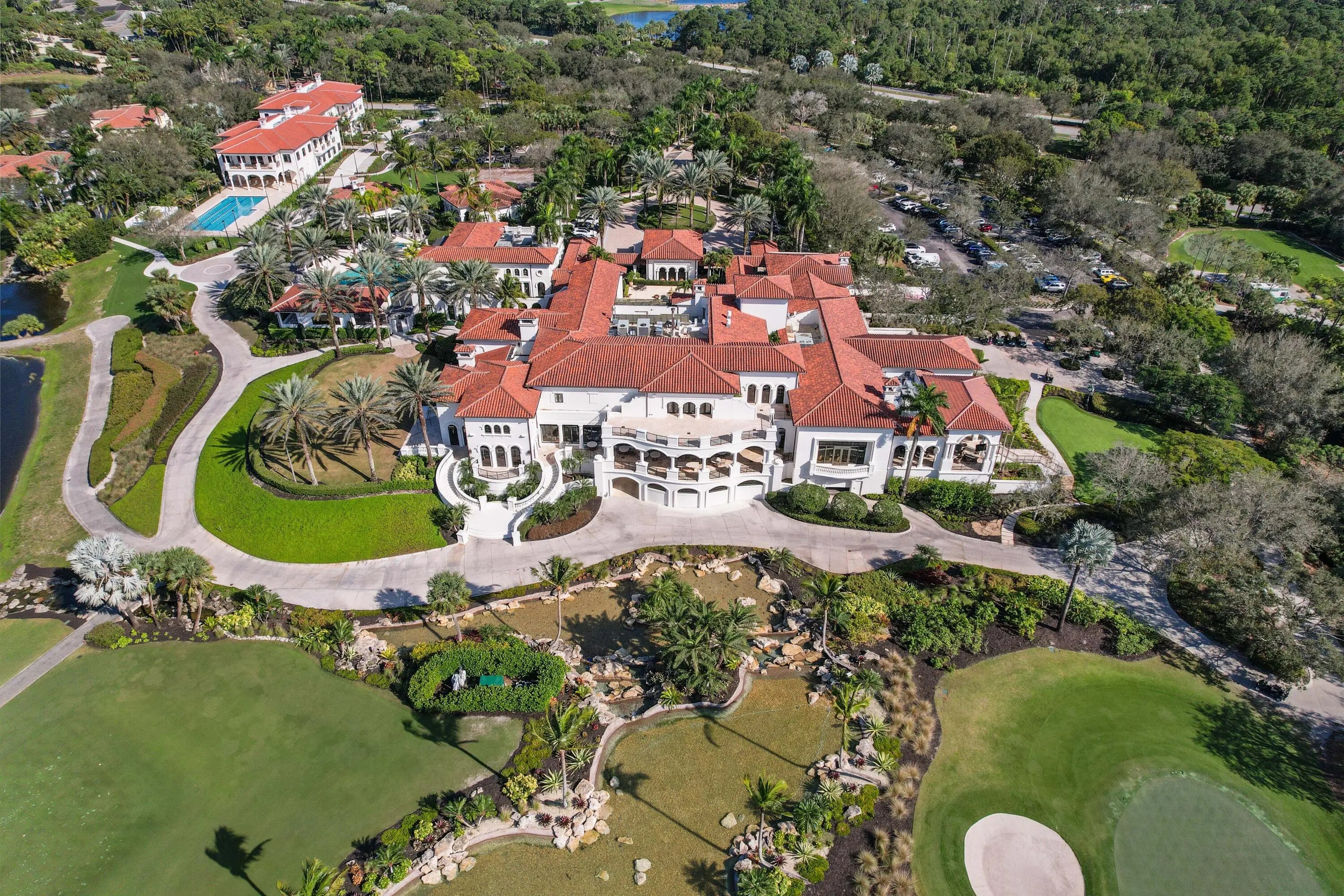 Welcome to this exceptional estate located within the one-acre enclave of the prestigious Old Palm Golf Club. Designed by Randall Stofft , Architect, this magnificent 5-bedroom residence offers over 9,000 square feet of luxurious living space with a thoughtfully designed floor plan and impeccable attention to detail throughout. Ideal for both everyday living and grand entertaining, the home features multiple gathering spaces, including an impressive game room and private theater. The expansive second-floor primary suite is a true retreat, complete with his-and-her bathrooms and walk-in closets, with convenient elevator access nearby. Four additional en-suite guest bedrooms, along with a dedicated office and private gym, provide exceptional Comfort and flexibility. Outdoors, the resort style pool and patio are enhanced by exotic water features, creating tranquil, spa-like setting perfect for relaxation or entertaining. Ideally situated in the heart of the Palm Beaches, Old Palm offers easy access to major highways, world class dining, shopping, and entertainment. This full service golf club community features a 33-acre practice facility and a 20,000 sf lifestyle center, with full golf membership required.