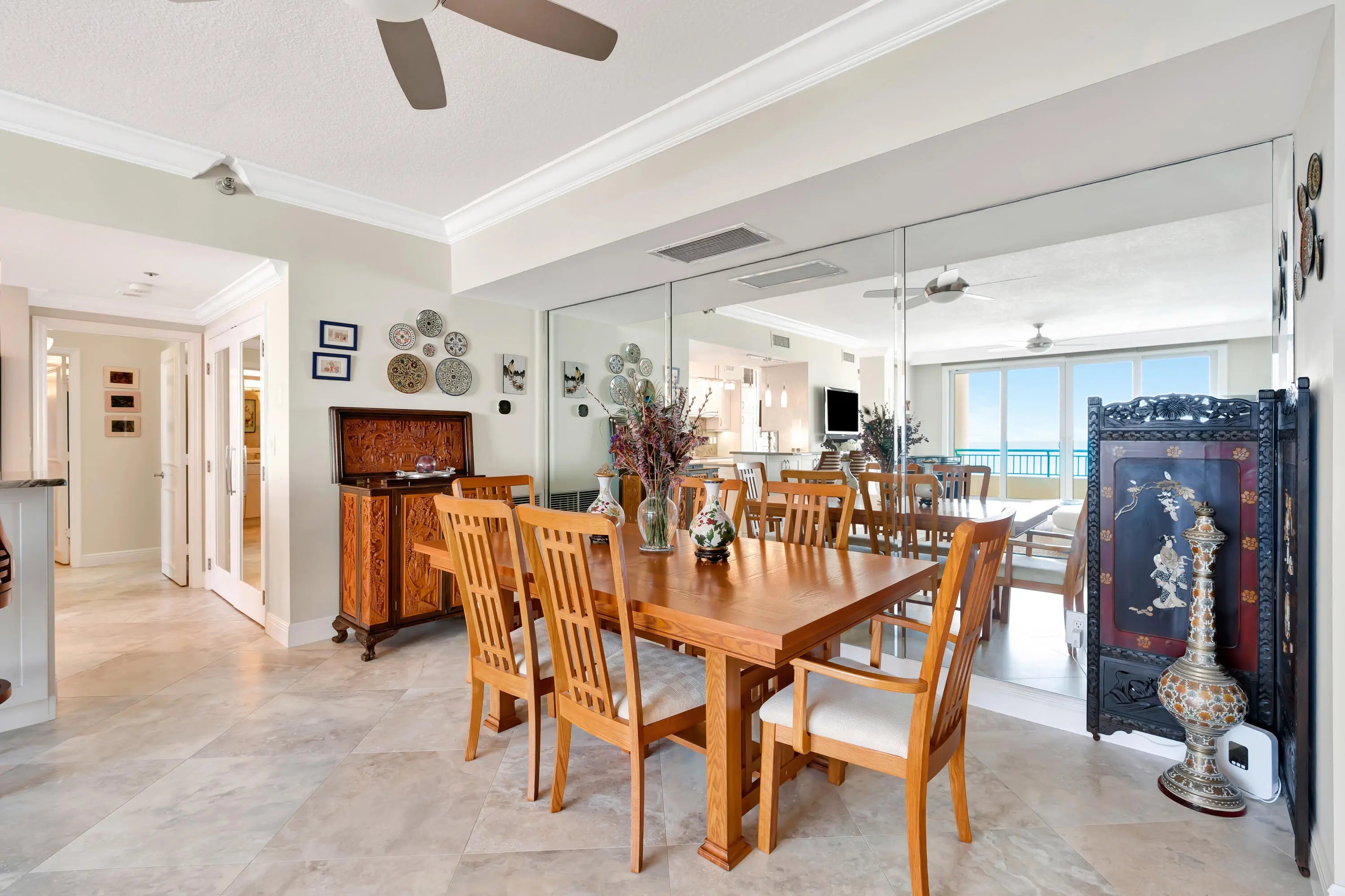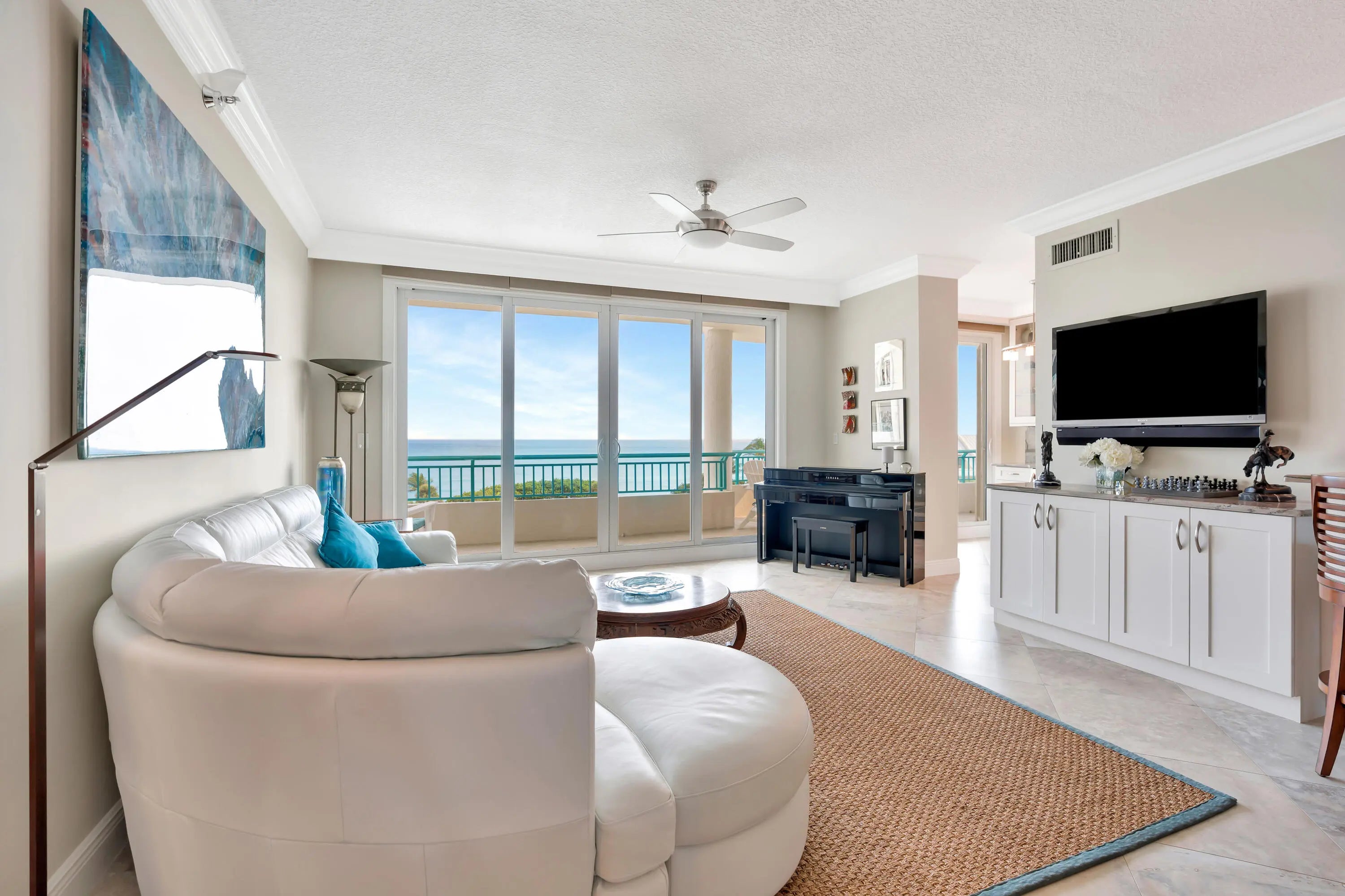 Experience refined oceanfront living in this rare, oversized 2BR/2Bath residence within an intimate 48-unit boutique building. Spanning 1,729 square feet, this is the largest 2 BR floor plan in the building and features the largest east-facing balcony, offering unobstructed, due-east views of the blue Atlantic from every room.This bright and airy condo showcases Italian tile throughout, granite countertops, and professionally designed bathrooms. The expansive balcony includes an additional dining outcove, making it ideal for entertaining and effortless indoor-outdoor living. Enjoy impact glass, custom thick crown molding, and solid-core doors. The primary suite is a true retreat with a walk-in closet, floor-to-ceiling tile in the spa-like bathroom and ocean views from the master shower. The guest bedroom also offers a walk-in closet, providing exceptional storage and comfort. Great split floor-plan and washer/dryer are inside the unit. High end Stainless steel appliances and custom blind treatments with the windows. Residents enjoy a full-amenity, luxury building with a fitness center, sauna, steam room, and beautifully furnished entertainment areasall just steps from the sand. A rare opportunity to own a superior oceanfront condo designed for elegant coastal living.State of the art brand new pool area has just been completed. Condo comes with 2 underground parking spaces, a large air conditoned storage, bike storage, and shopping carts to make oceanfront living easy and convenient. All assessments including concrete work has been completed and paid in full. Building is fully funded with strong reserves, and milestones have all been completed.All of this within minutes to Jupiters best beaches and fine dining including top notch shopping. Very close distance to PBI Airport, 95 and the turnpike making this a leisure commute to Palm Beach Island.