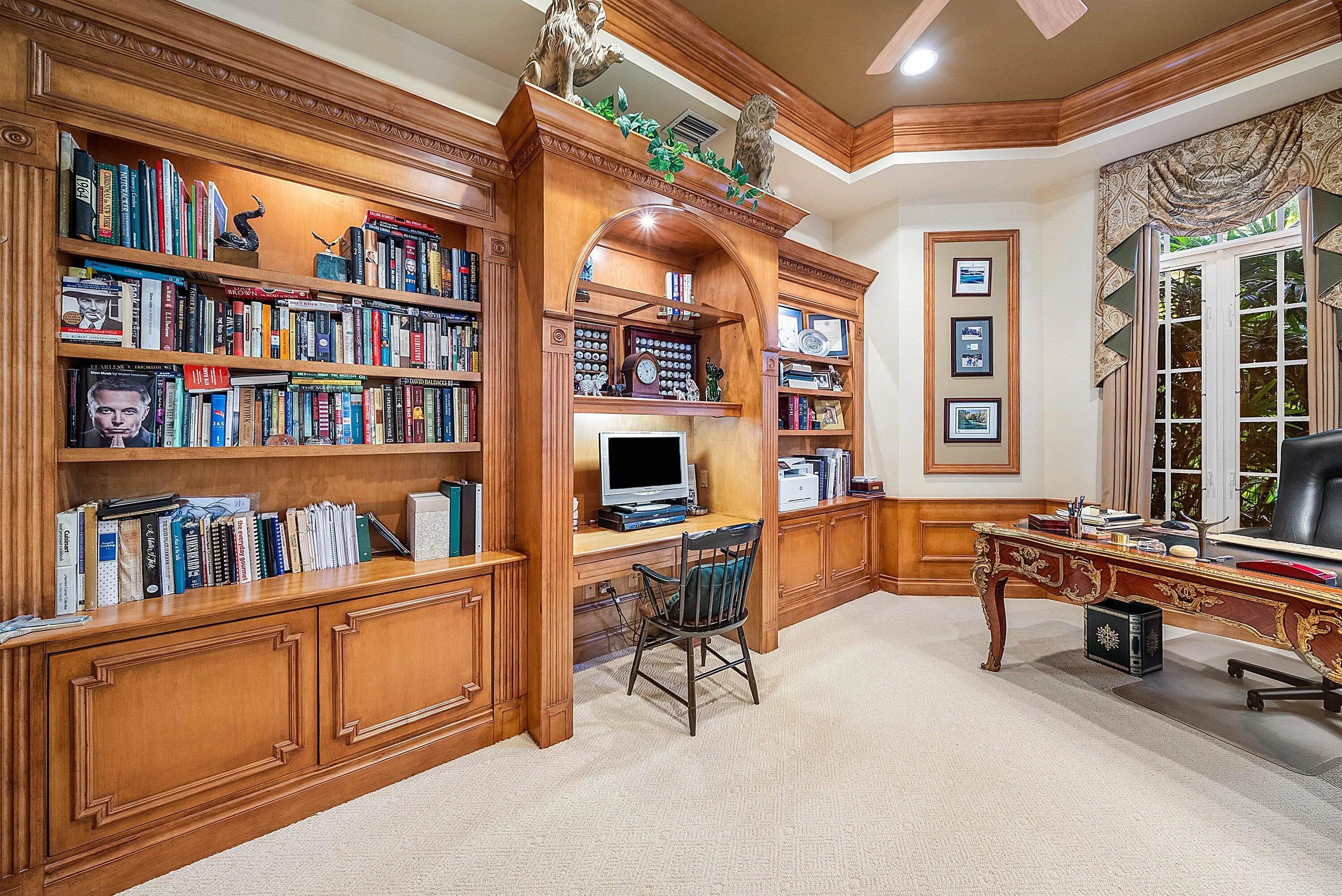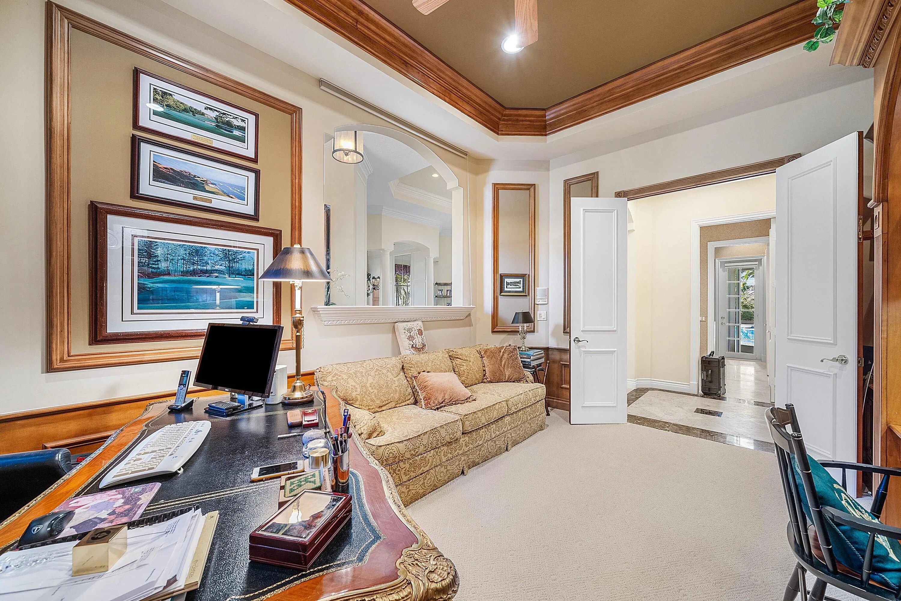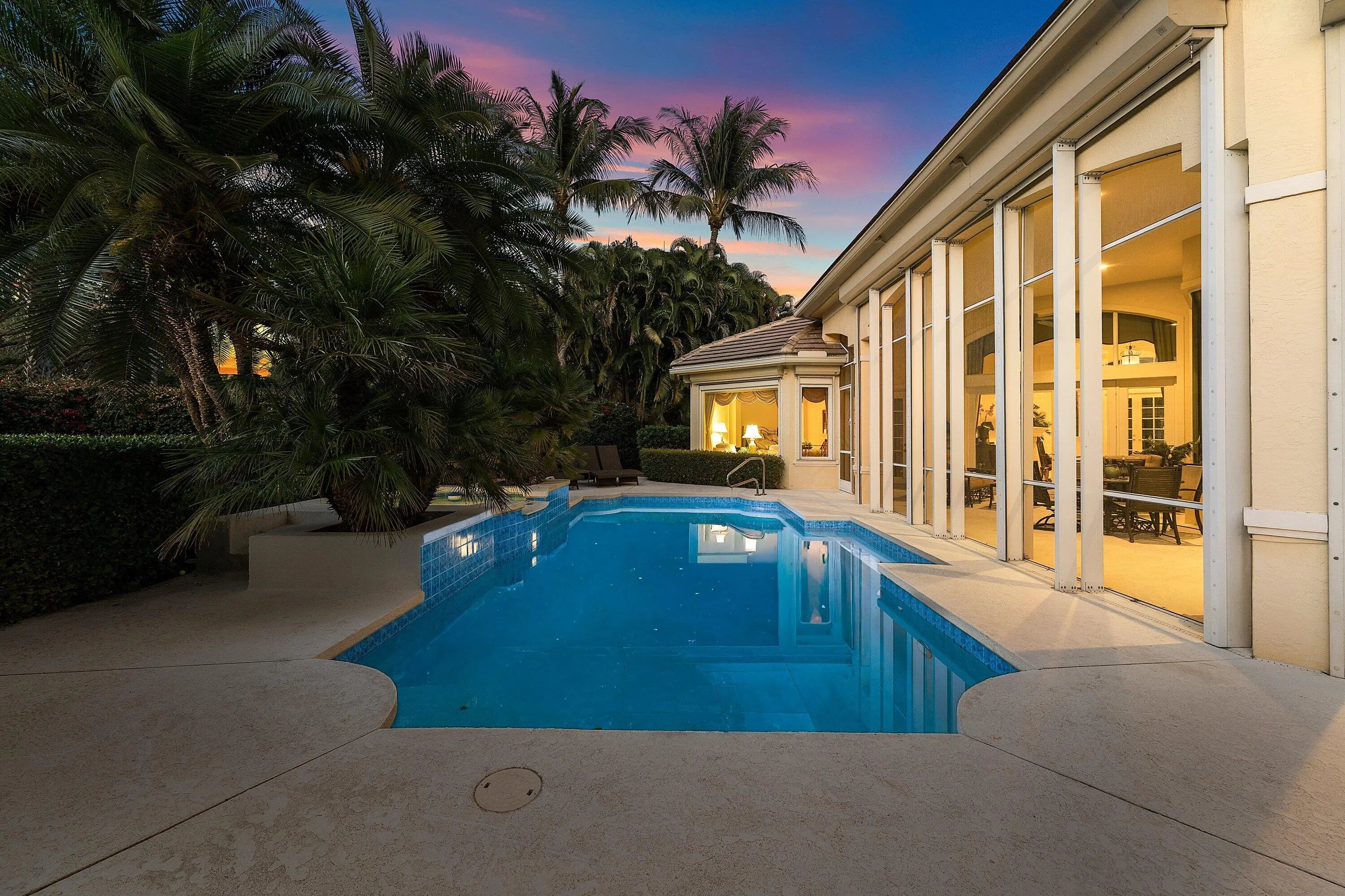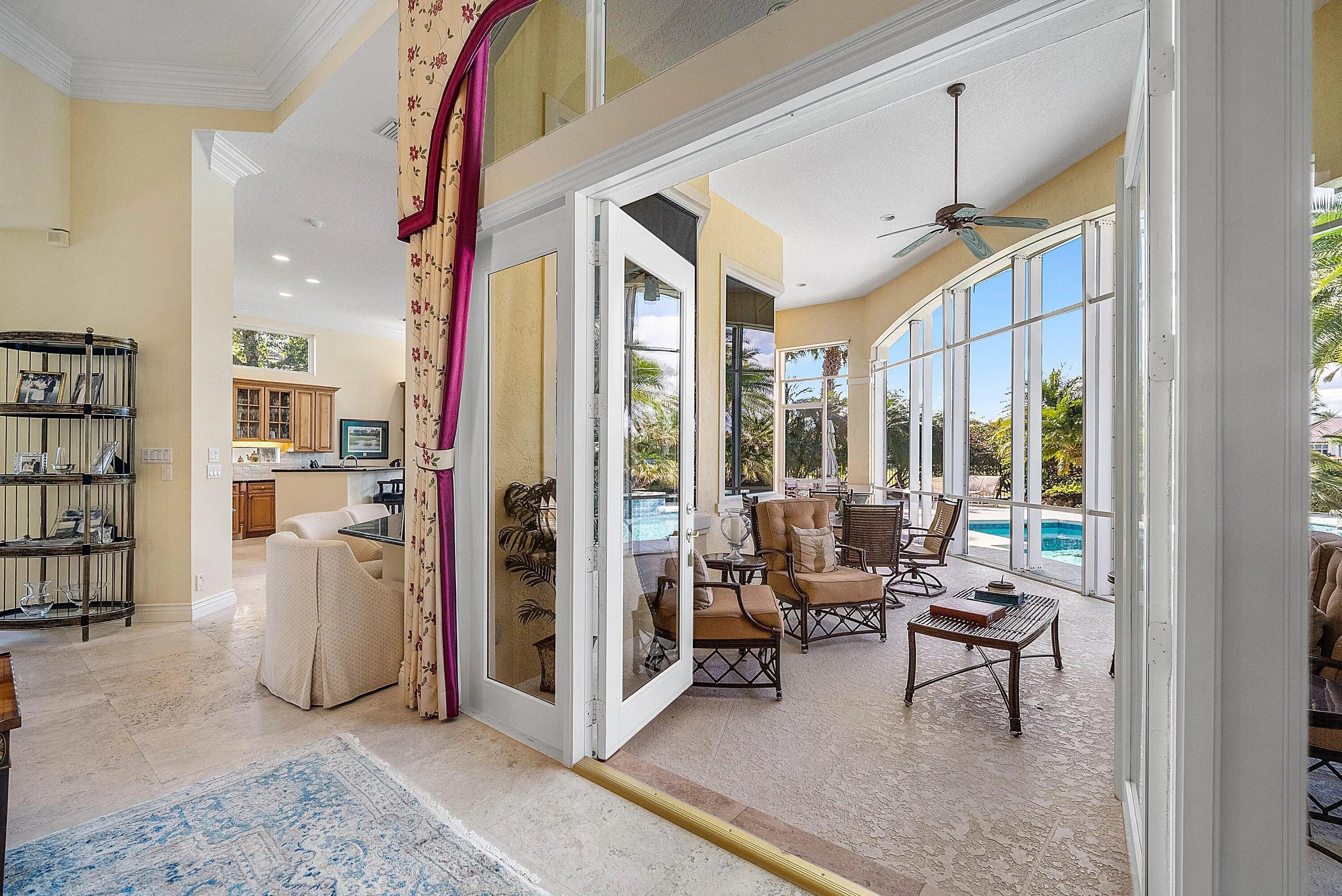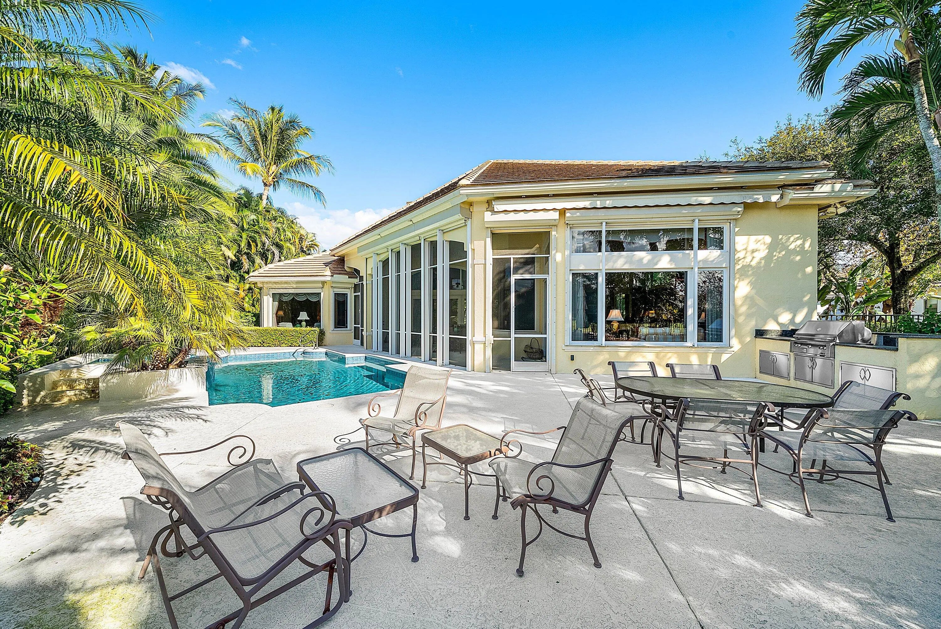 Located on over 1/2 acre, this custom 4 bed, 4 bath estate offers refined living in a setting of exceptional privacy and natural beauty. A striking street presence opens to an elegant, open floor plan designed for effortless entertaining, complete with a full bar and expansive living spaces. The light-filled living room features a wall of glass with sweeping golf and water views and a gas fireplace. The gourmet kitchen opens to the family room and flows seamlessly to a screened lanai overlooking a resort-style pool and summer kitchen. The private owner's suite includes dual walk-in closets with custom built-ins and a spa-like bath with soaking tub, separate shower, and dual vanities. Two additional ensuite bedrooms provide walk-in closets, while a flexible office or den easily serves as a fourth bedroom with a full bath immediately across the hall. Old Marsh is an exclusive, gated enclave of custom estate homes on half-acre or larger homesites, surrounded by protected nature preserves. The acclaimed Pete Dye-designed championship golf course offers no tee times, a nationally recognized caddie program, and ranks among the best in the country. Just minutes from beaches, PBI Airport, fine dining, shopping, and cultural attractions, this impeccably maintained home presents a rare opportunity in one of South Florida's most sought-after private communities.