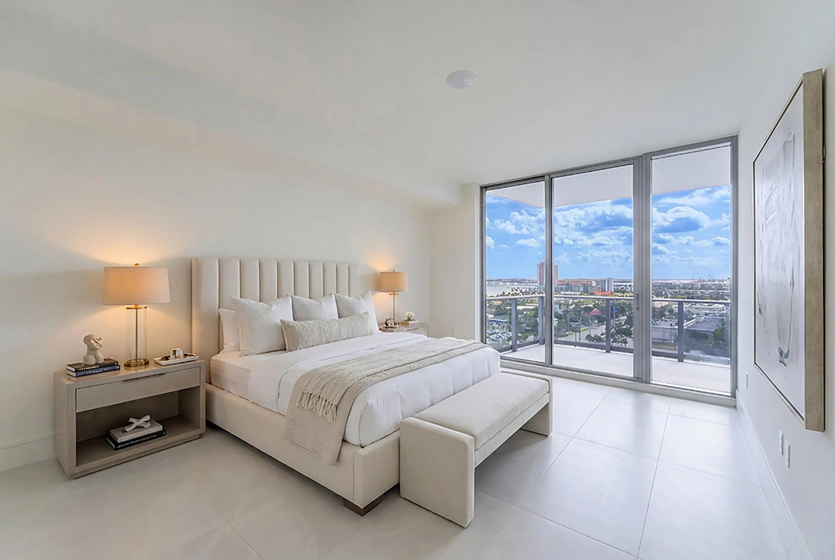 Be the first to enjoy this brand new, never lived in, waterfront residence at Nautilus 220. This 2-bedroom, 2.5-bath condo features TWO PARKING SPOTS, private storage unit, 10-foot ceilings, a bright open layout, and elevated finishes throughout, including European porcelain tile and cabinetry, quartz countertops, front-lit mirrors, dual vanities, walk-in closets, glass-enclosed showers, and a soaking tub. The chef's kitchen is equipped with Miele appliances, a beverage cooler, and a striking quartz waterfall island. Positioned on the 10th floor, the south-facing terrace offers sweeping east, west, and south views, including Peanut Island, along with ocean and Intracoastal vistas overlooking the resort-style pool deck. Nautilus 220 offers full-service, resort-style living with a 6th-floor pool deck, firepit lounges, spa, grill stations, rooftop lap pool, fitness, spin and yoga studios, sauna and steam rooms, bowling alley, theater, golf simulator, lounges, kids and teen rooms, beach access on Singer Island, EV charging, concierge services, and waterfront dining by Celebrity Chef David Burke.