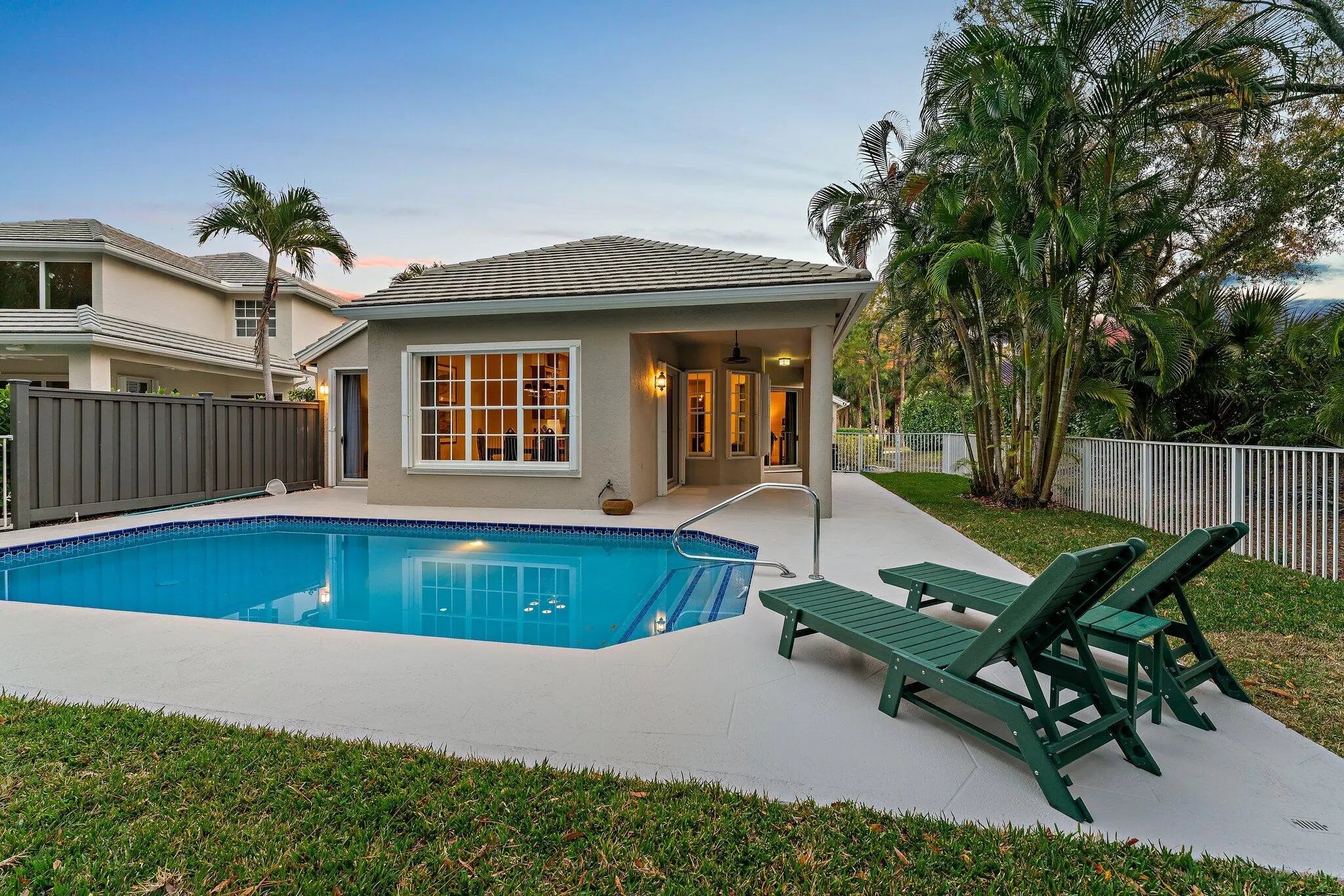 ***This is truly a home that must be experienced in person -- it shows even more beautifully than photos can capture. The finishes, natural light, and sense of privacy create an elevated living experience that can only be fully appreciated firsthand. Welcome to your move-in ready, fully renovated home in the highly sought-after community of PGA National, ideally positioned behind a 24/7 manned gate. This beautifully updated 3-bedroom, 3 full-bath pool home sits on a private CORNER LOT with an OVERSIZED FENCED BACKYARD, offering exceptional privacy, elegance, and peace of mind. Every space has been professionally remodeled with thoughtful, high-end finishes throughout. Custom rustic Alder cabinetry enhances the kitchen, bathrooms, and stunning built-in media wall. READ MORE... The chef's kitchen is both functional and visually striking, featuring a gas range, Pompeii quartz countertops, abundant storage, and designer details perfect for entertaining. The spacious primary suite is filled with natural light and overlooks the pool, complete with custom his-and-hers built-in closet systems. The primary bath features dual sinks, custom cabinetry, exquisite tile work, upgraded hardware, and a seamless glass shower enclosure. The main guest room features a built-in desk with open shelving and a pull-down Queen Murphy/wall bed that converts with just a touch. An attached ensuite full bath provides complete privacy for overnighters and true convenience for daytime office use. The second guest bedroom is generously sized with custom closet built-ins and beautiful natural light. Wide-plank European Oak engineered flooring flows throughout the home. The oversized laundry room offers custom cabinetry with a new front-load washer and dryer. Recent exterior improvements enhance curb appeal and longevity, including a freshly painted exterior (2025), roof pressure washed (2025), new landscaping and sod, and a freshly painted pool deck surrounding the pristine swimming pool. Accordion shutters provide added storm protection. Major system upgrades include a 2014 roof, natural gas tankless water heater, and a Generac whole-house generator for uninterrupted comfort. Step outside to your PRIVATE BACKYARD RETREAT, a true standout feature. Situated on an oversized corner lot with ultimate privacy, this expansive fenced backyard offers rare space and seclusion within PGA National. The BEAUTIFUL, PRISTINE POOL is surrounded by a freshly painted deck and lush landscaping, creating the perfect setting for entertaining, sunset swims, weekend gatherings, or quiet mornings with coffee. With generous yard space beyond the pool, there is room to expand, play, or simply enjoy the open-air Florida lifestyle in complete privacy. PGA National offers optional memberships and is conveniently located near dining, shopping, and world-class amenities, delivering the ultimate Palm Beach lifestyle.