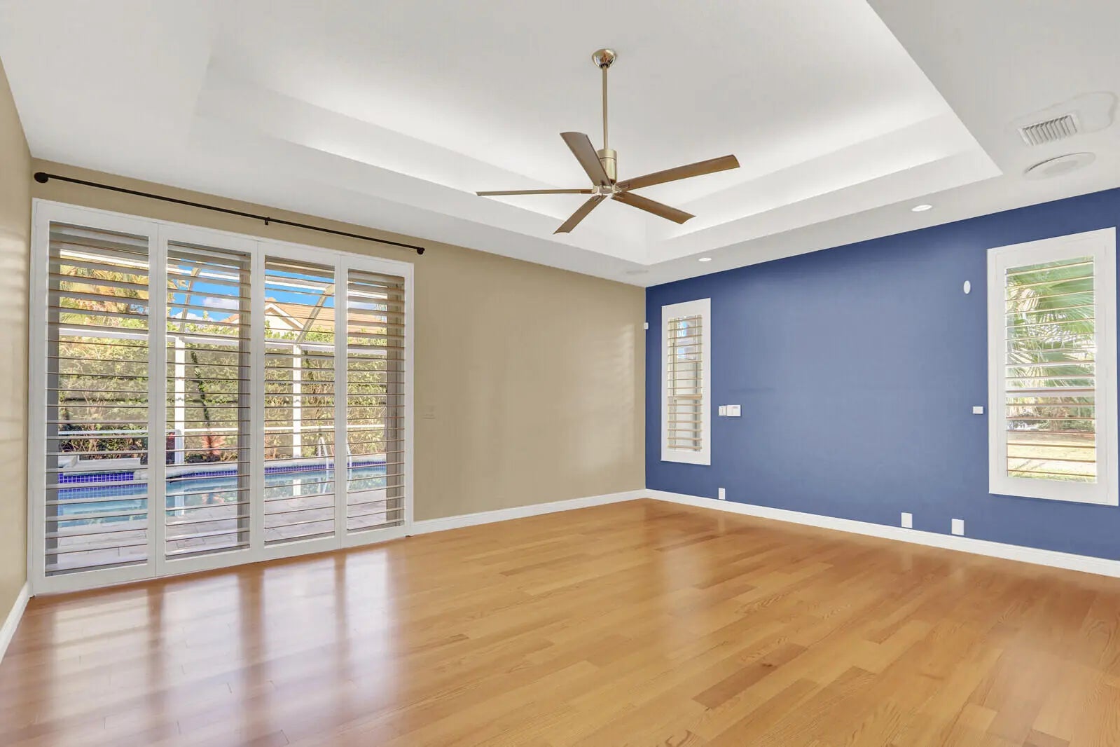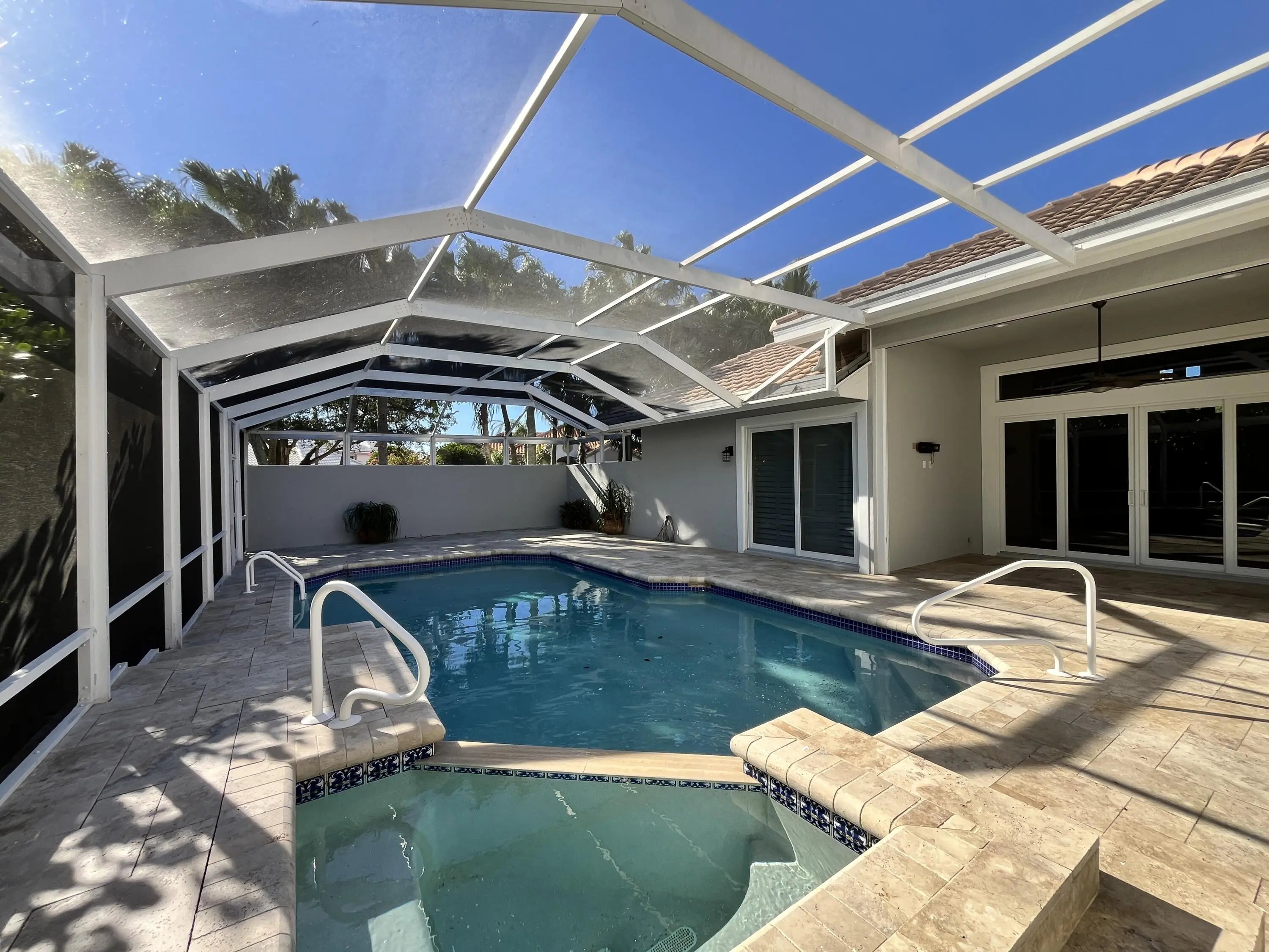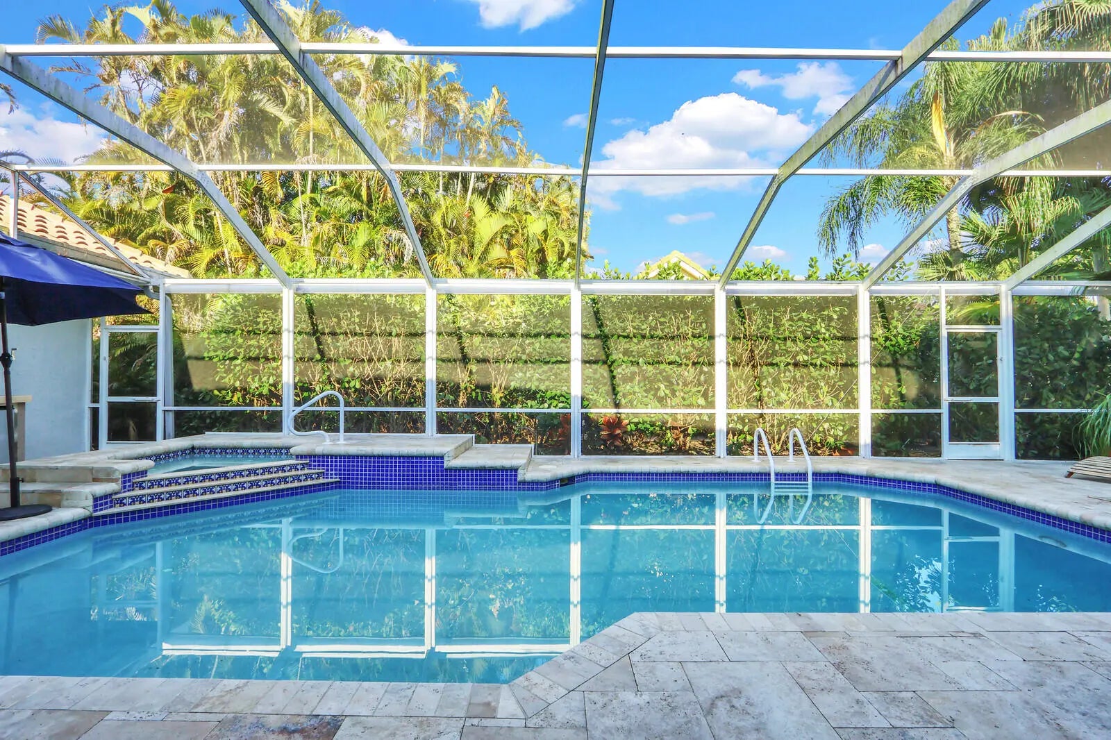 Highly motivated seller. Beautiful 4 bedroom/4.5 bath home nestled in the gated community The Island in PGA National. This stunning home features 3,346 square feet of luxury living. AC 2022, new roof 2024, impact glass, and full house generator. Beautiful hardwood floors and new carpet. Two separate office spaces/den. Extra large walk in pantry. Elegant built-in bookcase in family room. Custom closets in all bedrooms. Oversized primary with 2 separate closets. Screened in travertine patio and pool, plus an outdoor shower. *all room sizes are approximate.