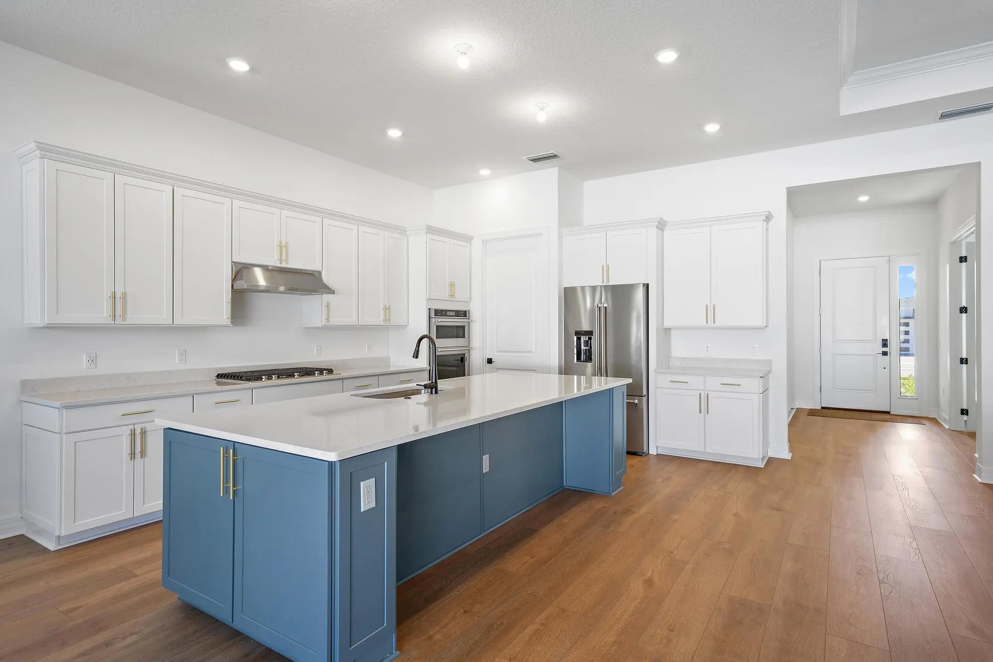 Set within the sought-after Avondale neighborhood of Avenir in Palm Beach Gardens, this exceptional Stellar model from the Estate Collection blends modern design, thoughtful upgrades, and effortless indoor-outdoor living. Offering 3 bedrooms, 4 full baths, and 2,523 square feet, this beautifully enhanced residence is positioned on a .23-acre estate lot with a desirable coastal exterior and a true three-car garage featuring a rare 4-foot extension. From the moment you enter, the home's light-filled layout and refined finishes make an immediate impression. A dramatic zero-corner sliding glass door in the gathering room creates seamless connectivity to the lanai, blurring the lines between interior and exterior living. Luxury vinyl plank flooring flows throughout all living areas, complemented by upgraded LED lighting and a curated four-light downlight package in the gathering room and owner's suite. The kitchen is both elevated and functional, showcasing upgraded cabinetry, 1.2" quartz countertops, pendant pre-wiring, and a layout designed for gathering. Technology and convenience are thoughtfully integrated with a Smart Home low-voltage package, wireless access points, a 16-port network switch, flat-panel TV prep with LAN wiring in all bedrooms and gathering areas, and custom TV mounts. Each bath has been tastefully enhanced. The owner's suite features a spa-inspired bath with a walk-in shower and soaking tub, heavy frameless glass enclosure, dual shower heads, upgraded countertops, fixtures, and custom mirrors. Secondary baths also offer walk-in showers with frameless glass, upgraded finishes, and custom detailing. A dedicated lanai bath with walk-in shower adds convenience for poolside entertaining. Step outside to your private retreat--highlighted by a 14' x 30' custom pool with screen enclosure, gas line stub-out at the lanai, and generous covered space designed for year-round enjoyment. The backyard setting provides both privacy and the perfect backdrop for relaxed Florida living. Additional upgrades include an advanced HVAC air quality system with Carbon Clean MERV 16 filter, UVA light, and catalyst, a full laundry room with upgraded cabinetry and sink, a complete security system with three wired outdoor cameras and integrated video doorbell, and a meticulously finished garage with custom epoxy flooring, additional lighting, keyless entry, GFI circuit, sink, and LED enhancements. Avondale at Avenir offers a vibrant, amenity-rich lifestyle with resort-style pools, fitness facilities, walking trails, and the future Town Center bringing dining and shopping moments away. Surrounded by preserved green space yet close to everything Palm Beach Gardens has to offer, this residence represents refined, move-in-ready living in one of South Florida's most dynamic new communities.