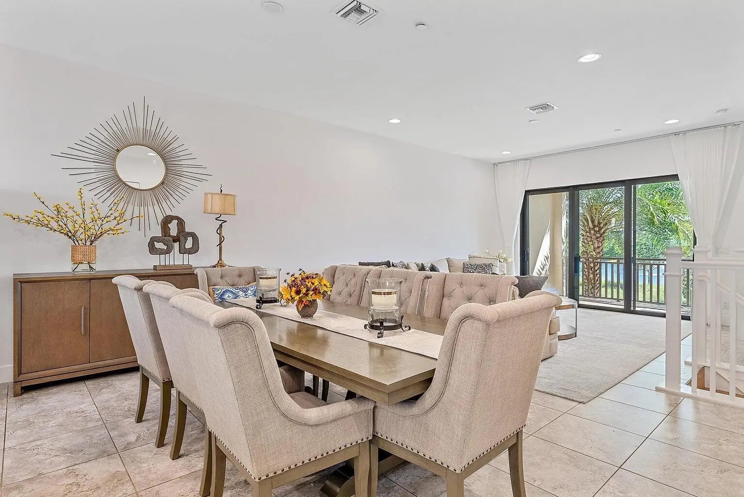 Beautiful townhouse in the highly sought-after community of Alton. This spacious home features 3 bedrooms, a den, 3.5 bathrooms, and a large 2-car garage. The first floor offers a versatile den and full bathroom, perfect for a home office or guest space. The second level features a bright white kitchen with stainless steel appliances, wood cabinetry, pantry, and ample counter space, opening to the main living area and a large covered balcony ideal for relaxing or entertaining. The primary suite on the third floor includes walk-in closets with custom built-ins and an en-suite bathroom with a frameless glass shower. Tile flooring throughout the main living areas and wood-style flooring in the bedrooms. Residents enjoy Alton's clubhouse, resort-style pool, and amentities.