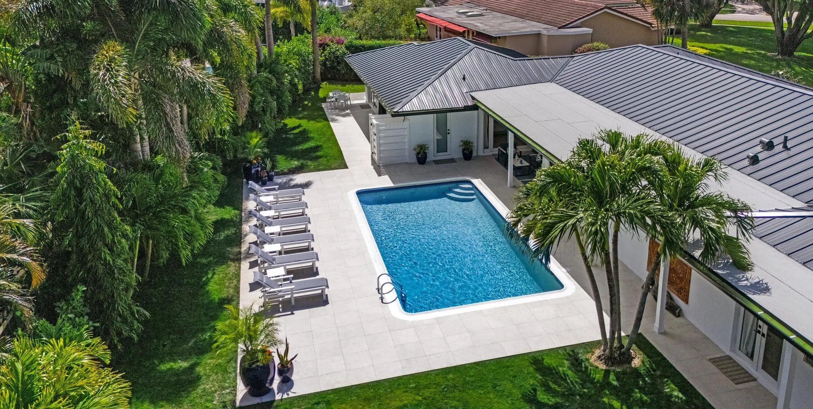 A private oasis awaits you in the premier section of North Palm Beach. This one-story home is in a cul-de-sac and sits on a .37-acre lot with a re-designed oversize pool area and professionally landscaped backyard. A newly constructed gazebo with summer kitchen, outdoor dining, retractable awning and large TV provides an extra 500 sf of covered entertaining space. The inside of the home was completely gutted to the studs and redesigned from ground up with additional living space. Whilst the tax records reflect the year built as 1965, this home lives like a brand new 2025 construction. A substantial amount of the original walls was demolished, the home enlarged and all outside walls are now Concrete Block. The roof structure was modified, reinforced, finished with metal roof and gutters. The open concept living area featuring exposed structural beams is a showstopper. The entire home has been reconfigured and finished to perfection, with no expenses spared. The split plan offers a total of 5 bedrooms; including a completely private master suite with resort-like vibes that leads out to the backyard and pool deck. A full guest suite, complete with kitchen and separate entry, is perfect for visitors or live-in staff. The patio features electric retractable hurricane screens, giving you an option of additional air-conditioned space for outdoor dining. This is a must-see home. Please review the attached Feature Sheet which describes all the improvements in detail. This is hands down the most stunning home in North Palm Beach. Please note that the seller needs a closing after July 24, 2026