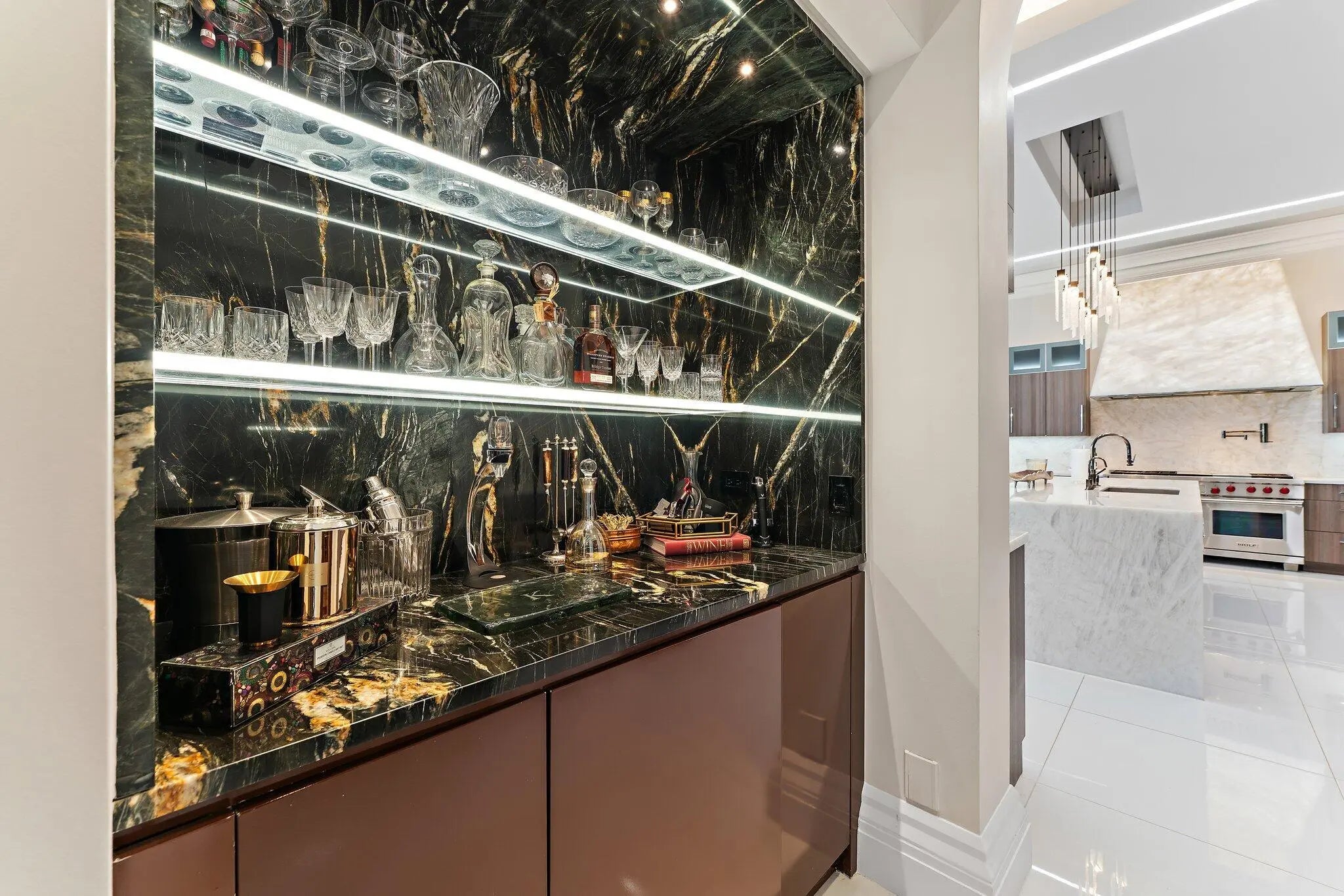 Bar, Built-in Features, Entrance Foyer, Elevator, High Ceilings, Walk-In Closet(s), Roman Tub, Upstairs Living Area, Cabana Bath