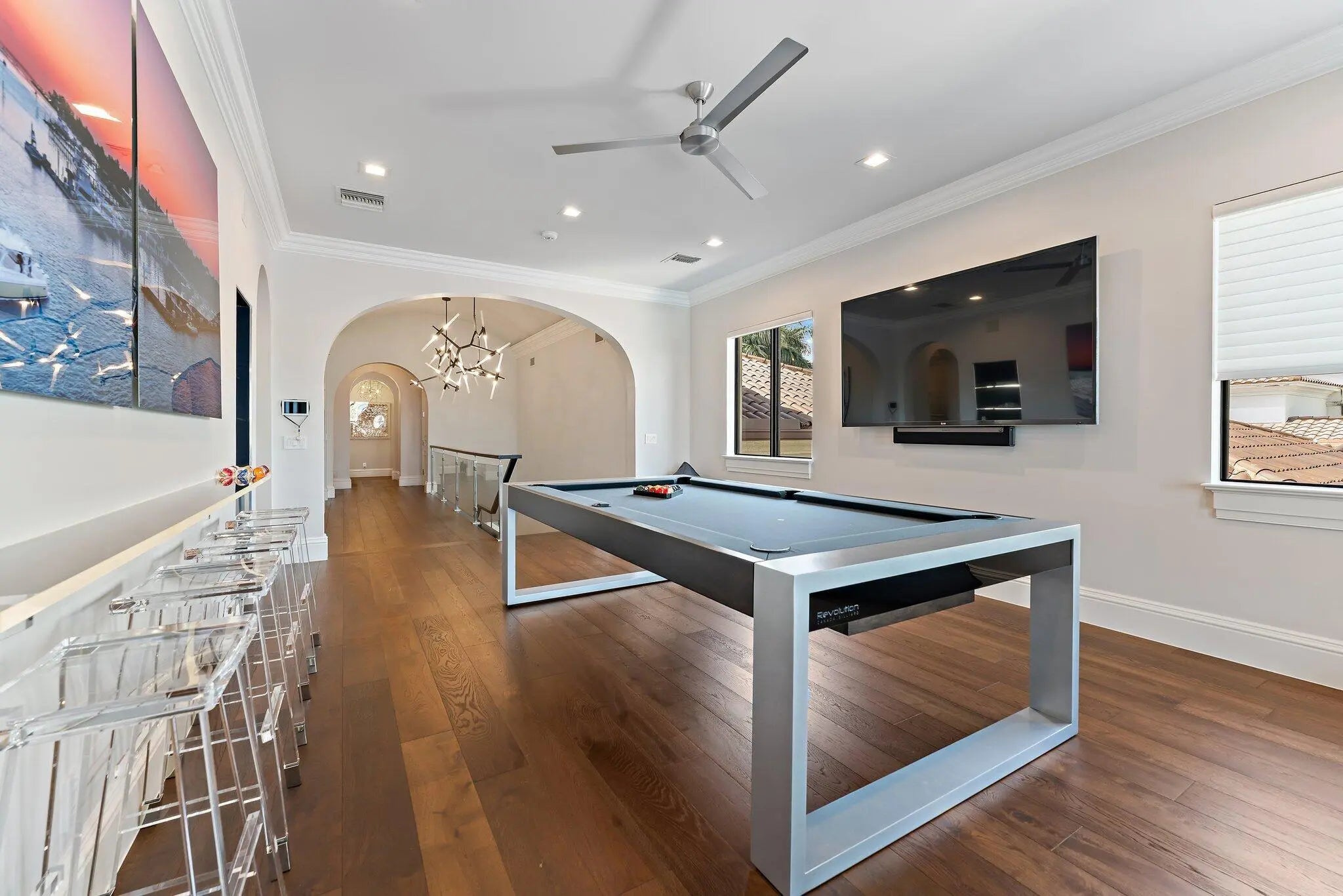 Welcome to one of the most exceptional homes in the prestigious Frenchman's Reserve Country Club--perfectly positioned on one of the most coveted lots in the estate section with sweeping water and golf course views of the 17th hole. Completely transformed by a multi-million dollar full-home renovation in 2020, this extraordinary residence blends timeless luxury with cutting-edge technology, offering a truly turnkey, move-in-ready experience. Spanning an expansive floor plan with 6 bedrooms and 9 bathrooms, the home is designed for both grand entertaining and comfortable everyday living. The interiors feature sophisticated finishes, a private office, game room, and a state-of-the-art theater room equipped with top-of-the-line components and a fully integrated smart home system controlling lighting, climate, security, and entertainment throughout the property. The chef's kitchen and main living areas flow seamlessly to the outdoor spaces where breathtaking views take center stage. Step outside to an entertainer's paradise featuring an infinity-edge pool, outdoor kitchen, and fireplace, all overlooking tranquil water vistas and the lush fairways of the 17th hole. Upstairs, oversized balconies provide the perfect setting for sunrise coffee or sunset cocktails while taking in the spectacular scenery. The home also features custom high-end closet systems, a private gym, and extensive built-ins throughout. Additional highlights include: " 3.1 - car garage " Spacious guest suites with en-suite baths " Designer finishes and luxury materials throughout " Resort-style indoor/outdoor living This rare offering represents one of the finest residences in Palm Beach Gardens, delivering unmatched craftsmanship, technology, and views within one of South Florida's most exclusive golf communities. A truly exceptional opportunity to own one of the premier estate homes in Frenchman's Reserve.