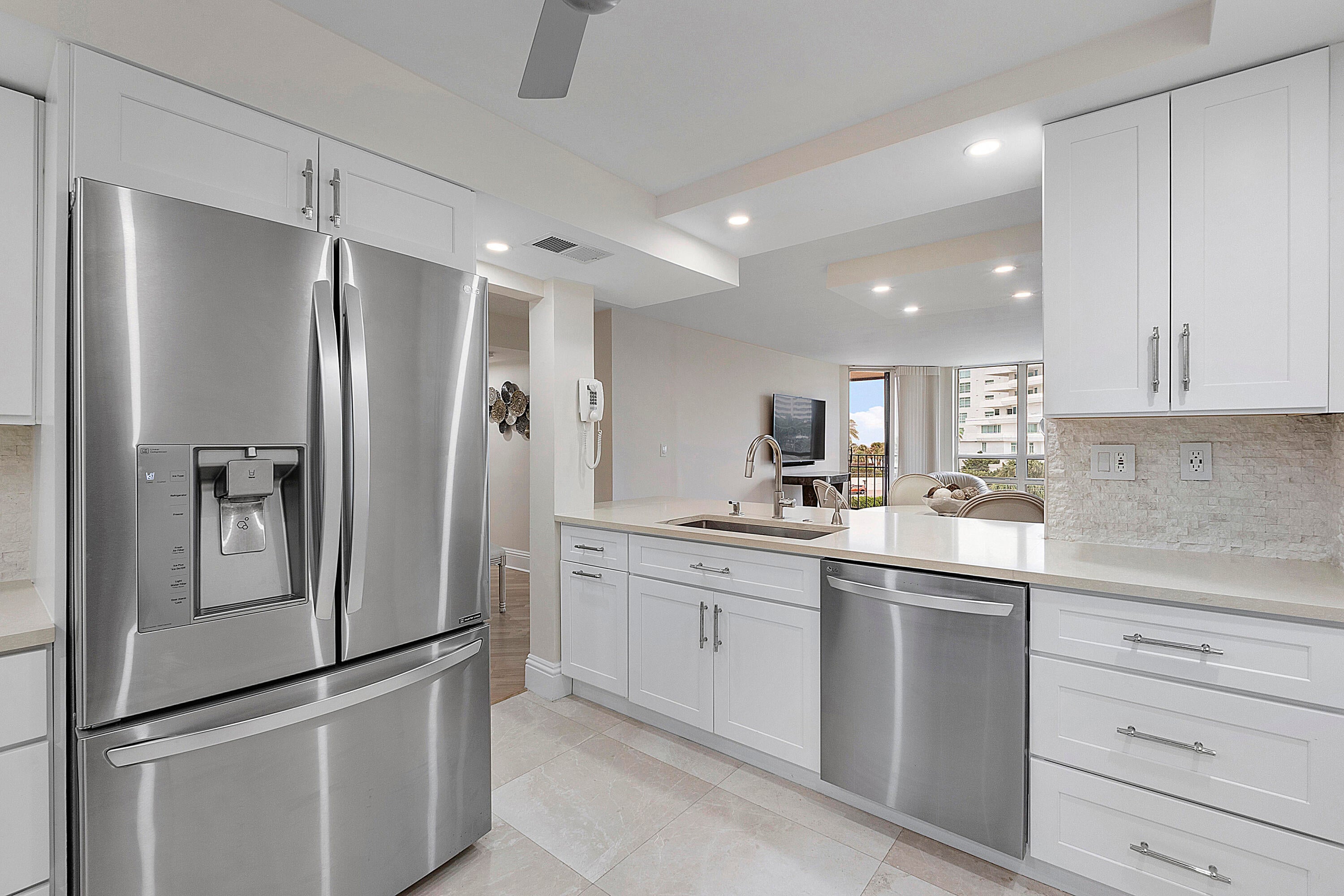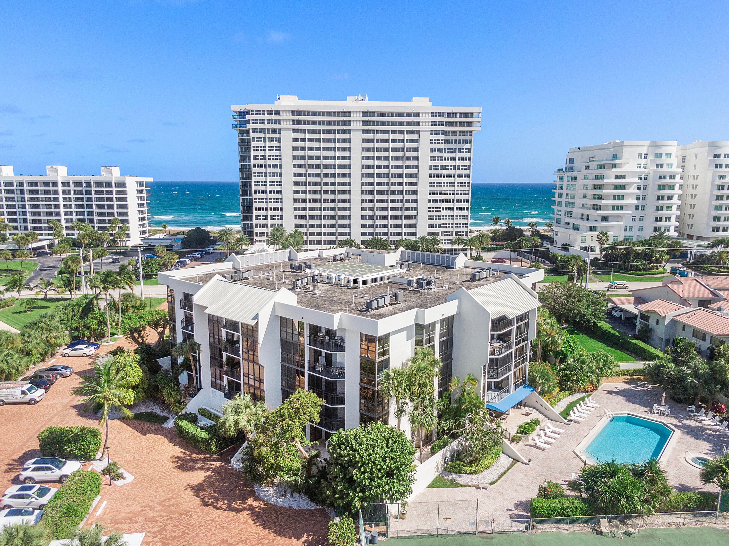 Welcome to your SEASIDE SANCTUARY! Updated 2 bedroom/ 2 bath with OCEAN VIEWS from living area & both bedrooms!Floor to ceiling windows & sliding glass doors enhance the EASTERN sunny exposure. Your gourmet kitchen is equipped with stainless LG appliances, quartz counter tops, white cabinetry, tumbled stone marble back splash & an open bar pass- through which is perfect when entertaining! The minute that you walk in the double door entry you will appreciate the quality, and all furniture and furnishings are included. The spacious primary suite has a custom walk-in closet and a luxurious bath with glass enclosed shower accented with high- end fixtures, Toto toilet, custom vanity & cabinetThe guest Bath is equally upgraded with marble, Toto toilet & custom cabinet.PRICED TO SELL!!Other upgrades include recessed lighting, wide base boards, easy care wood- like flooring in the living area, hurricane shutters, newer AC and water heater, plus a convenient washer & dryer. Just move-in and enjoy the BEACH just a few feet away! Relax on your private balcony with access from living room and each bedroom. There is a private carport space and plenty of guest parking available. The Esplanade is a BOUTIQUE building ideally located on A1A in Boca Raton with only 37 residences designed with an atrium, open courtyard as you enter. The well-maintained amenities include a resort-style pool & spa, tennis courts with pickleball, B-B Que grill, community room & extra storage all make this the perfect place to live! You can feel at ease knowing that the CONCRETE WORK AND PAINTING has been completed. Come and indulge in the ultimate BEACHSIDE lifestyle!!!
