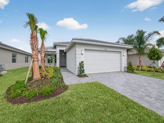 Valencia Grove at Riverland is where you'll find Port St. Lucie's best 55+ lifestyle with a million ways to have fun including a beautiful 34,000-square foot Clubhouse with resort-style amenities. This Lucia floorplan includes private landscaped views and an open floor plan with contemporary porcelain 24''x24'' matte tile flooring throughout all main living areas and den. All bedrooms include plush carpet. The home features high end finishes including impact glass windows, GE gas appliances, tile roof, and recessed LED lighting. The spacious kitchen includes quartz countertops with a designer decorative tile backsplash, painted white maple shaker style cabinets with soft close doors and drawers, and stainless-steel appliances including a chimney style hood.All luxury bathrooms include quartz countertops and soft close painted white maple, shaker style cabinets. Valencia Grove offers access to the amazing facilities found throughout the 4,000 acres of master-planned amenities at Riverland, where bigger is better! Stay fit at the 24-acre Sports & Racquet Club that offers over 80 outdoor sports courts and a 51,000 square-foot Wellness & Fitness Center. At Riverland you'll also find ways to express yourself at the 5-acre Arts & Culture Center, a bustling Town Center, the 12-acre Paseo Park among many future city parks and much, much more! You'll be able to easily access it all with the 5 miles of gorgeously landscaped traffic-free Paseo and greenways that connects everyone and everything throughout Riverland like never before - all that's missing is you! CALL FOR MORE DETAILS AND TO SCHEDULE TIME TO PREVIEW.