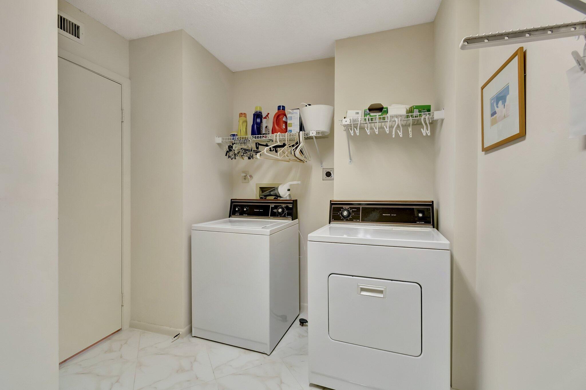 Milestone Inspection Phase 1 Completed, Phase 2 Not Needed - Nothing to be done. Spacious (1,348 Sq Ft) Third Floor (Elevator Building) Unit with Lovely Long Lake Views from your Primary Bedroom, Enclosed Patio and Living Room. Large Primary BR provides easy access to Patio, which offers Peace & Serenity. Primary Bath has a Walk-In Shower and Walk-In Closet. Utility/Laundry Room has Full Size Washer & Dryer and Plenty of room for storage. Tile on the diagonal in the living room area and carpet in Bedrooms. Eat-In Kitchen. For seller convenience, being Sold Unfurnished. All Furniture Has Been Removed.