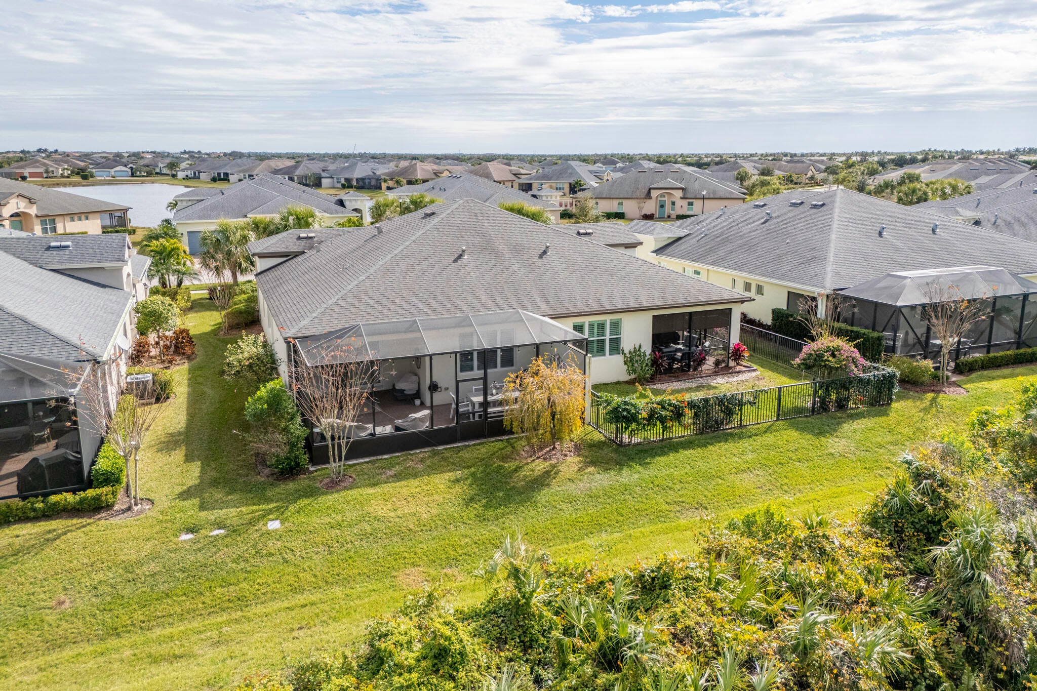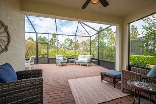 Welcome to this beautifully upgraded villa in a serene and secure 55+ gated community. Designed for comfort and luxury living, this home boasts an array of high-end features and upgrades throughout. Step inside to find elegant tile plank flooring that extends seamlessly throughout the entire home. Impact-resistant windows and doors offer peace of mind. The open-concept living space is enhanced by tray ceilings, crown molding, and plantation shutters, creating a warm, inviting atmosphere. The chef-inspired kitchen is a true highlight, featuring upgraded cabinetry with convenient pull-outs, sleek granite countertops & backsplash, and premium stainless steel appliances. Pendant lighting above the expansive counter adds a touch of sophistication, perfect for both cooking and entertaining. ThThe spacious master suite is a private retreat, with a tray ceiling that adds to its grandeur. The en-suite bathroom offers a spa-like experience, and the second bedroom and bath provides ample space for guests. Work or create in your conveniently located den / office space. Enjoy the outdoors from the extended paver patio and screened lanai, where you can unwind while taking in the peaceful preserve view! Whether hosting a BBQ or enjoying morning coffee, this outdoor space offers tranquility and privacy. As a resident of this community, you'll have access to fantastic amenities, including a sparkling pool and clubhouse with a variety of social activities designed for a vibrant and active lifestyle. This villa combines style, functionality, and peace of mind in a location designed for those who appreciate the finer things in life. Don't miss the opportunity to call this gem your new home!