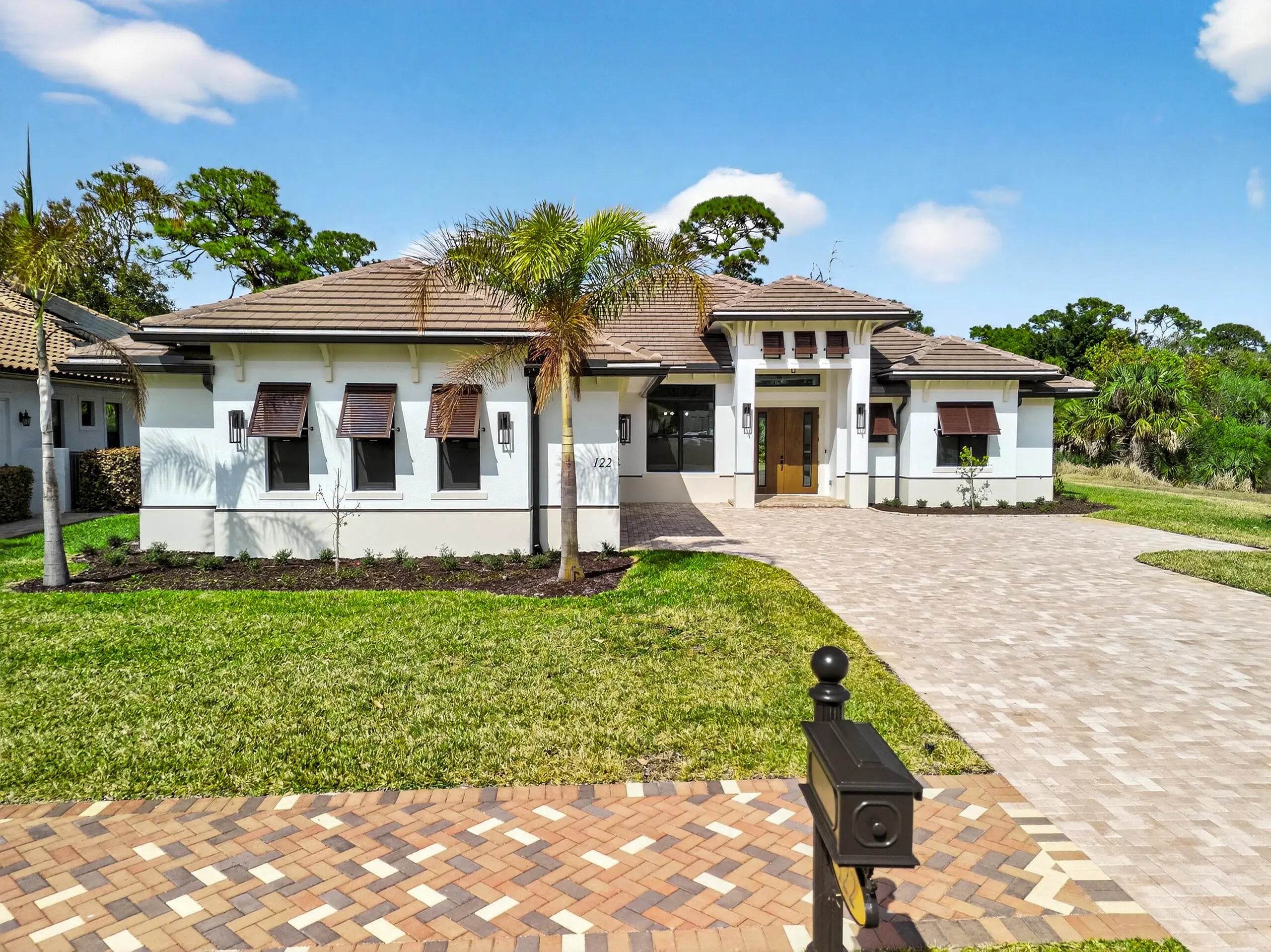 This is the only home of its kind, a custom, never-before-built design in the gated community of Rivella, set on a premium corner lot with preserve views. Inside, you'll find 12' ceilings, exposed beams, and triple impact sliders leading to a covered lanai with outdoor kitchen and fireplace. The chef's kitchen includes quartz counters, custom cabinetry, and a walk-through butler's pantry. The primary suite offers a freestanding tub, oversized shower, and full privacy. Enjoy walkable access to the clubhouse, pool, and tennis. Located near Jensen Beach, downtown Stuart, botanical gardens, and upscale shopping. No closing costs with preferred lender. Optional Paint Color TBA by HOA