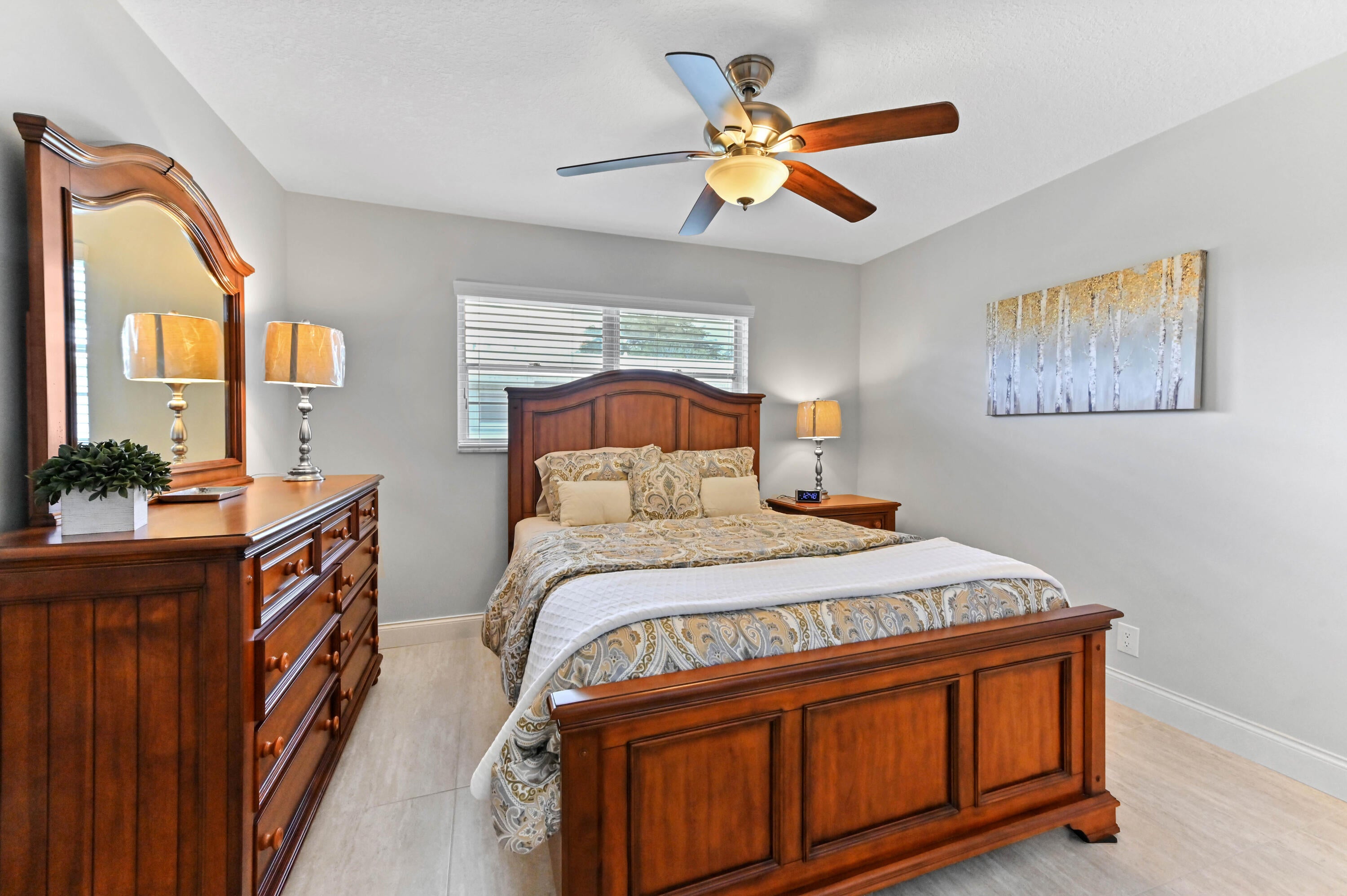 Welcome to this charming 2-bedroom, 2-bathroom villa in the sought-after 55+ community of Leisureville in Boynton Beach. A welcoming front porch invites you inside, where open living areas create a bright and airy ambiance. The split-bedroom design ensures privacy, while the spacious enclosed Florida room offers additional space to relax and unwind. The well-appointed kitchen boasts elegant granite countertops, perfect for meal prep or casual dining.The main bedroom serves as a peaceful retreat with its own ensuite bathroom, while both bedrooms feature ample closet space. Shutters throughout the home provide added security and peace of mind. Whether you're enjoying your morning coffee on the front porch or entertaining in the Florida room, this villa offers a perfect blend of comfort and convenience. Ideally located just minutes from shopping, dining, and beautiful beaches, Leisureville is a well-maintained community that offers residents resort-style amenities, including a clubhouse, pool, and recreational activities. Don't miss your opportunity to enjoy the relaxed South Florida lifestyle in this inviting villa!