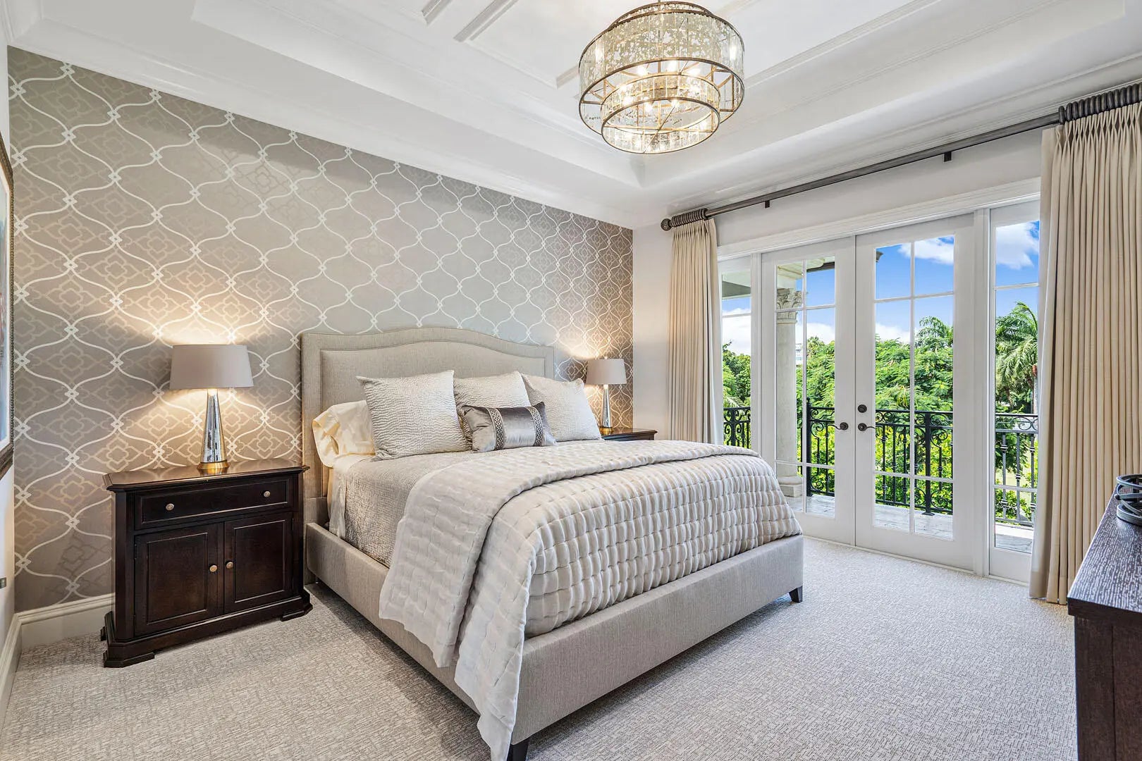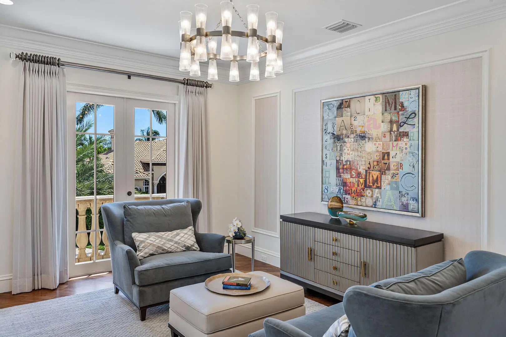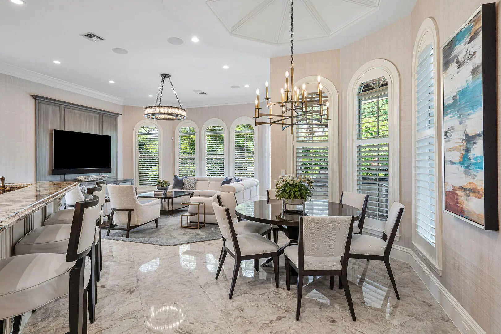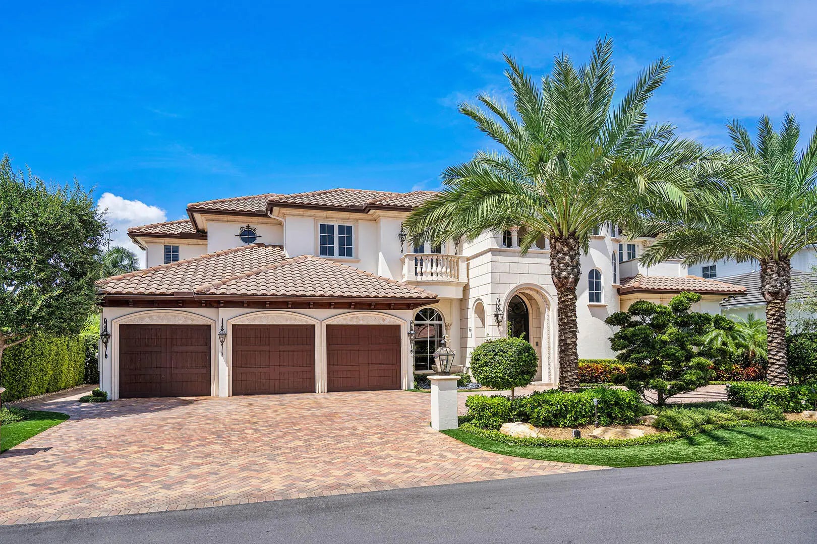 Transformed by the acclaimed P&H Interiors, 1801 Thatch Palm Drive is a masterpiece of design and craftsmanship, set along the 3rd fairway of the prestigious Royal Palm Yacht & Country Club. This impeccably maintained estate seamlessly blends refined Palm Beach architecture with modern comfort, offering an unparalleled living experience.A dramatic foyer makes a lasting impression, leading to exquisitely designed living spaces with soaring ceilings, intricate millwork, and bespoke finishes. Designed for grand entertaining and intimate gatherings, the home features a temperature-controlled wine room, a distinguished private office, and an entertainer's club room with a full-service bar. The chef's kitchen is a study in elegance and function, effortlessly flowing into the family room and breakfast area for relaxed yet sophisticated living. Upstairs, the lavish owner's suite is a serene retreat boasting dual boutique-style dressing rooms, a private morning bar, and a spa-inspired bath adorned with marble and custom accents. Outside, the estate's resort-style grounds invite effortless leisure, featuring a heated pool with cascading water features, a covered loggia, a fully equipped summer kitchen, and lush, manicured landscaping. Additional luxuries include impact windows, a three-car air-conditioned garage with golf cart storage, a state-of-the-art security system, and a whole-home natural gas generator. An extraordinary opportunity to experience refined golf course living in Boca Raton's most coveted enclave.
