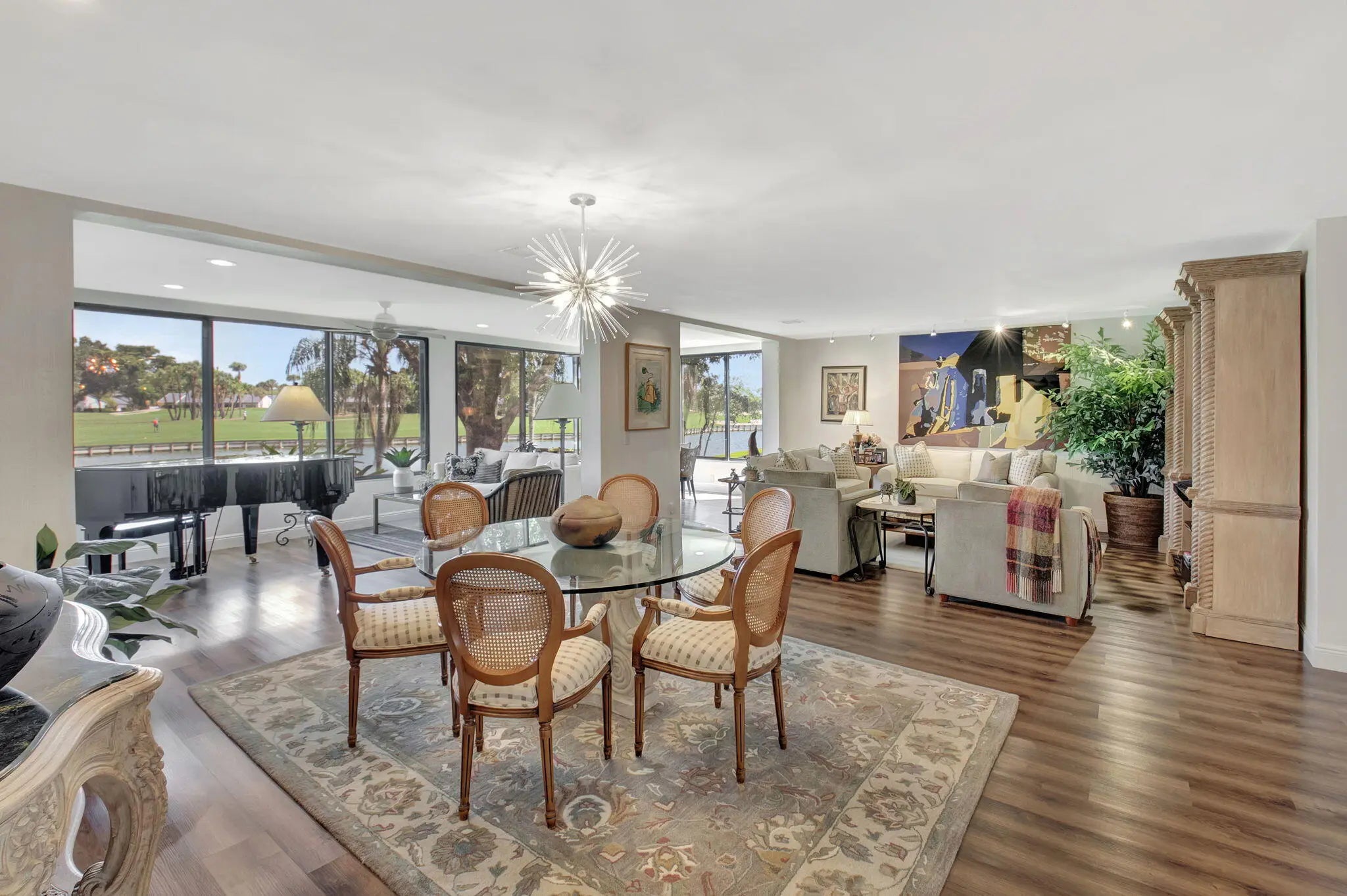 Step into luxury with this expanded first-floor Eastgate condo, offering three formal bedrooms and three full bathrooms and a convertible 4 th bedroom in a beautifully redesigned open-concept layout. Completely renovated, this home features a gourmet kitchen with quartz countertops, stainless steel appliances, and custom cabinetry--perfect for entertaining. Enjoy new AC, luxury vinyl flooring throughout, and an abundance of natural light.Relax in your glass enclosed Florida Room while taking in breathtaking golf course and lake views. This move-in-ready condo combines modern elegance with tranquil surroundings, making it the perfect place to call home!