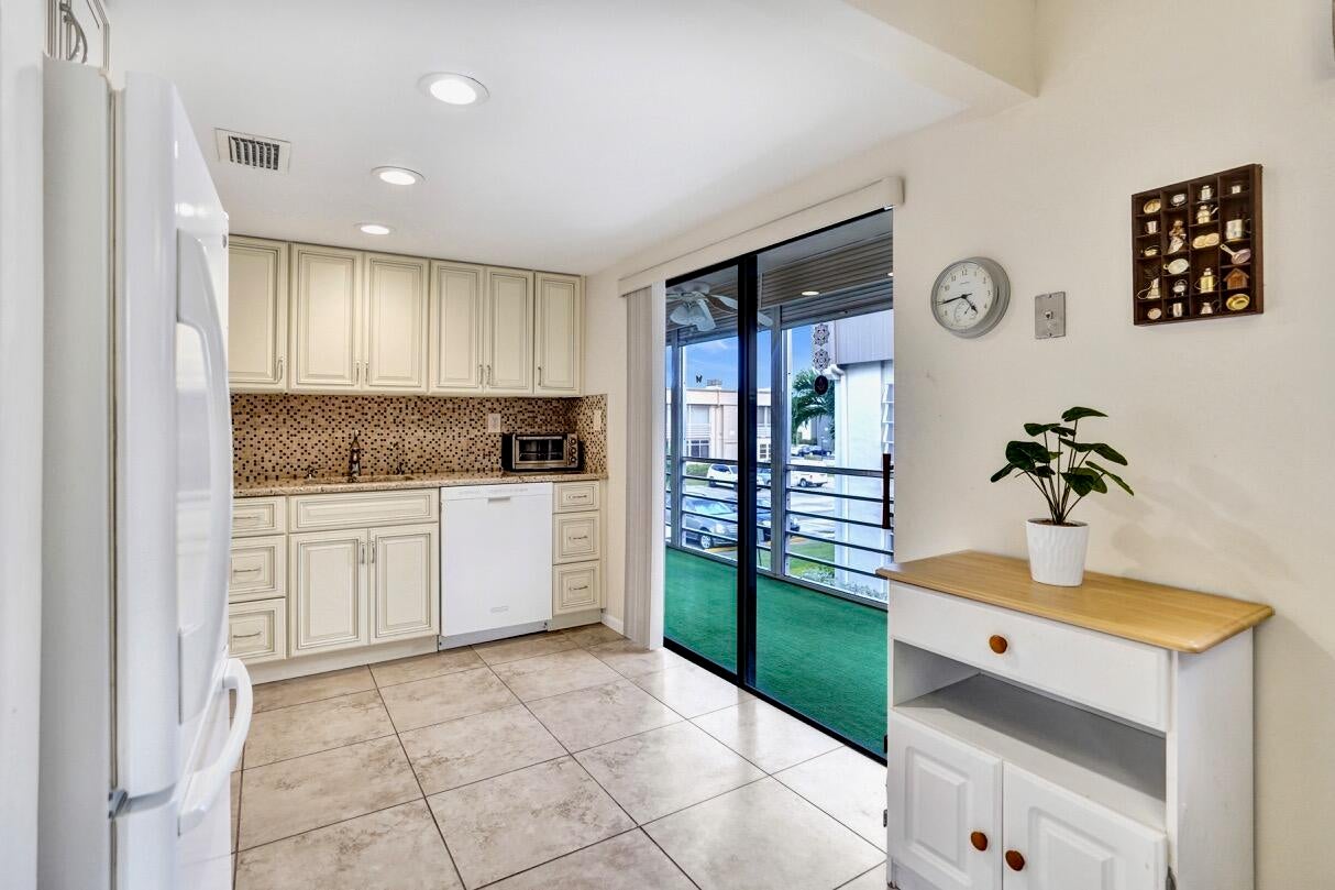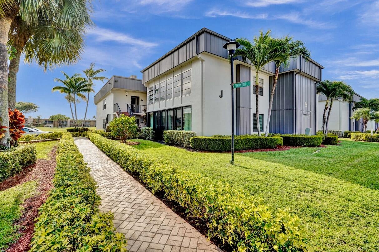 This listing contains virtually staged photos.This beautiful and bright furnished 2 bedroom, 2 bathroom 2nd floor condo located in the Piedmont J subdivision of Kings Point is a great buy with a beautiful garden view and lake view out the front window! The kitchen and bathrooms have been updated. The unit has a GE electrical panel. The screened-in side patio allows plenty of space to enjoy the Florida sun while enjoying the tranquil view. The washer & dryer hookup is located in the bathroom closet for easy convenience. Piedmont J has an actual elevator for easy access to the second floor. Owners must wait 1 year to rent. Pets are not permitted. Monthly maintenance is $687 and includes cable. One time capital contribution of $2000 due atapplication submission. Kings Point is an active 55+ community located in Delray Beach. Amenities include 3 clubhouses, swimming pools, Natatorium, fitness center, theater, golf courses, tennis, pickleball, shuffleboard, bocce ball, racquetball , basketball, restaurants, salon and much more! INFORMATION HEREIN NOT GUARANTEED AND SUBJECT TO ERRORS & OMISSIONS. ALL MEASUREMENTS APPROXIMATE.