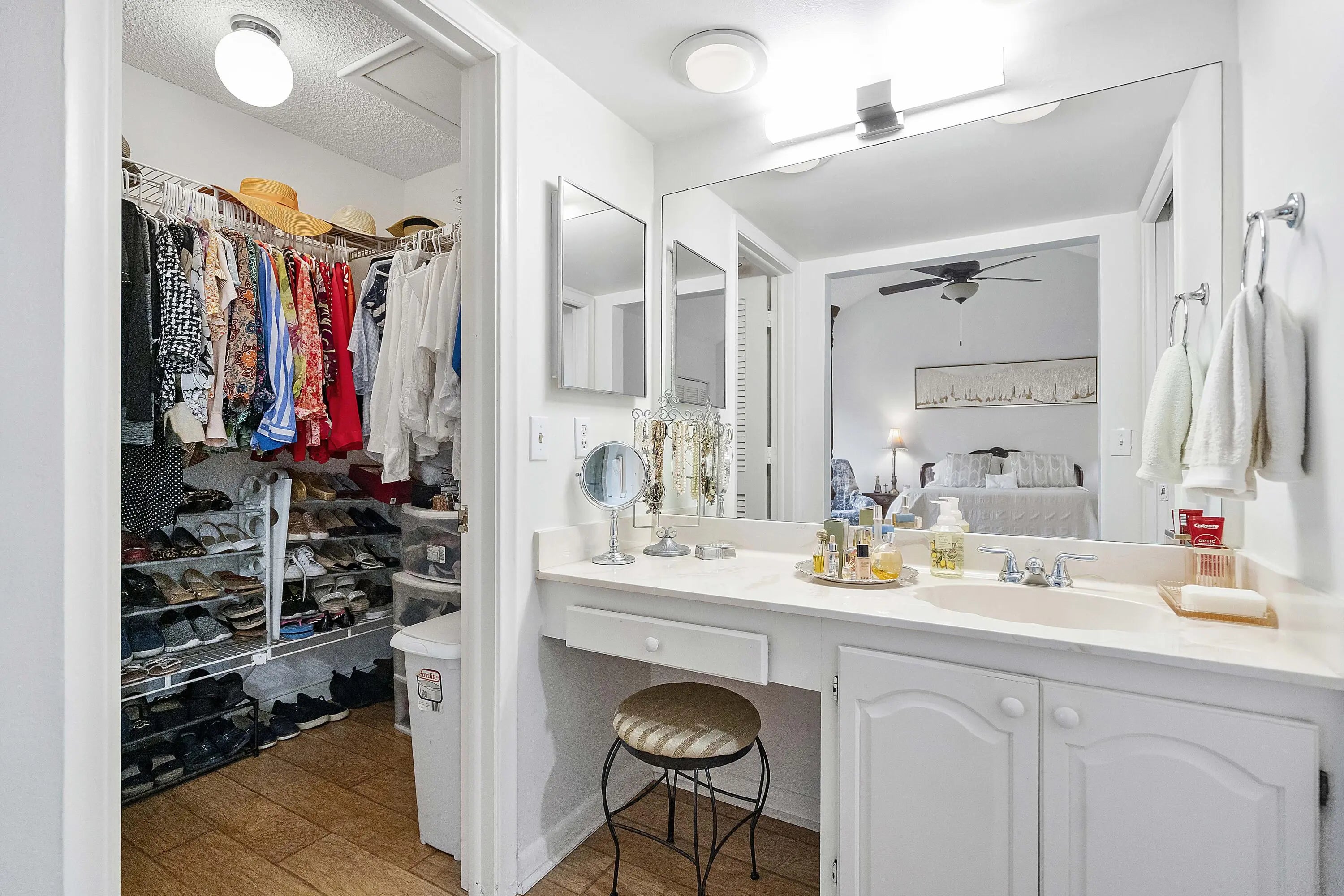 Built-in Shelves, Closet Cabinets, Sky Light(s), Volume Ceiling, Walk-in Closet