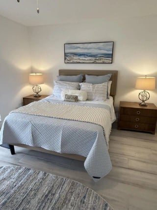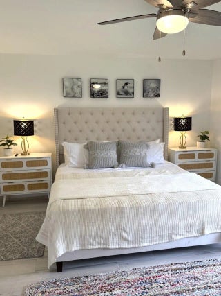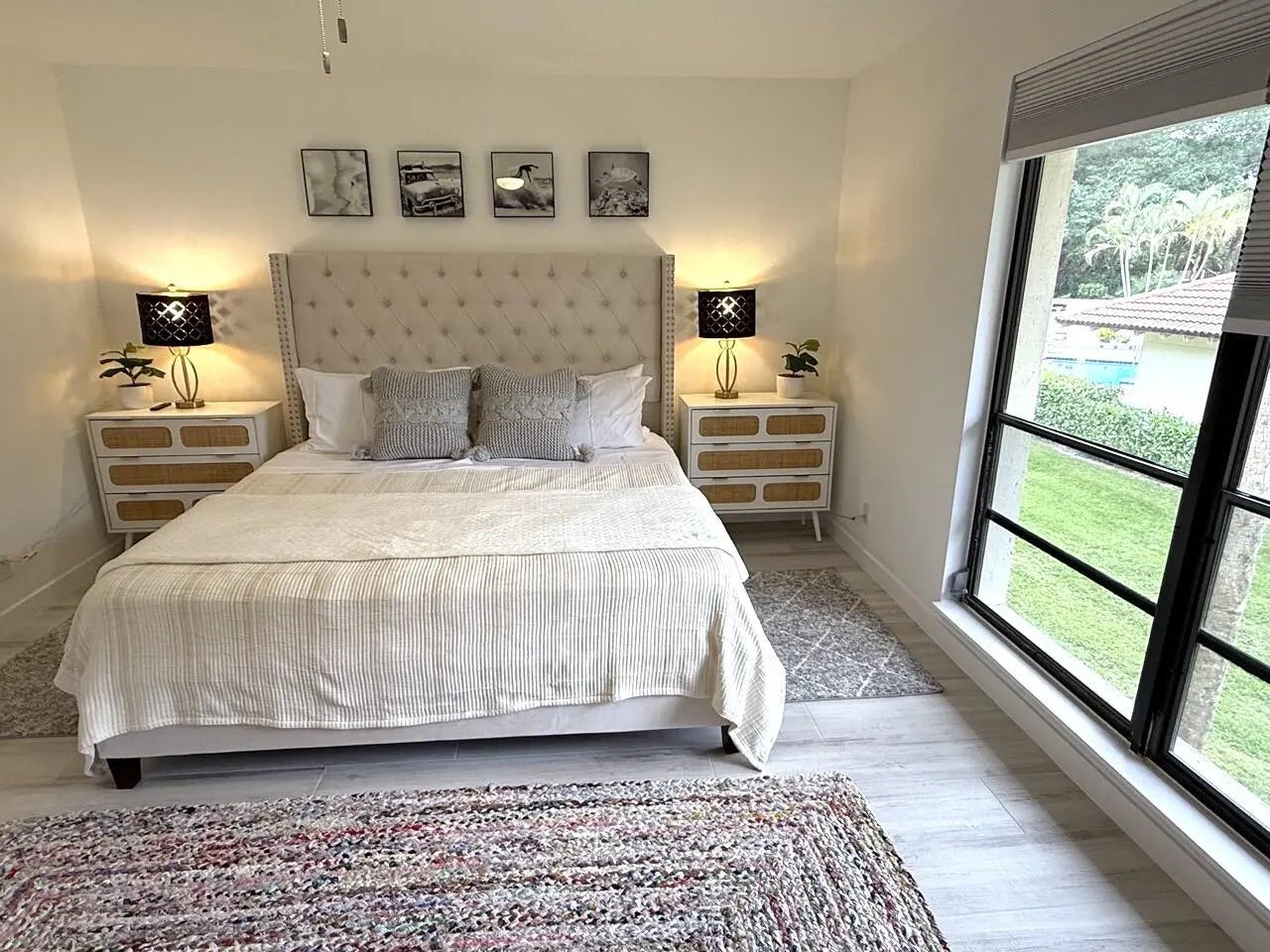 Available for seasonal or annual rental. Private Entrance.Just been re-furnished. All new light grey porcelain plank tile throughout. Guest and master bathrooms have been renovated, new toilets, vanities, mirrors,,lighting, tile work and glass seamless shower doors. TV's have been wall mounted and all new ceiling fans installed. Outside wraparound balcony floor has been tiles as well.