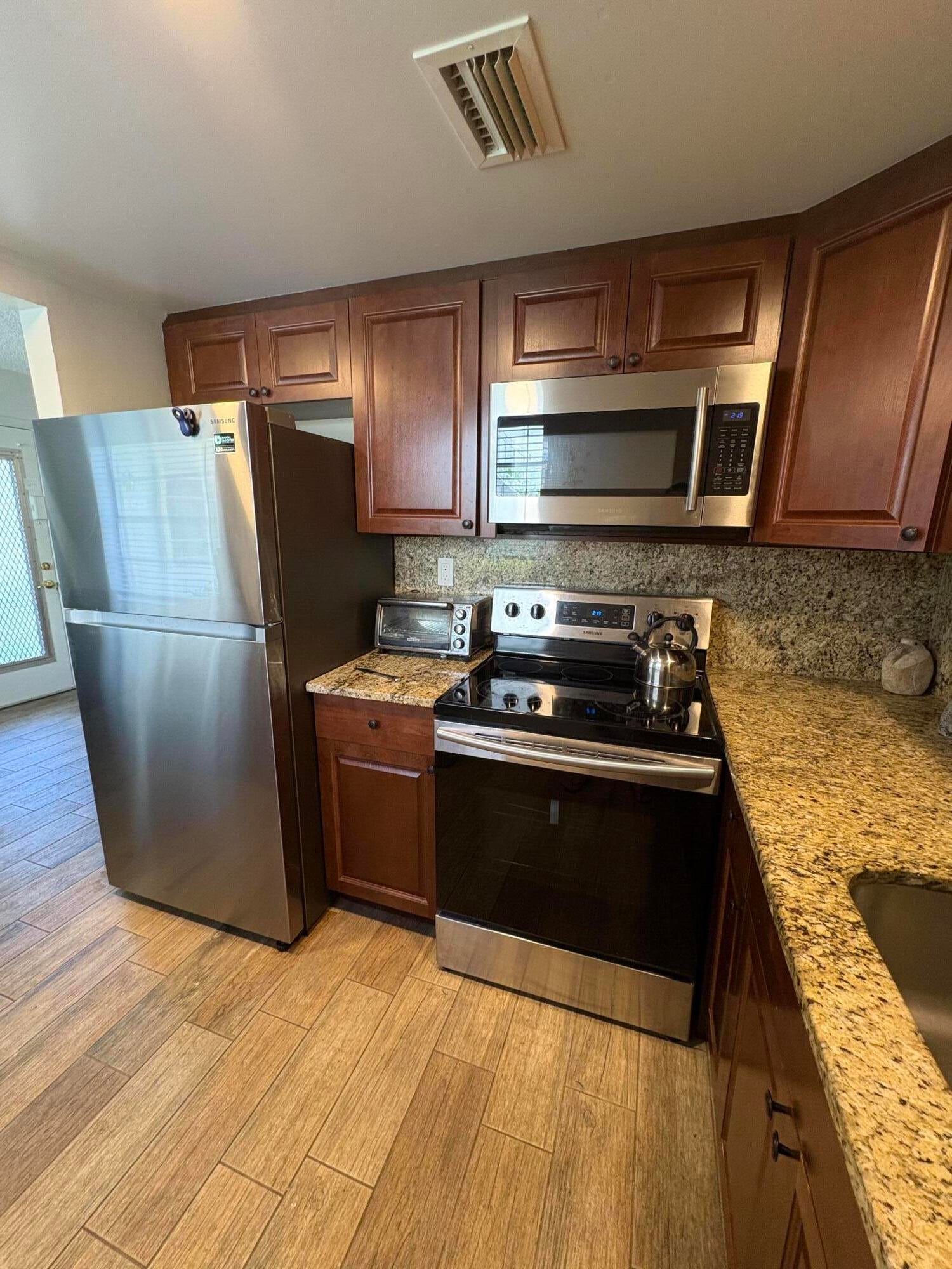 SELLER SAYS SELL NOW!!! BEST BUY IN KING'S POINT! Beautifully renovated 2 BR/2 BA unit in Burgundy, one of King's Point's best buildings. Kitchen and bathrooms beautifully updated with stainless steel appliances, all new cabinets and fixtures. New vinyl flooring throughout. This unit was sold on 11/15/24 and is squeaky-clean! All furnishings stay, including small appliances. Unfortunately circumstances changed and seller is HIGHLY MOTIVATED. Very close to the pool - this unit is bright, sunny and ready for you!
