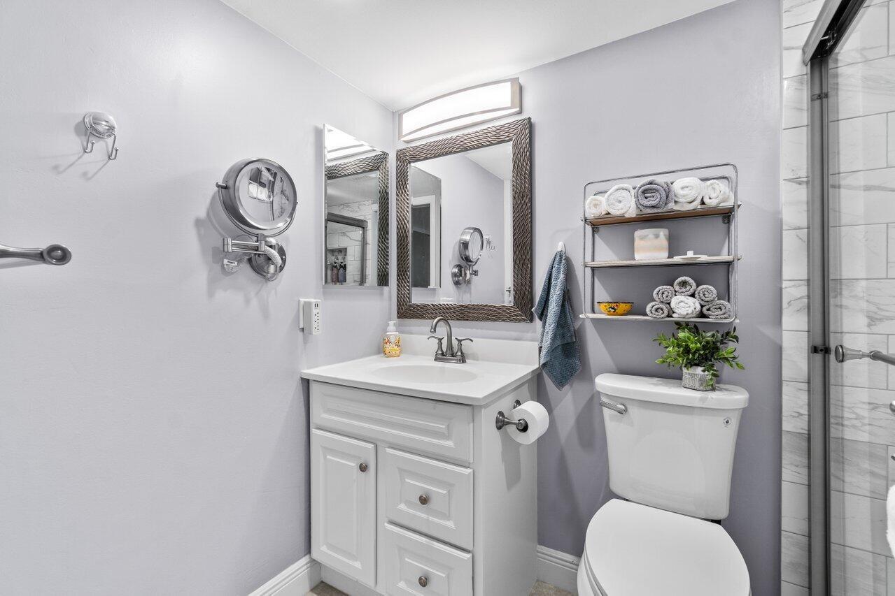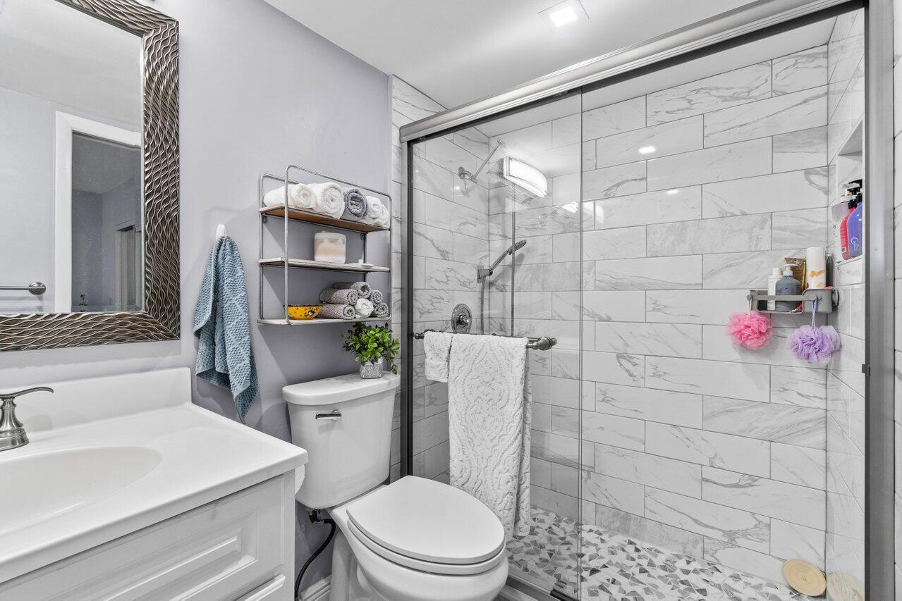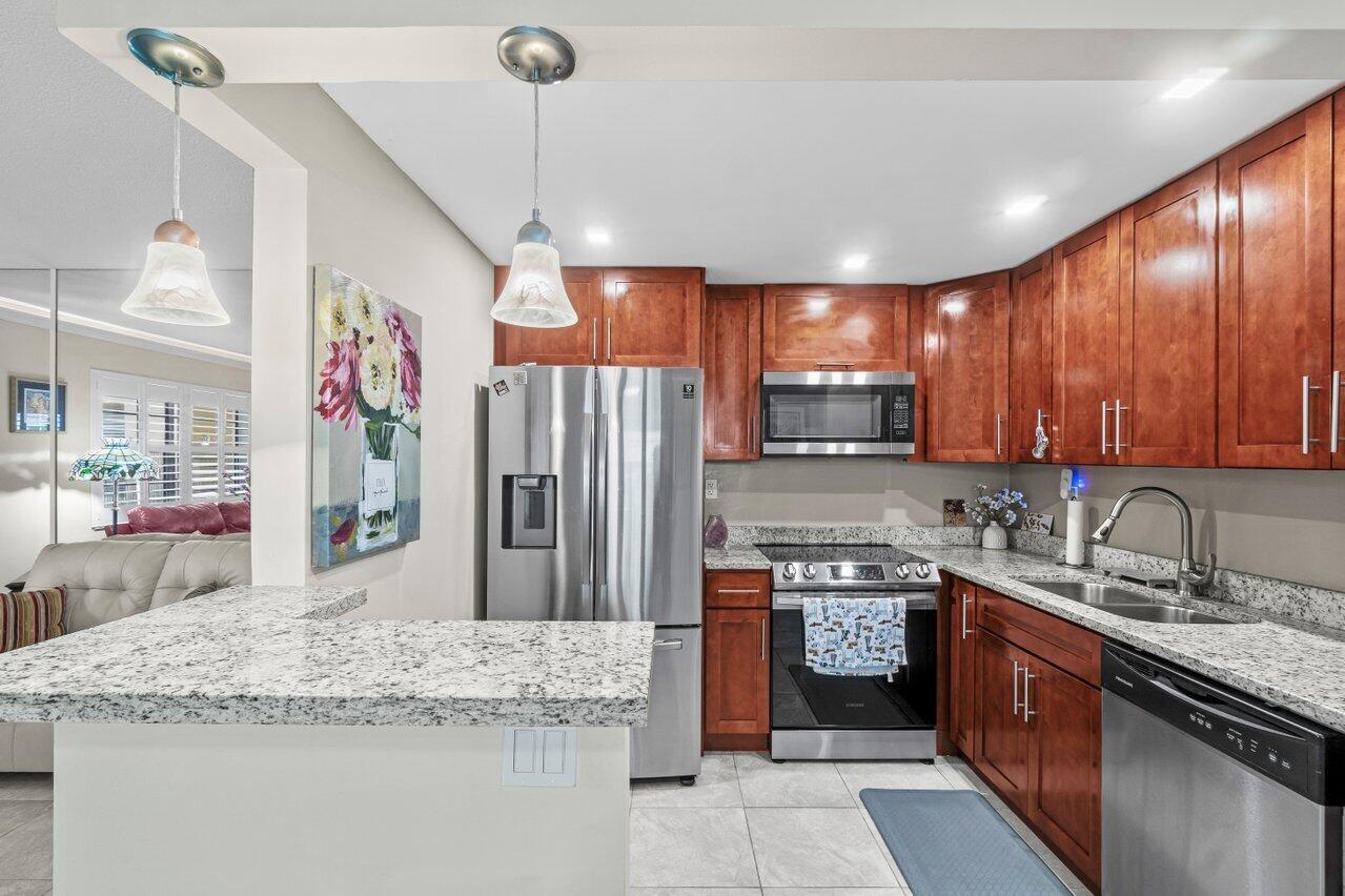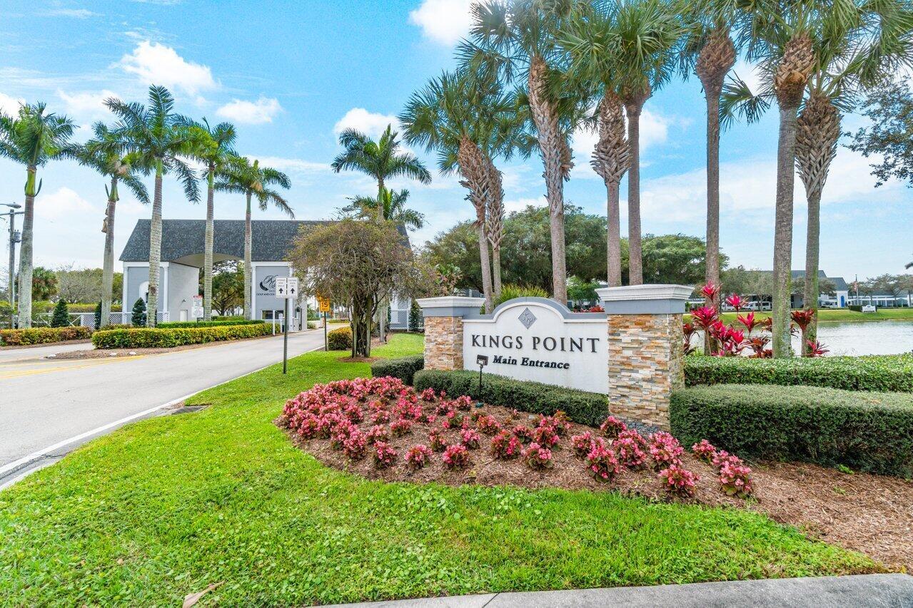 Spectacular Fully Remodeled Corner Unit 1 Bed 1.5 Bath First Floor Convenience! This home combines modern elegance with everyday comfort. Step inside to discover gorgeous ceramic tile flooring throughout and a bright, open layout. The chef-inspired shaker kitchen is complete with granite countertops, stainless steel appliances, a breakfast nook, and LED high hats for a sleek, contemporary look. Freshly painted in high-end neutral tones, this unit is enhanced with crown molding and LED mood lighting, creating a warm and stylish ambiance. The primary bedroom is generously sized and includes a private ensuite bath featuring a tiled walk-in shower with mosaic flooring, glass shower doors, and a built-in niche - all designed with today's modern tastes in mind. The updated bathrooms also include newer vanities and toliets, adding to the upscale appeal. Enjoy relaxing in your screened-in patio, equipped with storm shutters for added peace of mind. A rare bonus, the unit includes a full-sized laundry room for maximum convenience. Additional highlights:A/C (2021)Water heater (2018)Assigned parking space directly in front of the unit. Kings Point offers resort-style living with an impressive array of amenities, including five outdoor pools, two whirlpool spas, and a state-of-the-art indoor natatorium with a resistance pool. Enjoy dining at two on-site restaurants, pampering at the hair and nail salon, or relaxing in the library. Entertainment and recreation options abound with a theater, bocce ball, pickleball, golf courses, tennis courts, and a fully equipped fitness center. The beautifully remodeled clubhouse hosts a wide variety of social activities and events, ensuring there's always something to do. For added convenience, a courtesy shuttle bus provides transportation to local shopping centers, restaurants, and Delray Medical Center. Located just minutes from beaches, dining, and retail destinations, this property offers the perfect blend of comfort, convenience, and community living.