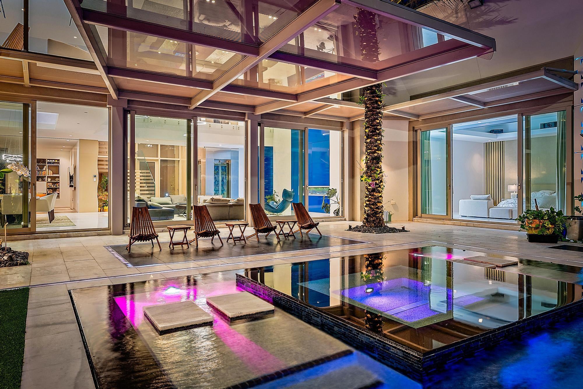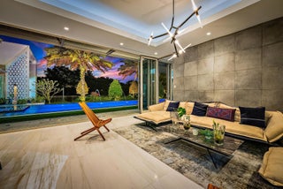 Welcome to this one-of-a-kind modern sanctuary in the heart of Palm Beach Gardens, an ultra-luxury architectural triumph that marries innovation, sophistication and serene beauty! Spanning 11,144 square feet of living space, this bespoke residence encompasses five bedrooms, eight bathrooms and two half baths all set against the tranquil backdrop of Japanese-inspired gardens. Meticulously constructed under the direct supervision of the owner, every element reflects the highest standards of modern design and engineering where no detail has been overlooked.Introducing this magnificent residence, the impressive two-story vestibule sets the tone for what lies within, showcasing a glass-suspended staircase, glass-enclosed commercial elevator adorned with an artistic mural finish, and a floor-to-ceiling glass facade that frames views of the exquisitely landscaped front yard. The grand living room is bathed in natural light, crowned by a soaring 25-foot ceiling, and anchored by a sleek ribbon fireplace set against blue lacquered panels that cleverly conceal media. 10 foot sliding glass doors open to reveal a tranquil oasis with lush gardens and a sun-splashed 75 foot lap pool with spa. Epitomizing elegance, the adjoining dining room is equally inviting, with a tray ceiling and serene pool vistas. For more informal living, the family room flows seamlessly with the kitchen, finished with professional-grade appliances, an expansive butler's pantry, and handsome custom cabinetry with tons of storage that integrates a work island and a floating breakfast bar extension. The first-floor primary suite is a peaceful haven, with two walls of glass that open to the pool and gardens. This luxurious retreat comprises his and hers custom-fitted wardrobe closets and dual spa-inspired bathrooms, finished in full marble slabs and fitted with steam showers and Toto bidet toilets. Perfectly suited for grand entertaining and everyday indulgence are an indoor/outdoor loggia with summer kitchen, a fully-equipped gym, two guest suites, library and four-car garage on the first level. Upstairs, a nine-seat custom theatre and two additional bedroom suites are complemented by a lounge and kitchenette offering comfort and privacy for guests. Additional features throughout include 10 foot ceilings and doors throughout, stainless steel panelized framing, insulated/laminated impact windows throughout, automized shades, imported rain showers in the bathrooms, flush Italian doors, Smart House/Savant system, whole-house generator with propane tanks, eight-zone air conditioning, and instant hot water heaters. DISCLAIMER: Information published or otherwise provided by the listing company and its representatives including but not limited to prices, measurements, square footages, lot sizes, calculations, statistics, and videos are deemed reliable but are not guaranteed and are subject to errors, omissions or changes without notice. All such information should be independently verified by any prospective purchaser or seller. Parties should perform their own due diligence to verify such information prior to a sale or listing. Listing company expressly disclaims any warranty or representation regarding such information. Prices published are either list price, sold price, and/or last asking price. The listing company participates in the Multiple Listing Service and IDX. The properties published as listed and sold are not necessarily exclusive to listing company and may be listed or have sold with other members of the Multiple Listing Service. Transactions where listing company represented both buyers and sellers are calculated as two sales. "No payments made until title passes" Some affiliations may not be applicable to certain geographic areas. If your property is currently listed with another broker, please disregard any solicitation for services. Information published or otherwise provided by seller, listing company or its representatives is deemed reliable but are not guaranteed and subject to errors, omissions, or changes without notice. Copyright 2025 by the listing company. All Rights Reserved.