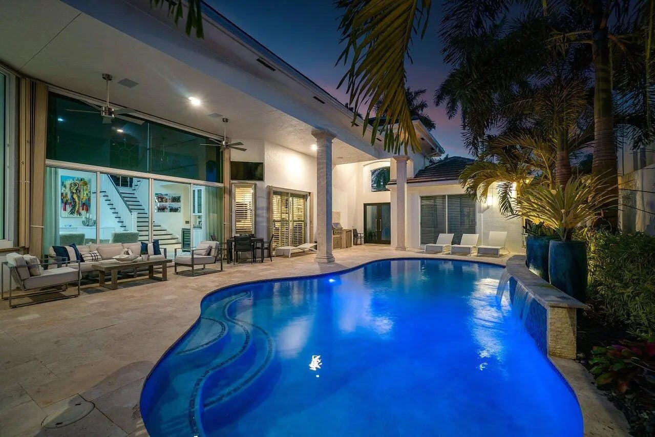 Stunning 4 bedrooms + office courtyard home in Woodfield Impeccable and completely renovated courtyard home in Avalon Pointe of Woodfield Country Club. The master bedroom and guest house both enjoy views of the spectacular courtyard. The stunning kitchen has been redone with meticulous attention to detail, making it a modern centerpiece of the home. Perfect for Florida living, the courtyard is bedecked in all new landscaping; outdoor ceiling speakers; ivory pavers; completely refurbished pool; built-in, stainless steel gas barbecue; and outdoor refrigerator.