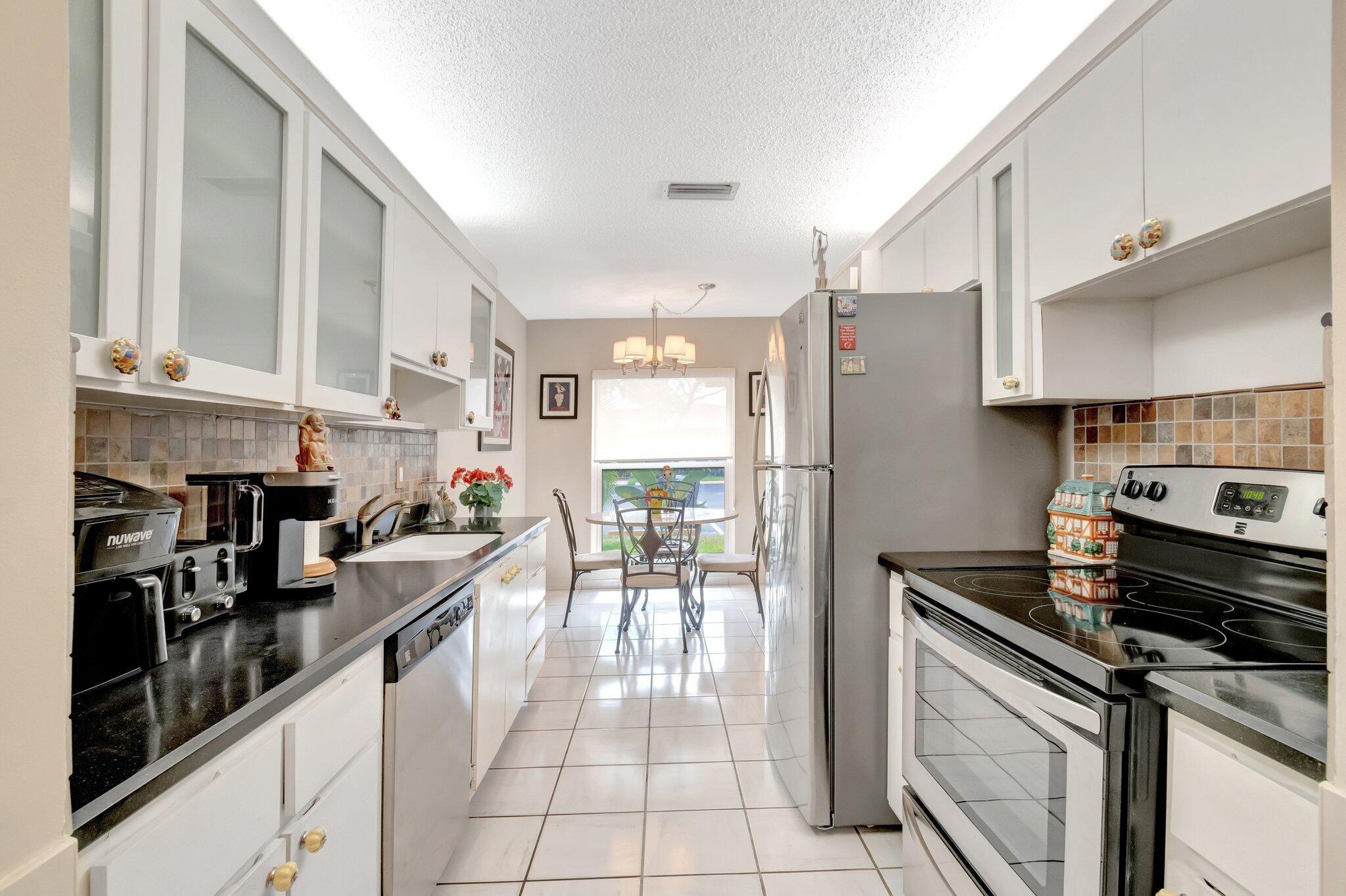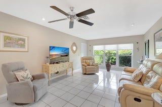 Welcome to this spacious 2-bedroom, 2-bath villa in the vibrant 55+ community of Palm Greens at Villa Del Ray! In this home, the kitchen offers ample cabinet space and opens to the dining and living areas ideal for everyday living or entertaining. Enjoy tile flooring throughout for low-maintenance comfort. The primary suite features a walk-in closet and an en-suite bath with a walk-in shower, while the split-bedroom layout ensures privacy for guests. Relax on the enclosed patio with tranquil garden views. Assigned parking is just steps from your door. Enjoy a state-of-the-art clubhouse, resort-style pool, tennis, fitness center, walking trails, and more. Conveniently located near shopping, dining, golf, and the beaches of Downtown Delray.