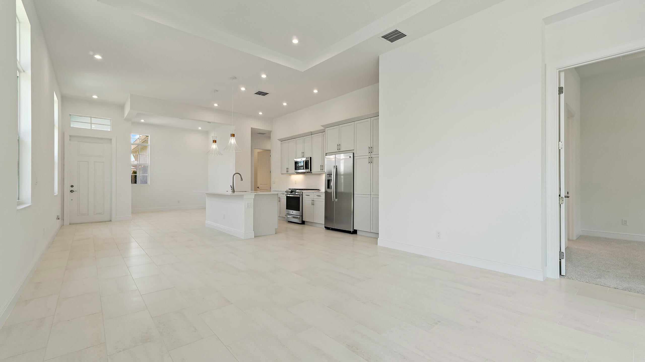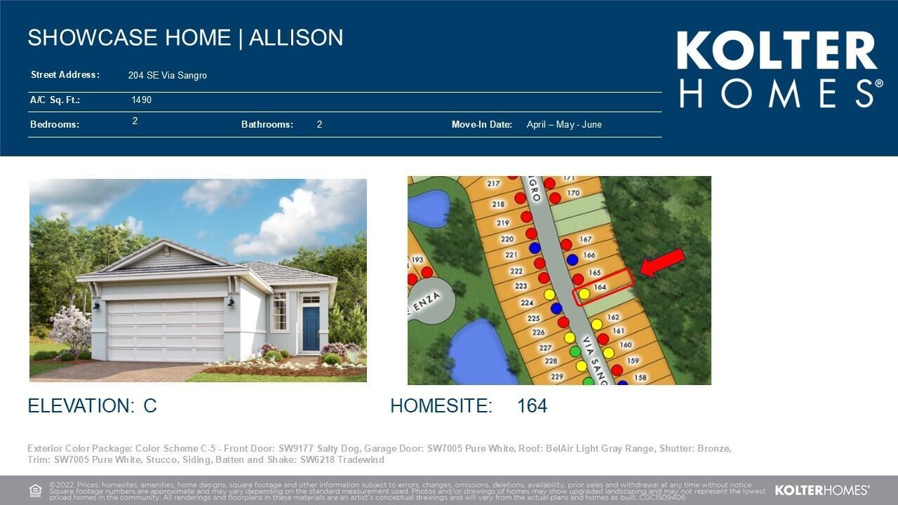 **NEW CONSTRUCTION** MOVE IN READY The Allison at Rivella is a 2-bedroom, 2-bathroom home that includes a Flex Room and a 2-car garage with a four-foot extension, providing additional storage and workspace. Situated on a Preserve view homesite with no homes behind, this residence offers a peaceful and private setting. The Great Room features 12' wide by 10' tall sliding glass doors, seamlessly connecting indoor and outdoor living while flooding the space with natural light. The kitchen is designed for both style and practicality, featuring Cambria quartz countertops, a counter-depth refrigerator, a double trash pullout, and under-cabinet lighting.In the Great Room and primary bedroom, a raised TV option enhances the clean, modern aesthetic. The laundry room is outfitted with 42" upper cabinets, offering ample storage. The owner's suite provides a spacious retreat, complete with a four-foot extension for added comfort. The primary bath showcases extended tile in the shower, while bath #2 features extended tile in the tub area, elevating the design with luxurious high-end finishes.
