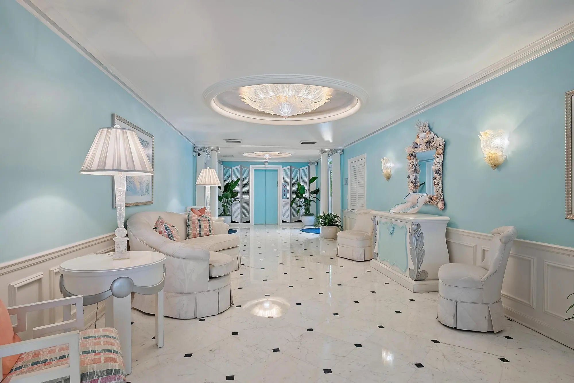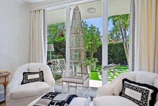 A rare 3 bedroom condo in a boutique building across from the ocean, One Royal Palm. AD designer decorated & fully renovated with a sublime private garden space with grass & patio to enjoy the cool ocean breeze. Luxury amenities include solid hardwood floors, intricate millwork, new kitchen & baths, bar area, & laundry in the residence. The primary suite is a dream with glass doors to the garden, a soaking tub, separate shower, double vanities & a spacious closet. The kitchen includes Calcutta marble, Wolf & SubZero appliances. Full-service building amenities include a door person, garage parking, storage, pool, gym, on-site building manager, full-time maintenance staff, car washing service, & an 8,000 SF common terrace. Minutes to iconic Worth Avenue, fine dining, beaches, & the airport.