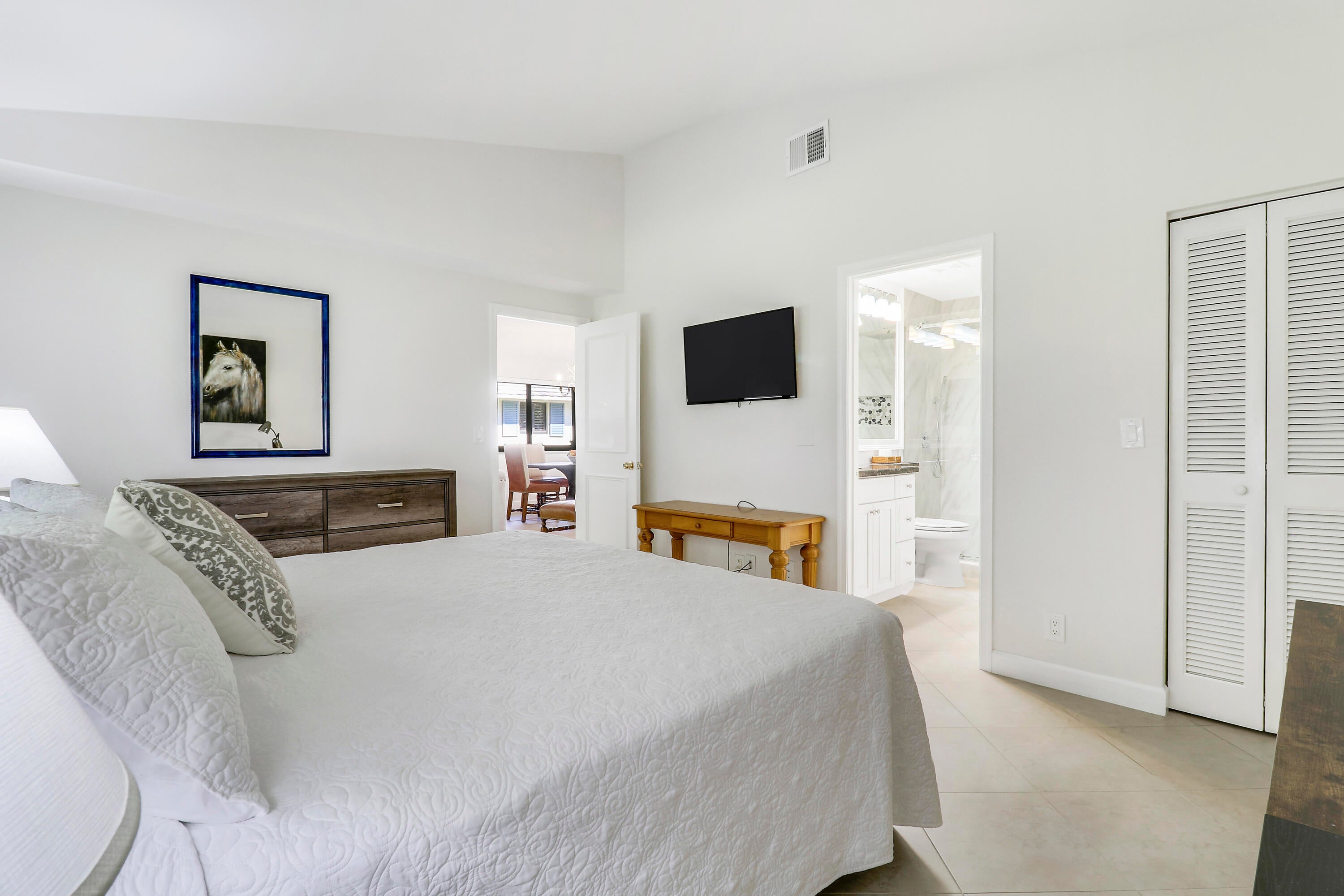 PGA National 2026 Season Club Cottage. High ceilings; tiled floors throughout with stunning furnishings. Renovated. Walk-in showers. Very private on Pro Row adjacent to the Staple course. Sunset views from your back patio with a grill. Enjoy the private Club Cottage pool and pavilion. Cross the Cottage Bridge to the PGA Resort, Spa and Restaurants. Brand New King bed in primary, ensuite bedroom. Guest room with two full beds. Washer/Dryer. Wifi; Basic Cable; water included. Mirasol/Publix shopping center is across from PGA Entrance. World-class dining & shopping around the corner and down the street in The Gardens Mall. Palm Beach Island, twenty minutes. PBI fifteen min. Manned Security Gate/Patrols. Home of the Cognizant Classic 2026. Miles of walking paths that begin at your front door.