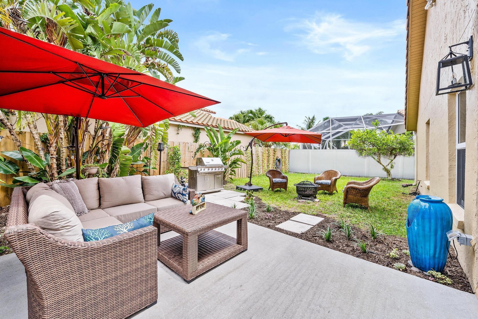 Immaculate 3-bedroom, 2-bath annual rental located in the highly sought-after gated community of Stonebriar. This beautifully maintained home features vaulted ceilings, skylights, impact glass, newer roof (22) and a desirable split floor plan. Enjoy newer Bosch and Whirlpool appliances, a Sub-Zero refrigerator, double ovens, new washer and dryer, and an additional fridge in the garage. Coastal-style wood, tile, and laminate flooring flow throughout, complemented by fresh paint. The spacious primary suite includes a king bed, Jacuzzi tub, and all bedrooms are outfitted with new mattresses. A tankless water heater adds efficiency, while 9-foot retractable impact sliders open to a serene, fully fenced backyard and private patio--perfect for indoor-outdoor living.Stylish, upscale furnishings throughout offer a clean, modern aesthetic. Rent includes lawn care, landscaping, high-speed fiber optic internet, and cable. Residents enjoy access to the community pool, clubhouse, tennis/pickleball court, and children's play area. Minutes from top-rated schools, Jupiter's best beaches, shops, dining, I-95, and the Turnpike