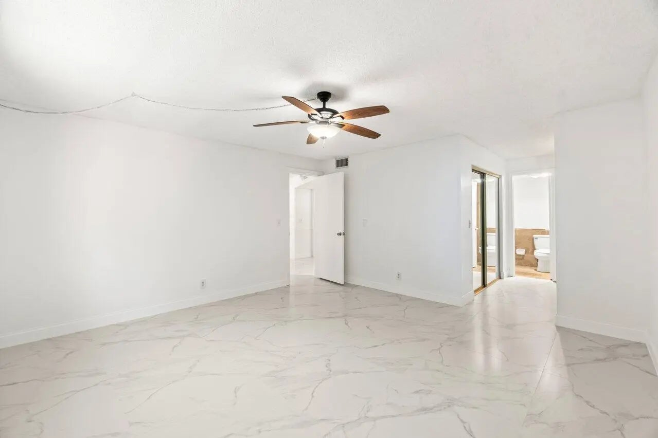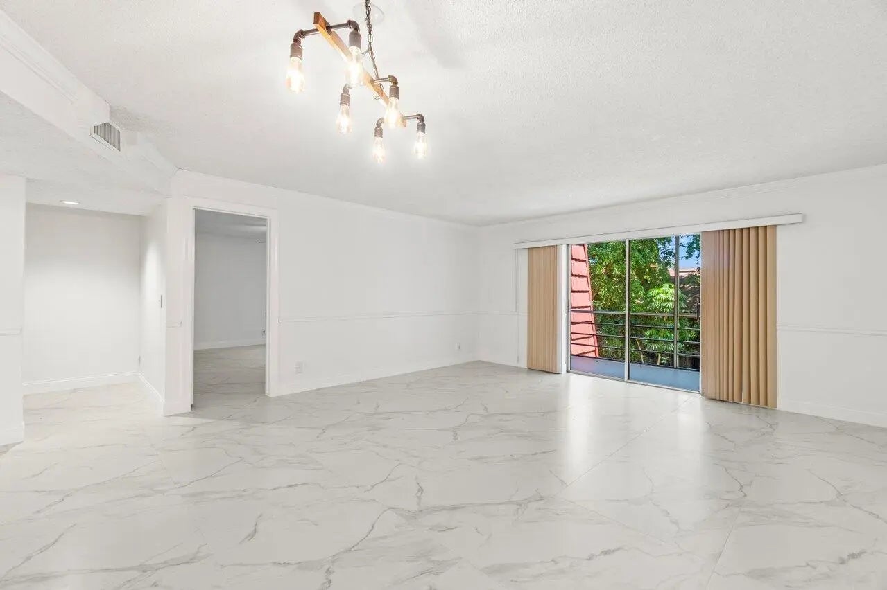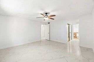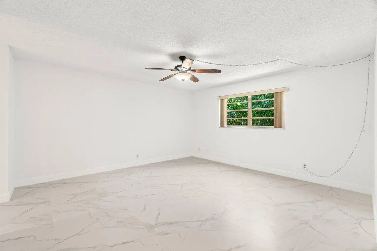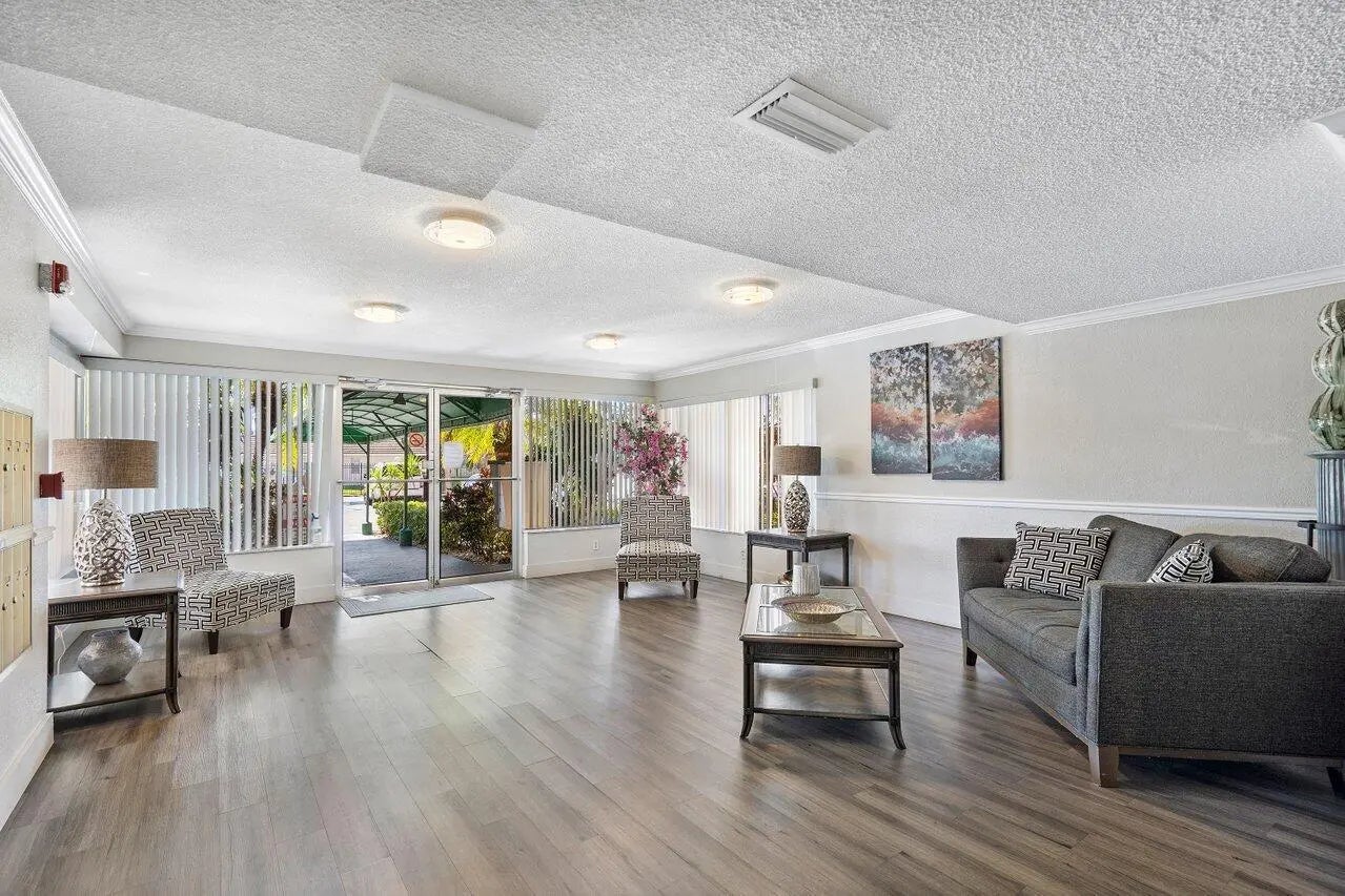 You do not want to miss out on this hidden gem in West Boca. The building features a secure entrance lobby with elevators, common laundry, unit storage, and a newer roof. Walk down the enclosed hallway and step into the foyer bright and airy with an abundance of space. This home is rare as it is a one bedroom plus den with relaxing garden views on an screened balcony. The kitchen has wooden cabinetry, granite countertops, a pantry plus room for an eat-in kitchen. Walk into the primary bedroom featuring 3 grab closets, a separate vanity and on-suite bathroom with a combo tub shower. Features to take in new flooring, freshly painted walls, and a spacious living space customizable for your needs. Hoa dues include basic cable, water, sewer, and trash.