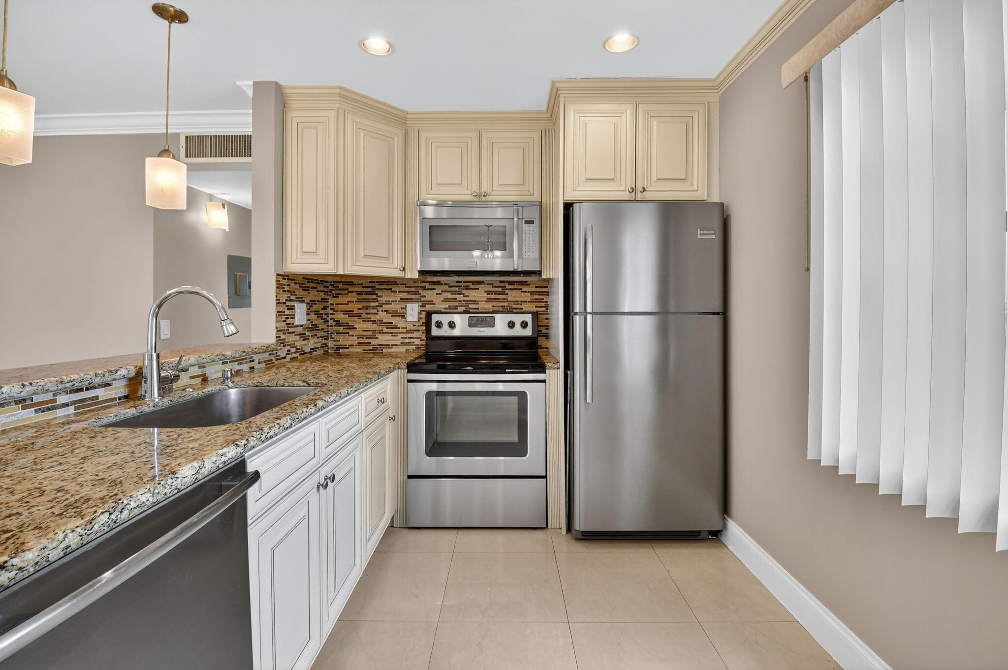 Must see this TOTALLY RENOVATED 2/2 second-floor corner condo with ONE OF THE BEST GOLF/WATER VIEWS IN KINGS POINT! Enjoy the magnificent views from both bedrooms and the oversize screened porch! The OPEN KITCHEN features upgraded granite countertops, wood cabinetry, and stainless-steel appliances! This BRIGHT CORNER UNIT is enhanced by double windows in the kitchen/dining area! Interior features also include 2 RENOVATED BATHROOMS, oversize neutral tile floors, crown molding, walk-in-closet in bedroom, and upgraded Samsung washer/dryer! This active 55+ community includes a beautifully renovated clubhouse with impressive shows, exercise facilities, pools, tennis, two18-hole golf courses, 2 on-site restaurants and more! Close to Atlantic Avenue stores, restaurants, and Delray beaches!