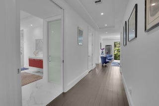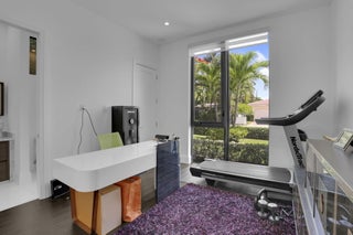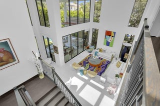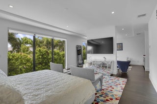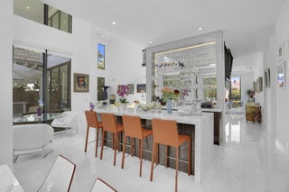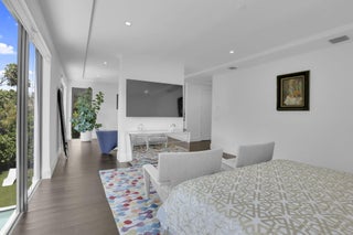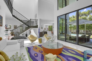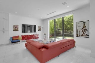 Situated in one of East Boca Raton's most coveted neighborhoods, this five-bedroom, five-and-a-half-bath contemporary estate lies just steps from Mizner Park and moments from the beach. Located in the heart of the Golden Triangle, this property offers unmatched walkability to Boca's top restaurants, shops, and cultural attractions--all while tucked into a quiet, tree-lined street. Inside, clean modern lines and walls of glass create a bright, airy feel throughout. A dramatic floating staircase beneath a glass skylight anchors the entry, setting the tone for bold, sophisticated living. The open-concept main floor features a sleek chef's kitchen with professional-grade appliances, a waterfall-edge bar, and spacious living and dining areas perfect for entertaining. Glass sliders open to aprivate backyard oasis with a resort-style pool, integrated Jacuzzi, covered patio, and lush tropical landscaping. Upstairs, discover three en-suite bedrooms and a luxurious primary suite complete with spa-inspired bath, oversized walk-in closets, a morning bar, and floor-to-ceiling windows that bring the outside in. Additional features include a two-car garage, impact windows and doors, and smart home technology throughout. A rare opportunity to own a modern estate just a short stroll from downtown Boca's vibrant lifestyle.