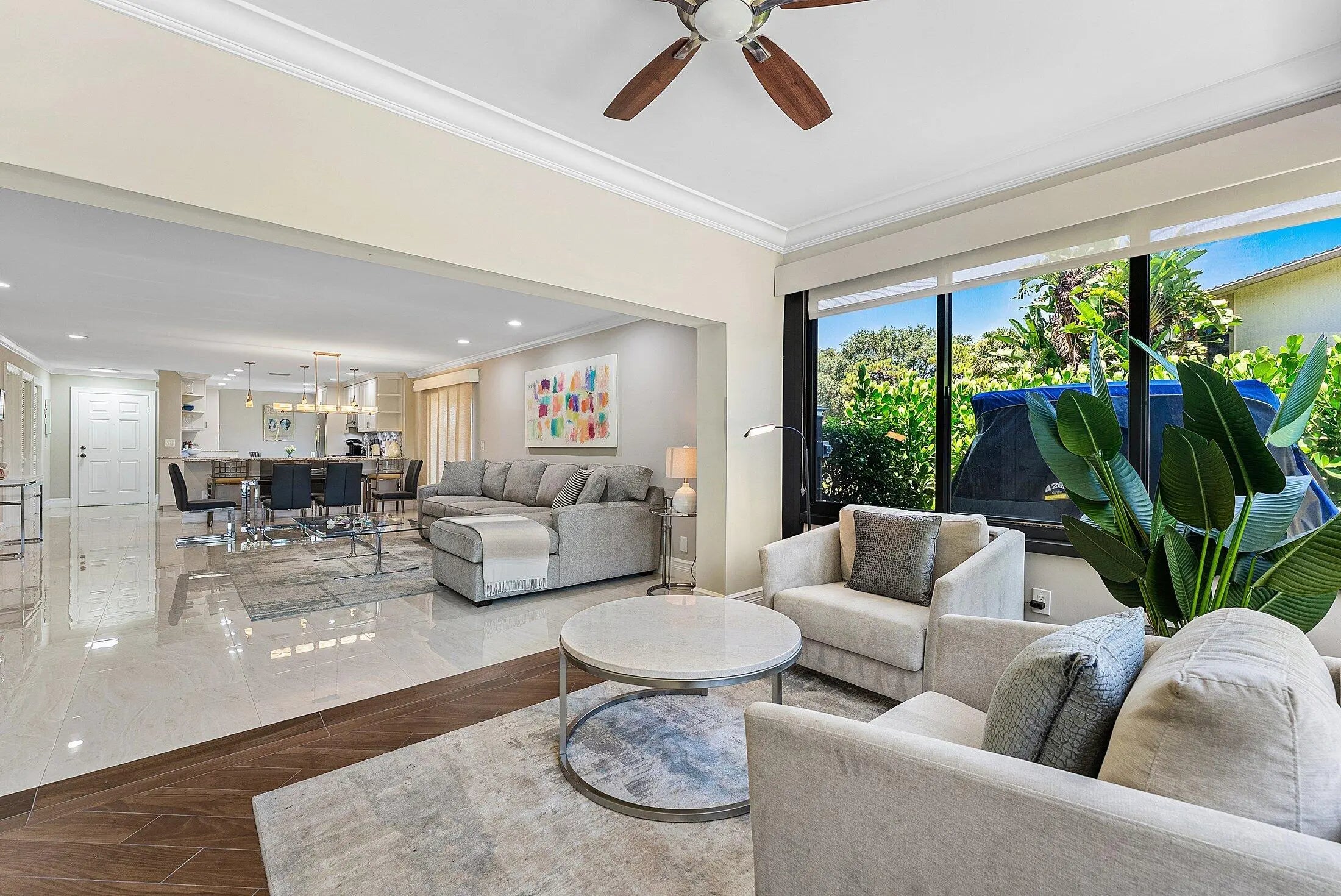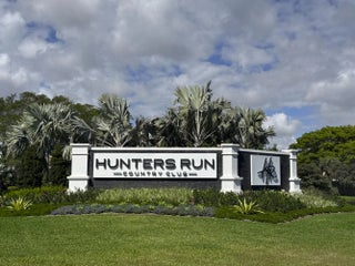 Experience luxurious living in this beautifully renovated 1st floor corner condo, ideally located just steps from the subdivision pool in highly sought-after Hunters Run Country Club -- where every day feels like a vacation. This light-filled, open-concept home features an elegant, eat-in kitchen w/ a breakfast bar peninsula and premium finishes, flowing seamlessly into the spacious great room. Crown molding, custom lighting and gleaming tile flooring extend throughout. The guest bedroom is equipped with a convenient Murphy bed. Enjoy indoor-outdoor living w/ a screened-in side patio, plus an open rear patio offering breathtaking views of rolling hills and the South golf course. INCLUDES a separate GOLF CART PATIO w/ electrical hook-up and privacy hedges. 2023 A/C. Newer roof. Such BLISS!