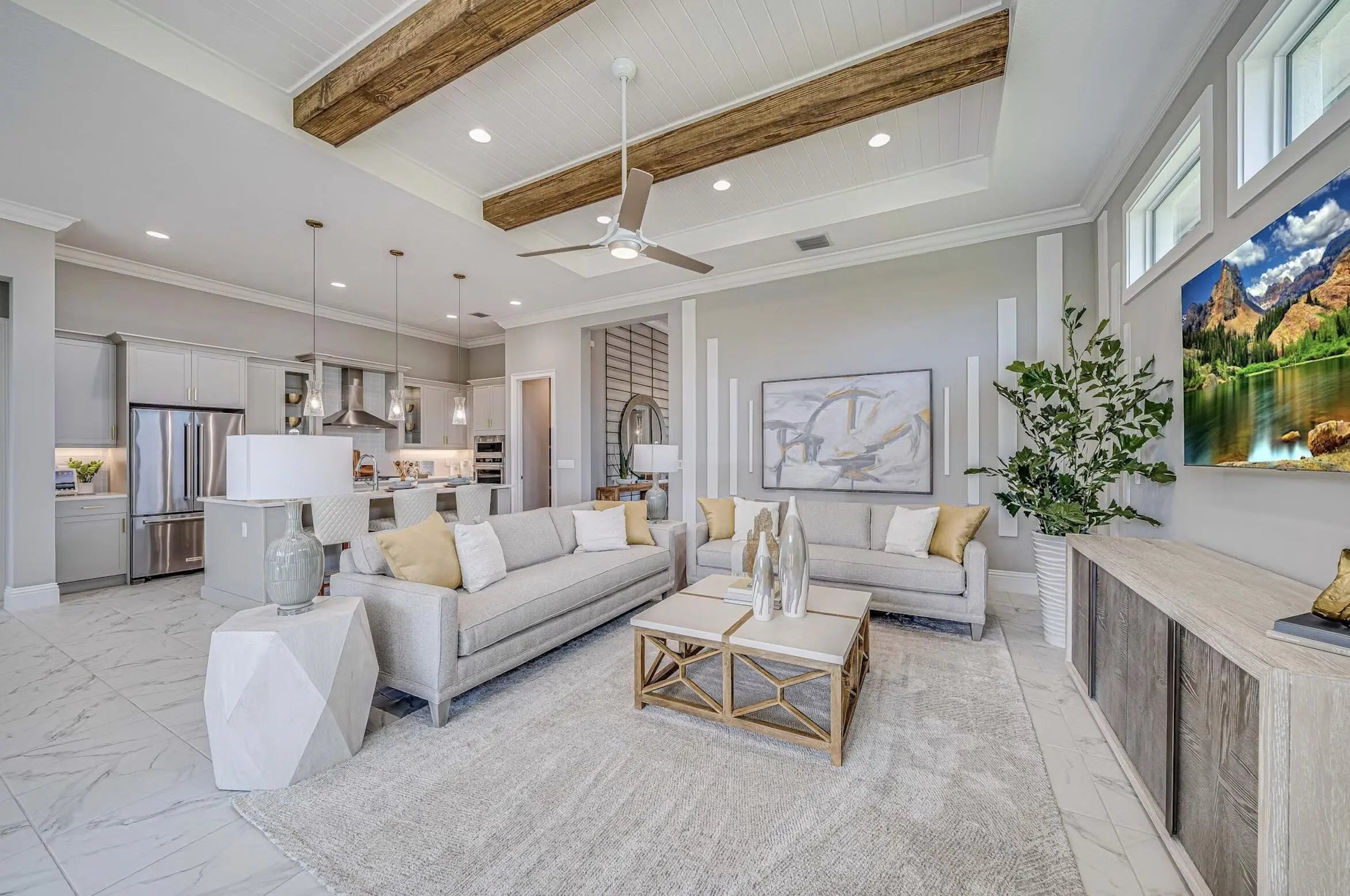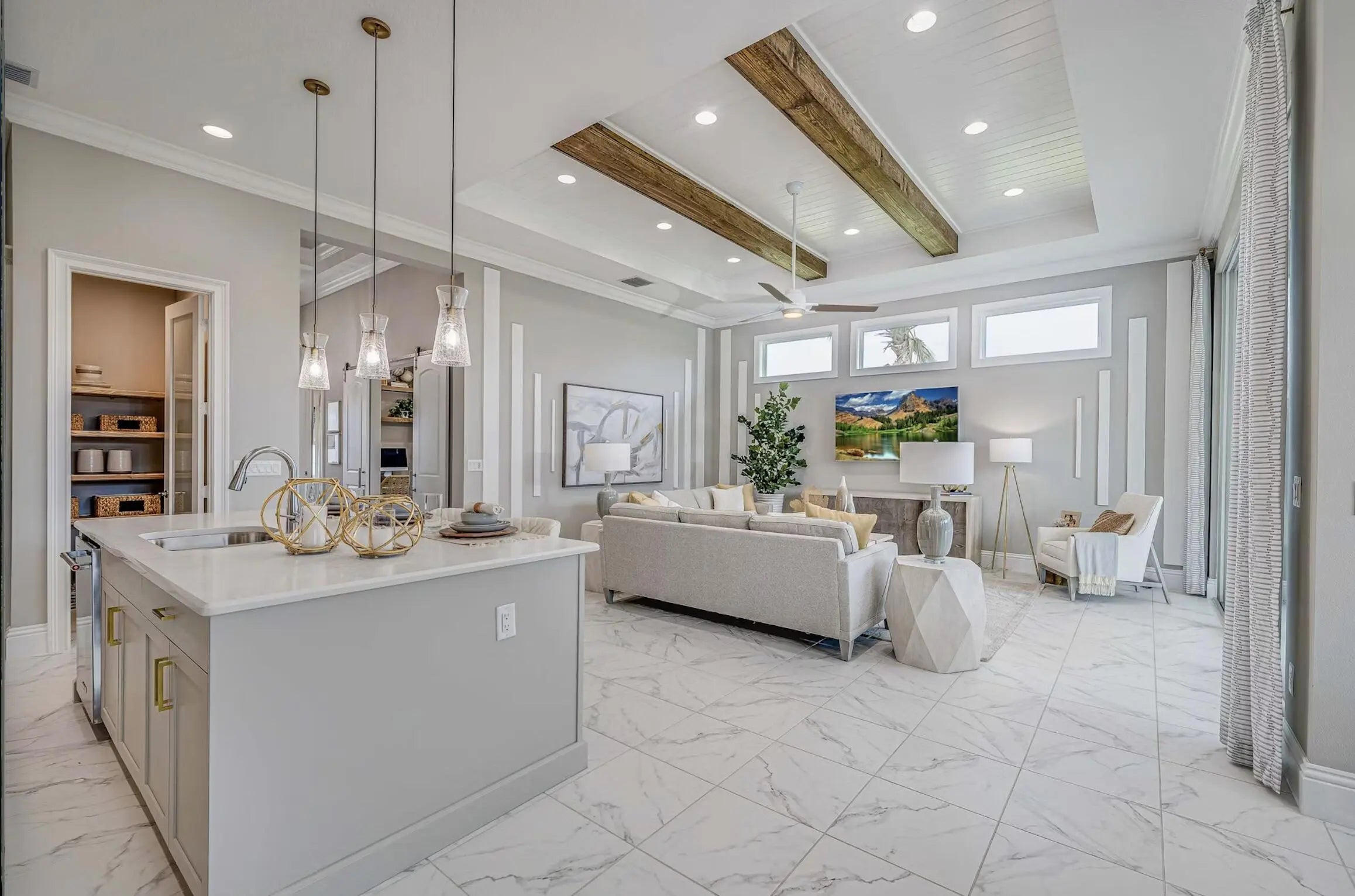 Located on an oversized lakefront site with long golf views, this pre-construction home awaits you. The Cecelia-Basile plan features 4 bedrooms & 2.5 bathrooms. The family room, kitchen, & dining area feel open & airy, with 12-foot-high ceilings, large windows, & 10-foot-high sliding doors. The kitchen features easy-close cabinets with dovetailed drawers, a natural gas cooktop, a wall oven, and a fridge. The quartz-topped island is large enough to accommodate 4-5 bar stools. The Greatroom features crown molding, a tray accent ceiling, and three transom windows. The primary suite features crown molding, a tray ceiling, large windows, an expansive walk-in closet, plus in the bathroom, double vanities, a soaking tub, and a walk-in glass shower. Call today to make your selections or upgrades.