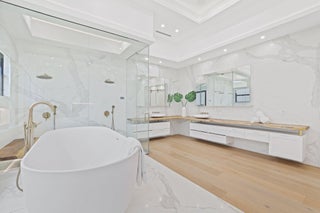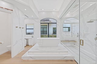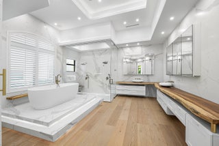 Also Listed for Sale for $2.85M. Unfurnished Annual Lease. Welcome to this beautifully renovated Pool home located in the sought-after Seven Bridges community. Boasting 5 bedrooms, 5.1 baths, and a serene water view, this property sits on a generously sized lot, providing ample space and privacy for you and your family. Thoughtfully designed open layout featuring 10'' wide oak flooring, a custom wet bar, and a striking powder bathroom with a unique floating marble sink. The primary bathroom is a true retreat, offering Italian slab tiles, a 10'' live wood counter, an app-controlled Steamiest shower, dual 12'' shower heads, LED lighting, and Sono's surround sound, creating a spa-like oasis within the comfort of your own home. Full home generator & Pool Heater. See Floor Plan.