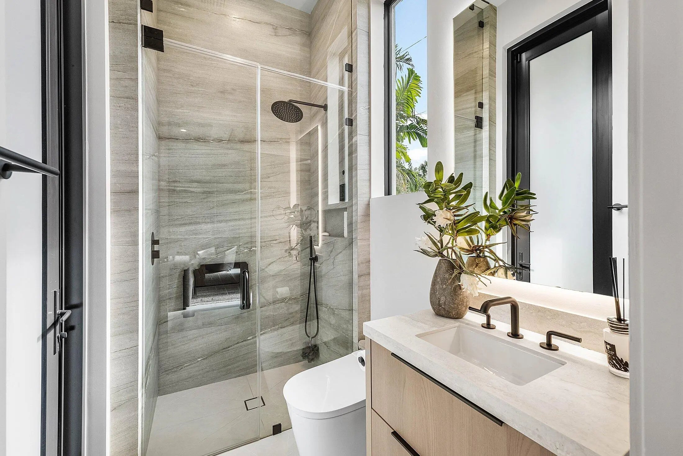Prestigious Boca Villas. Built to perfection by Primo Construction, this extraordinary estate in the heart of Boca Villas redefines luxury coastal living. Ideally located just steps from the beach and within walking distance to Mizner Park, Royal Palm Plaza, celebrated restaurants, boutique shopping, and the world-renowned The Boca Raton Resort and Premier Club, it offers the ultimate in both lifestyle and location. Spanning 5,176 square feet with 5 bedrooms and 4.1 baths, this residence is a masterpiece of craftsmanship and design. The spectacular gourmet kitchen features Miele appliances, a custom refrigerated wine unit, and a hidden walk-in butler's pantry--perfectly blending functionality with elegance. A whole-house triple water filtration and purification system & full home generator